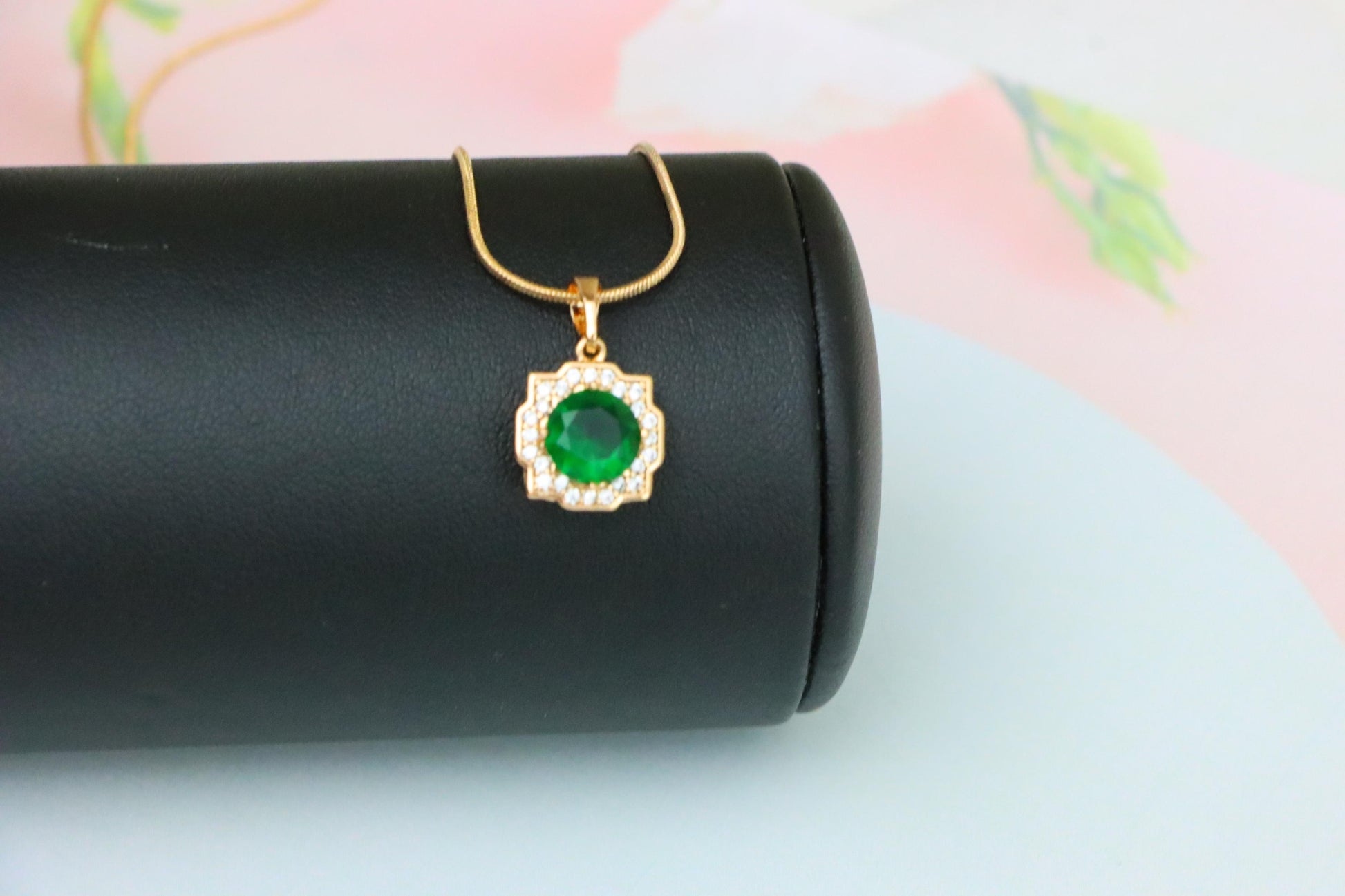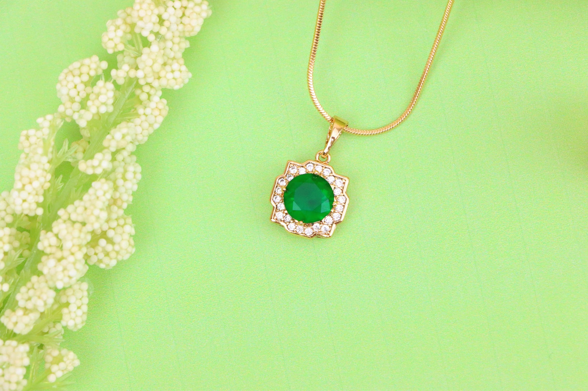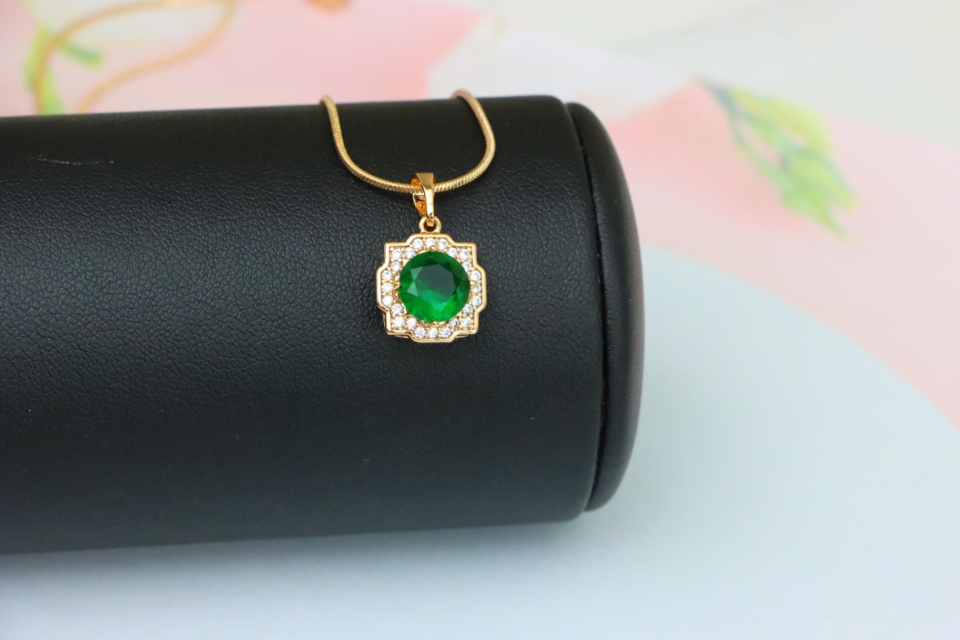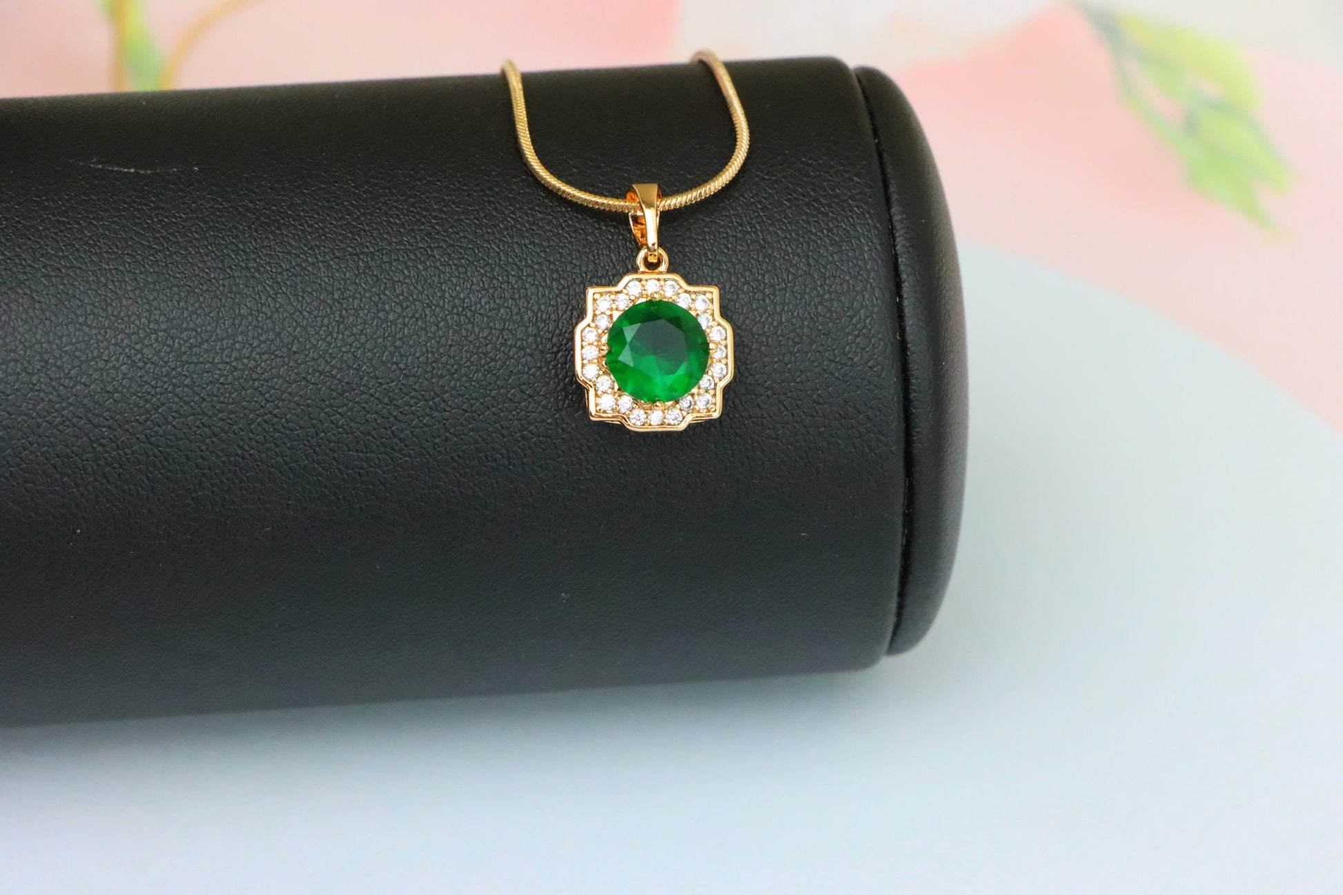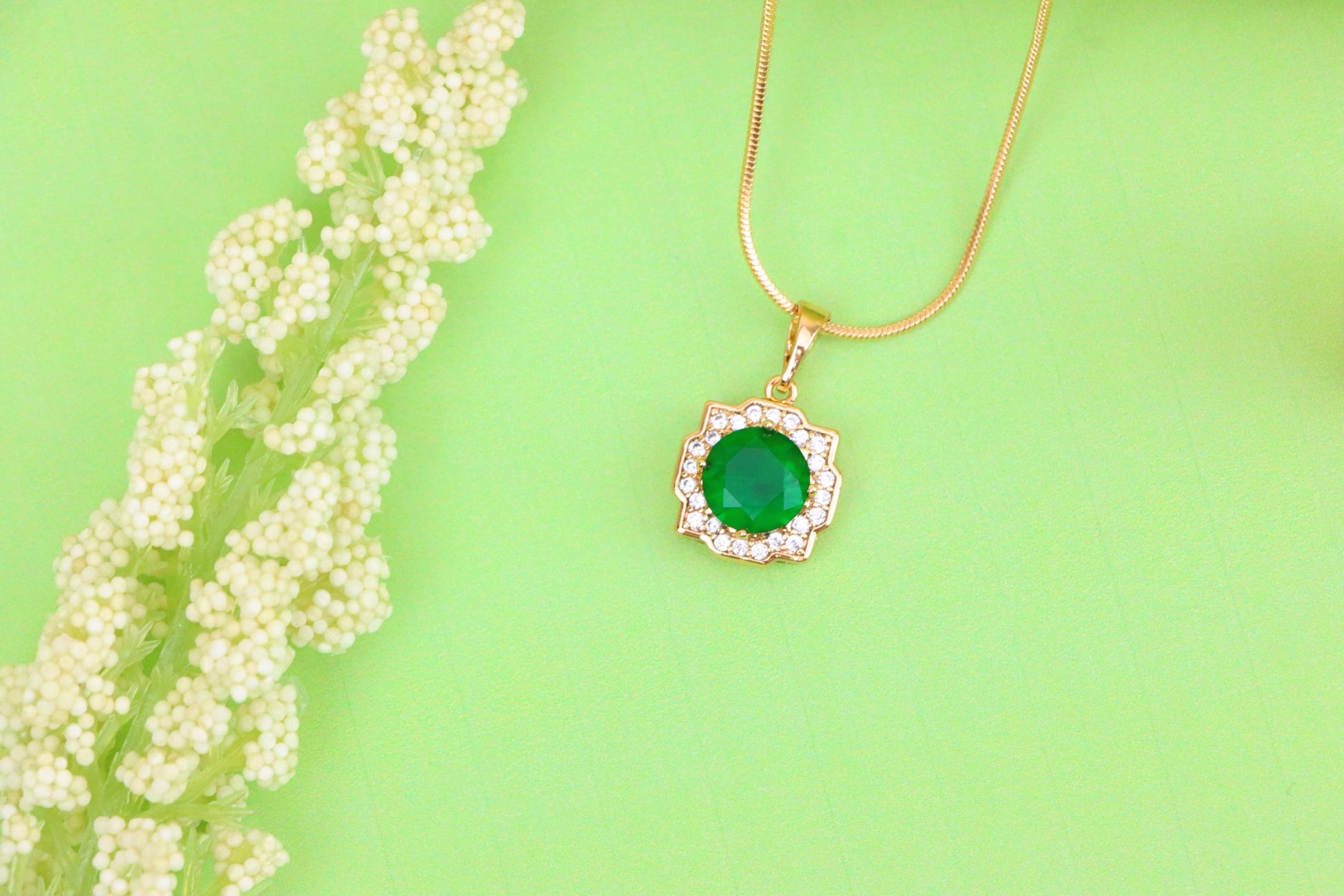 Green Round-Cut Pendant with Halo in Rose Gold, XPPT1634