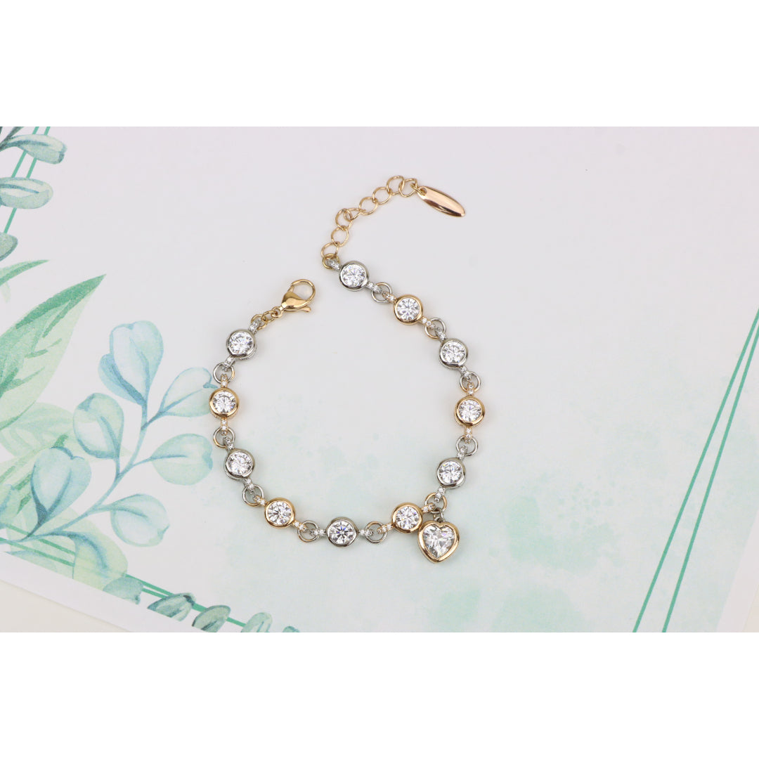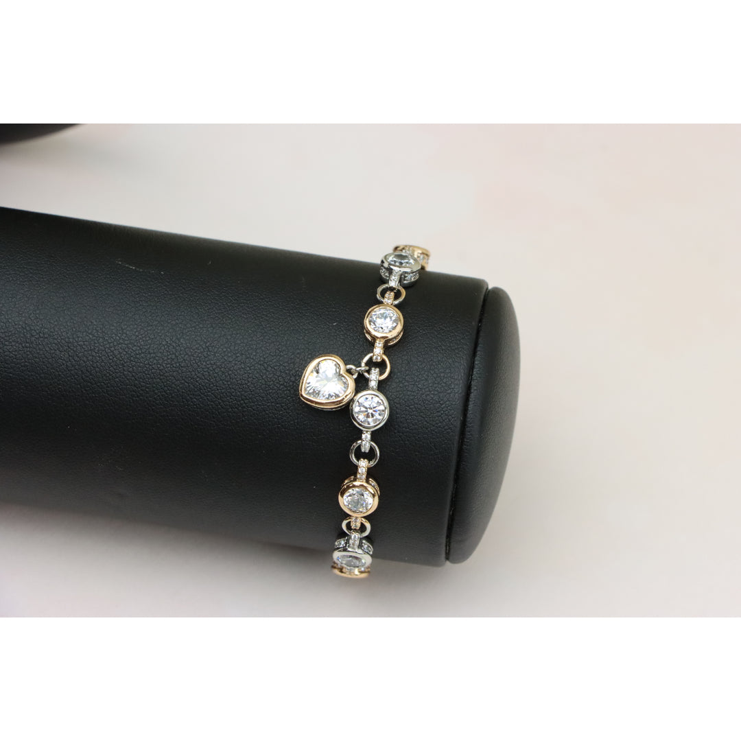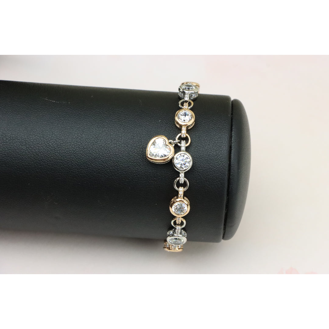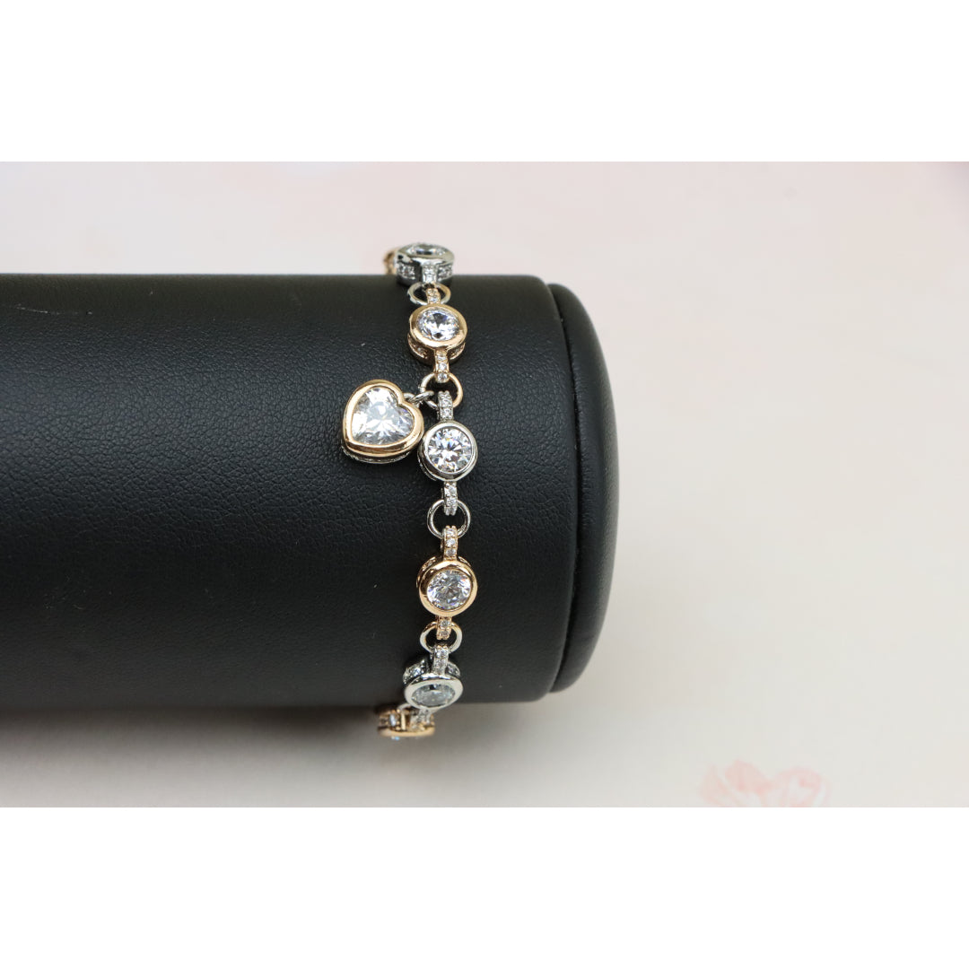 Heart Charm Rose Gold+Silver Bracelet with Sparkling Crystals, XPBL0797