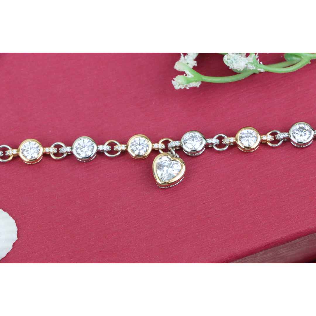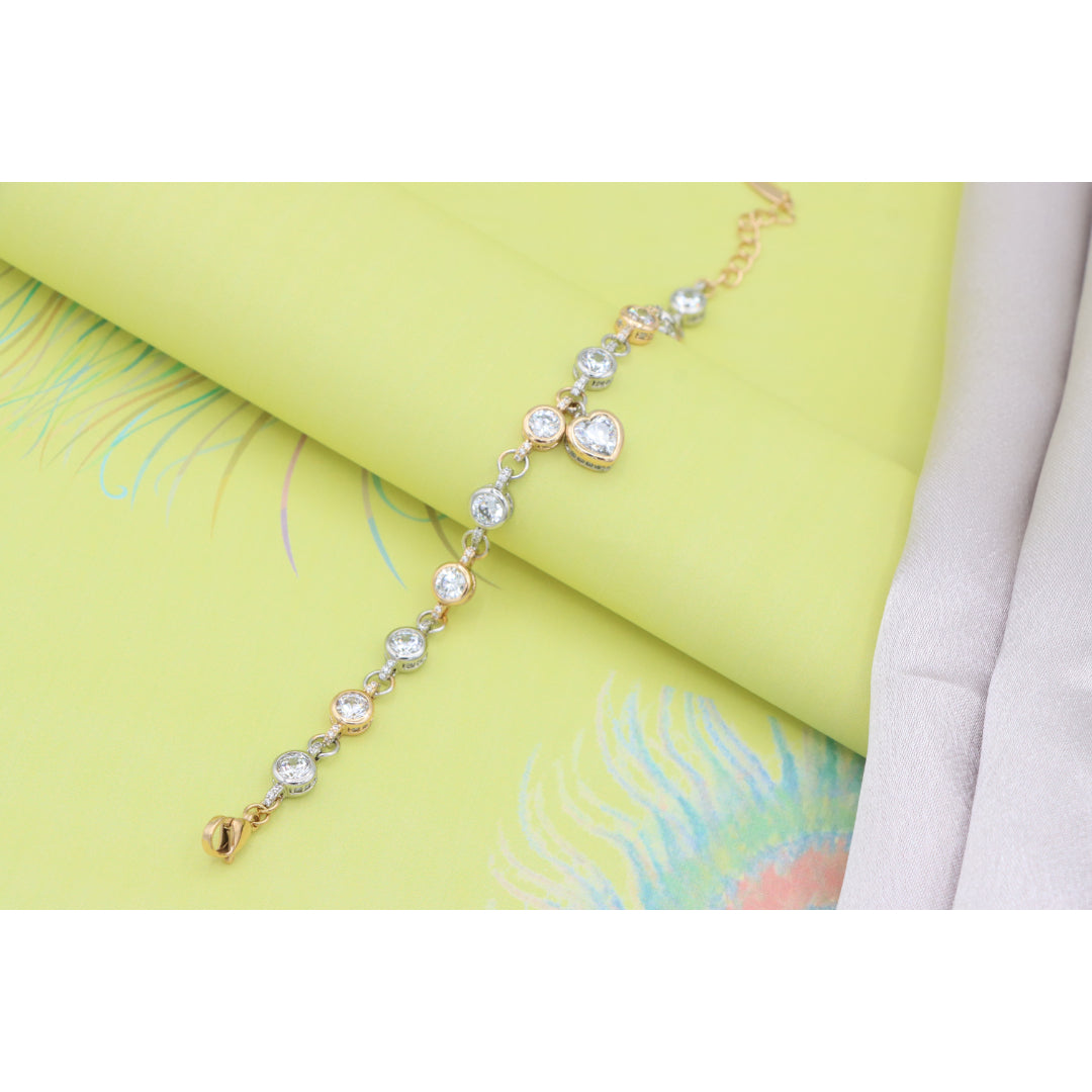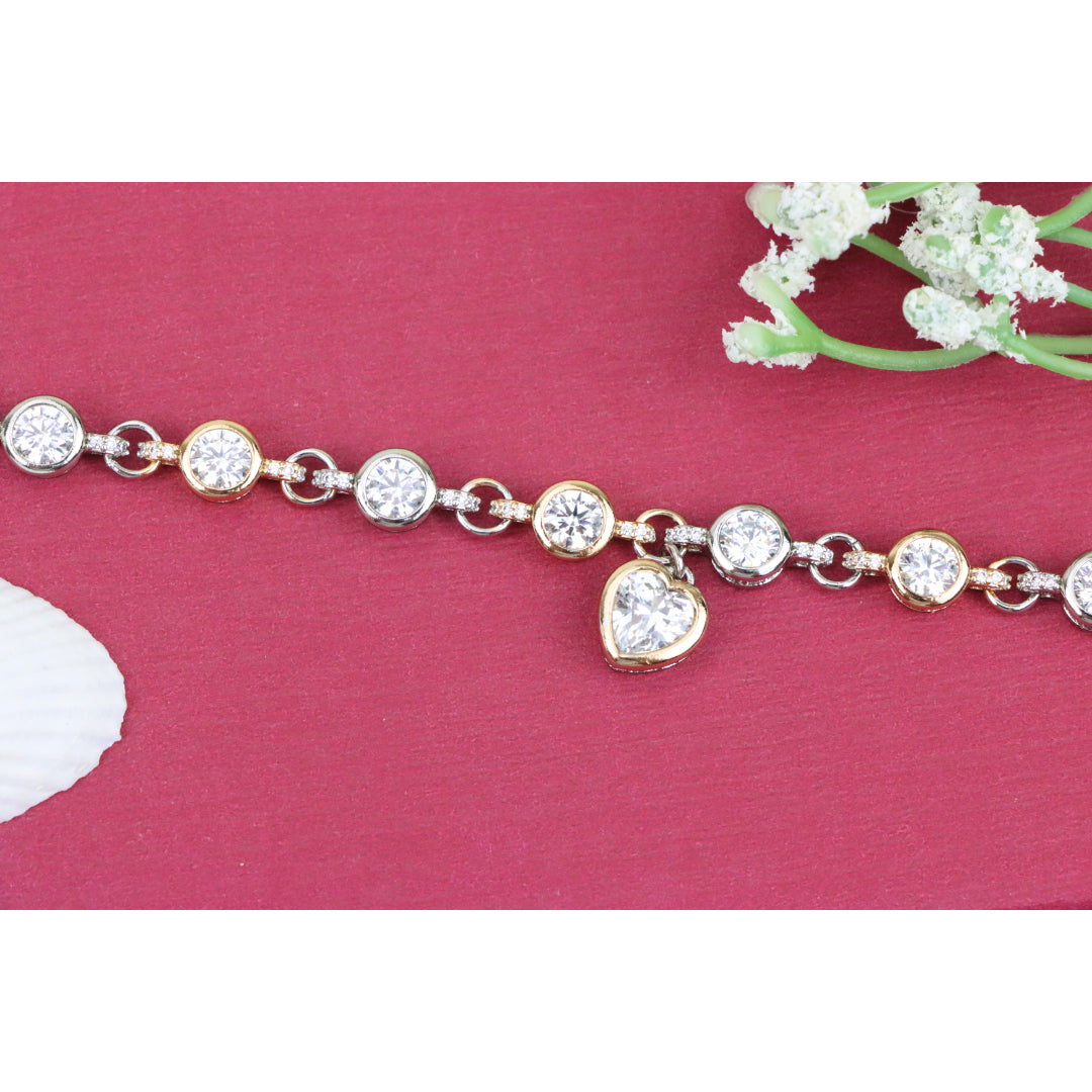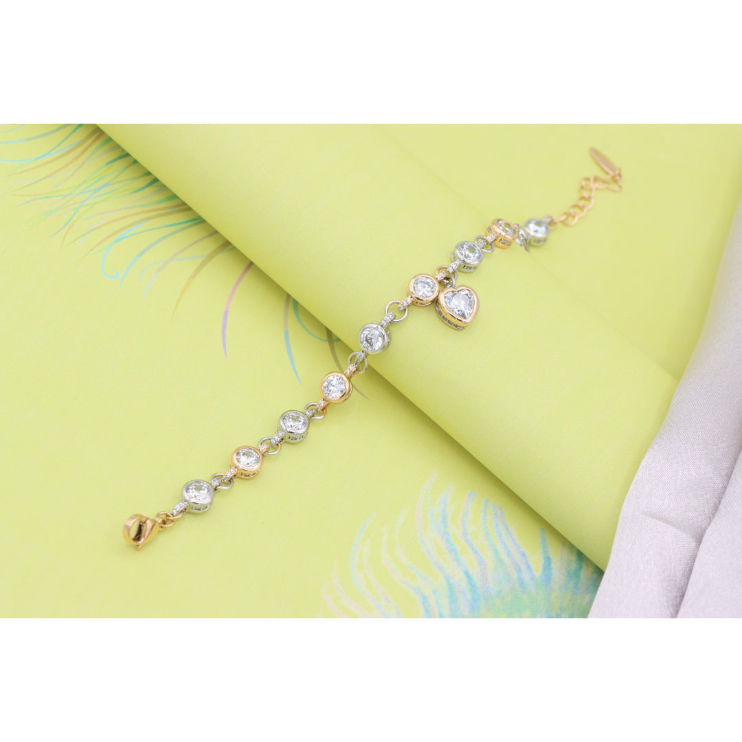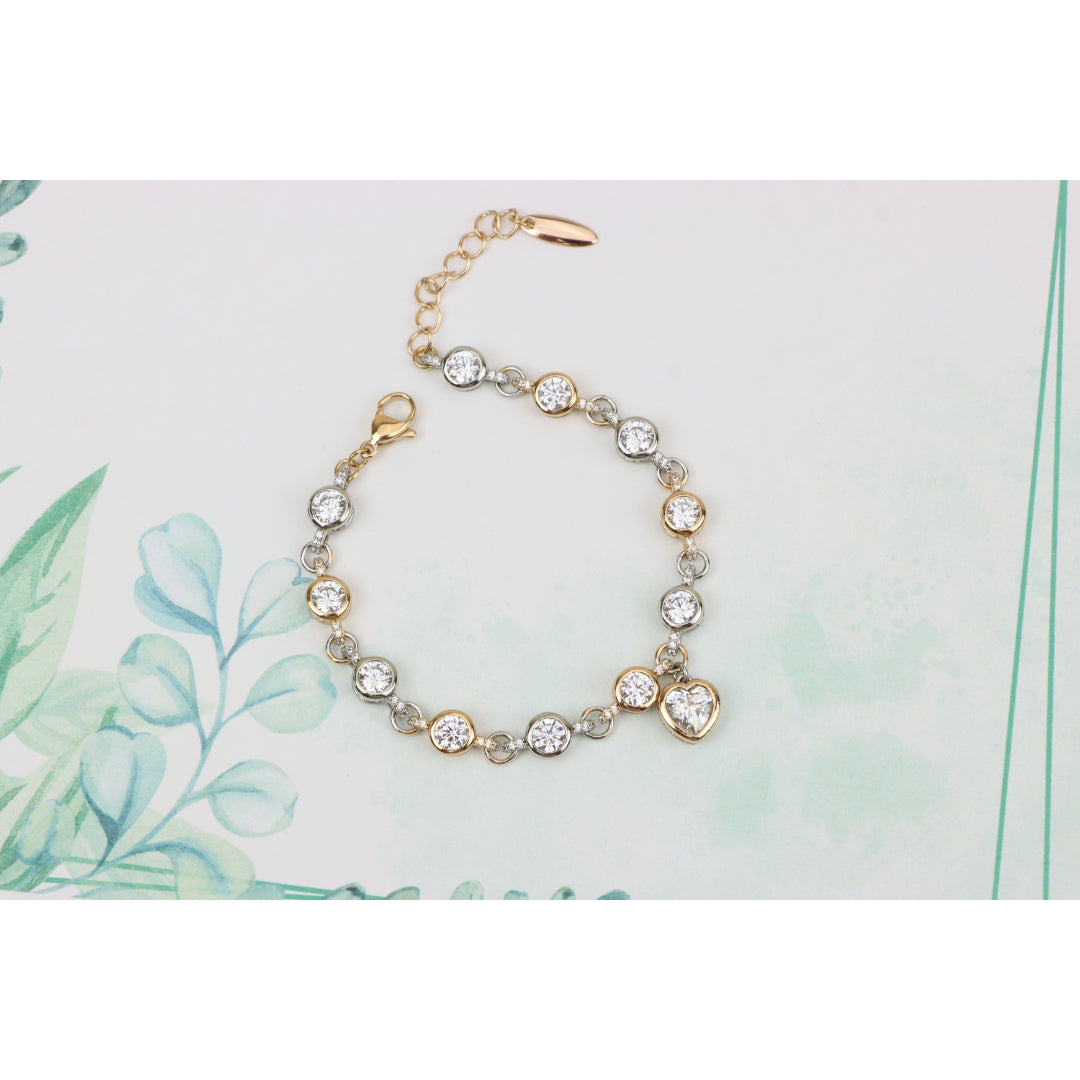 Heart Charm Rose Gold+Silver Bracelet with Sparkling Crystals, XPBL0797