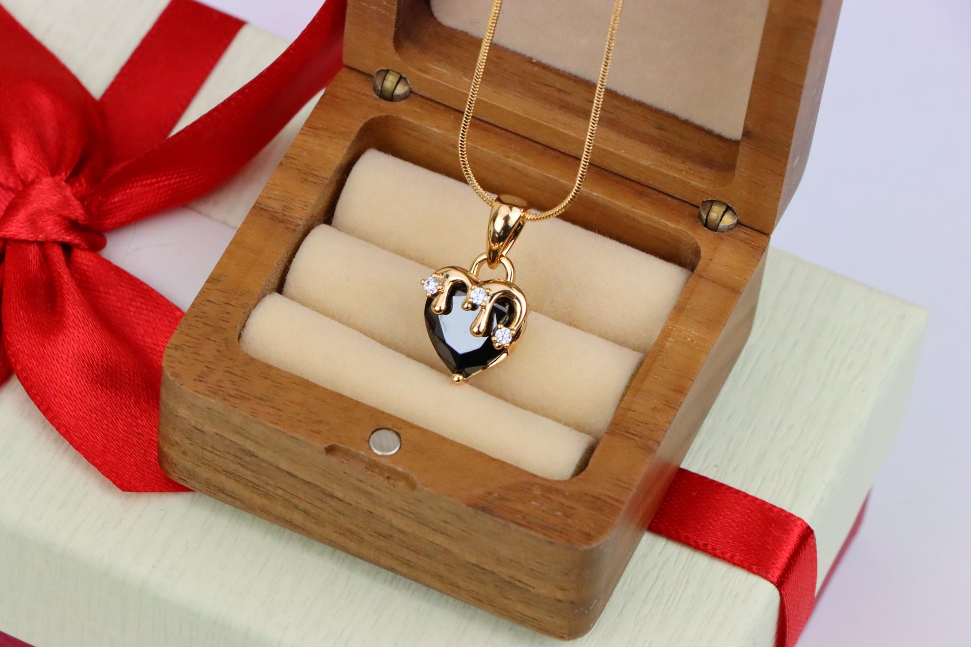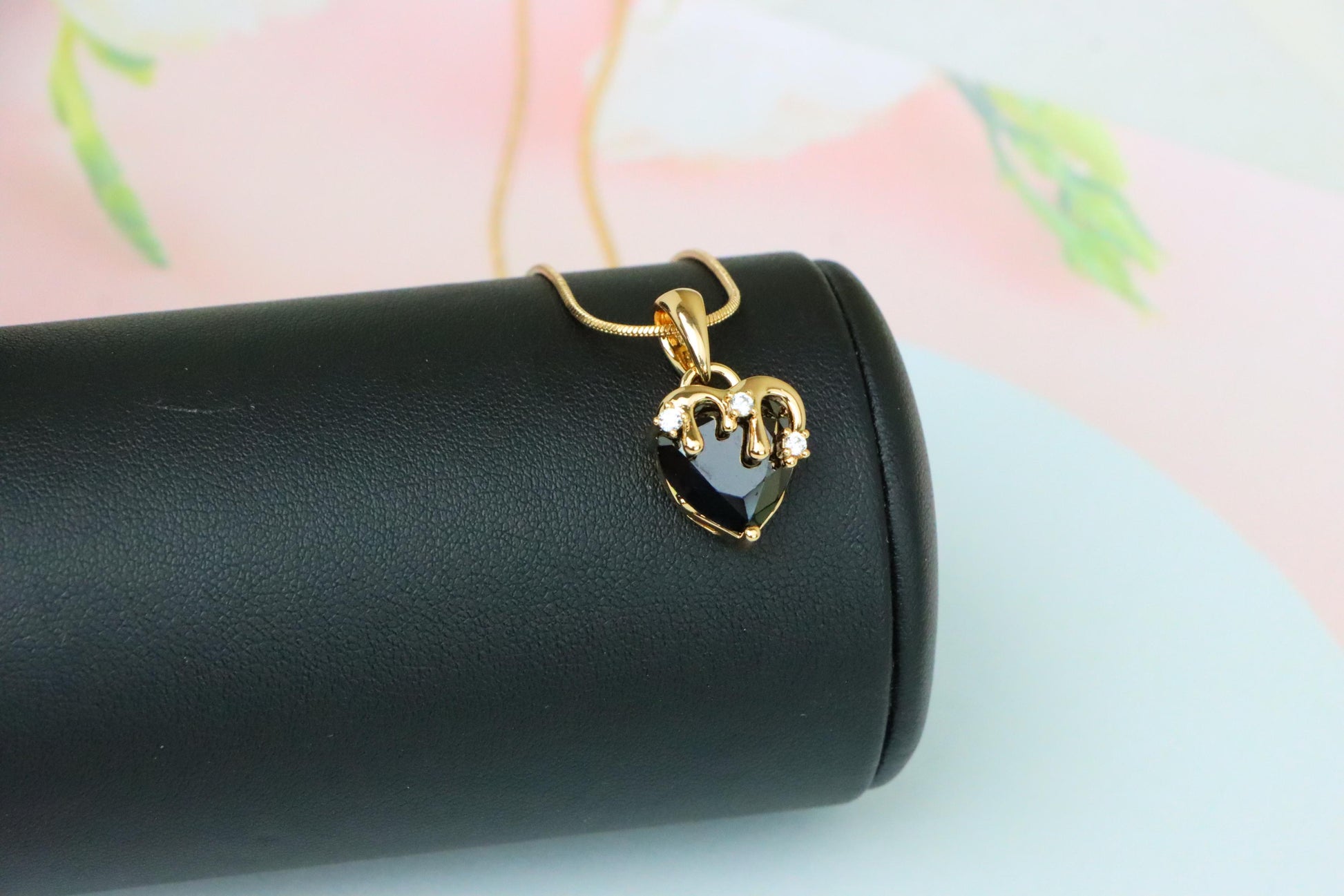 Heart Drip Black Pendant in Gold Finish Gothic Charm,XPPT1697