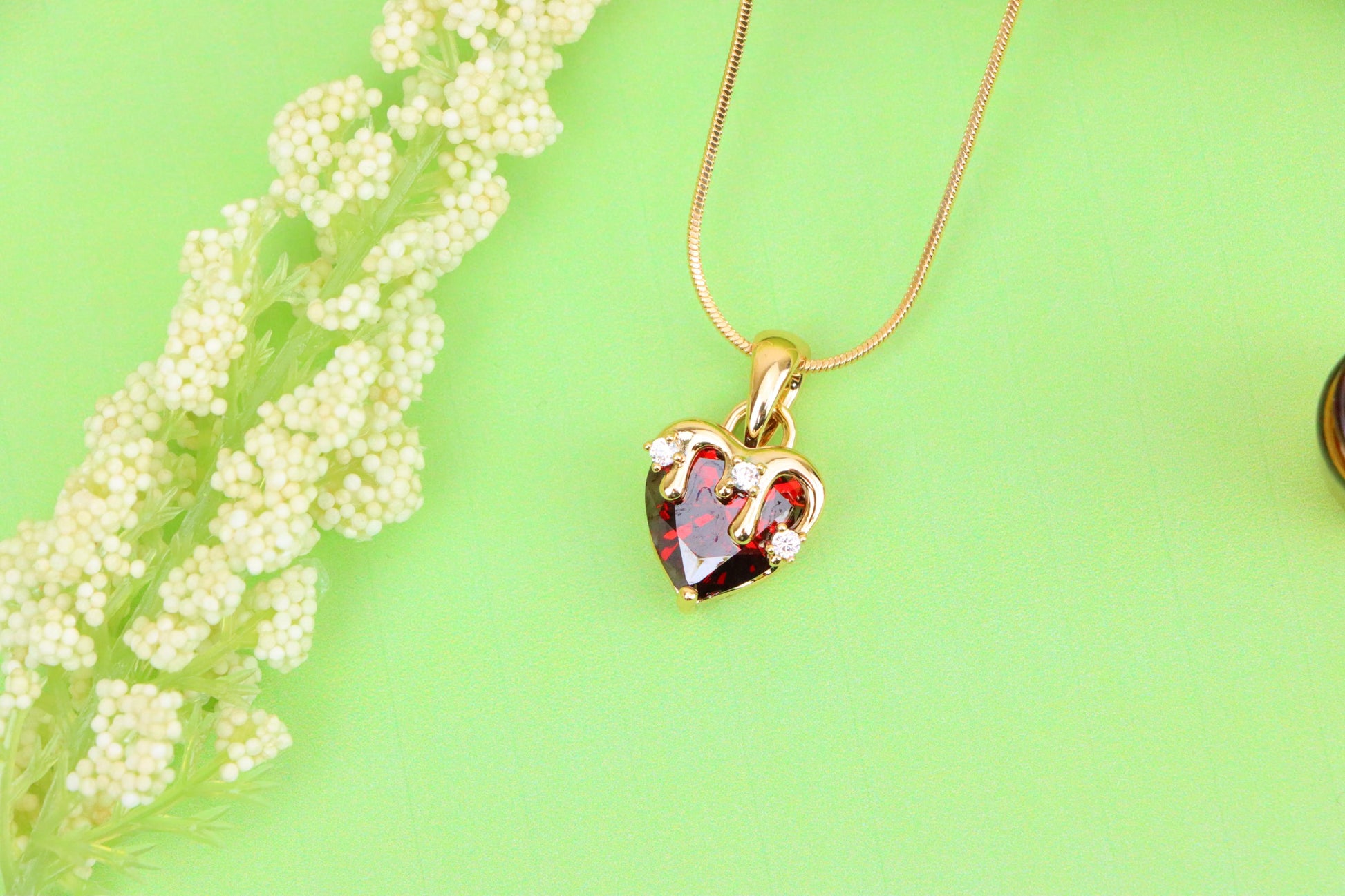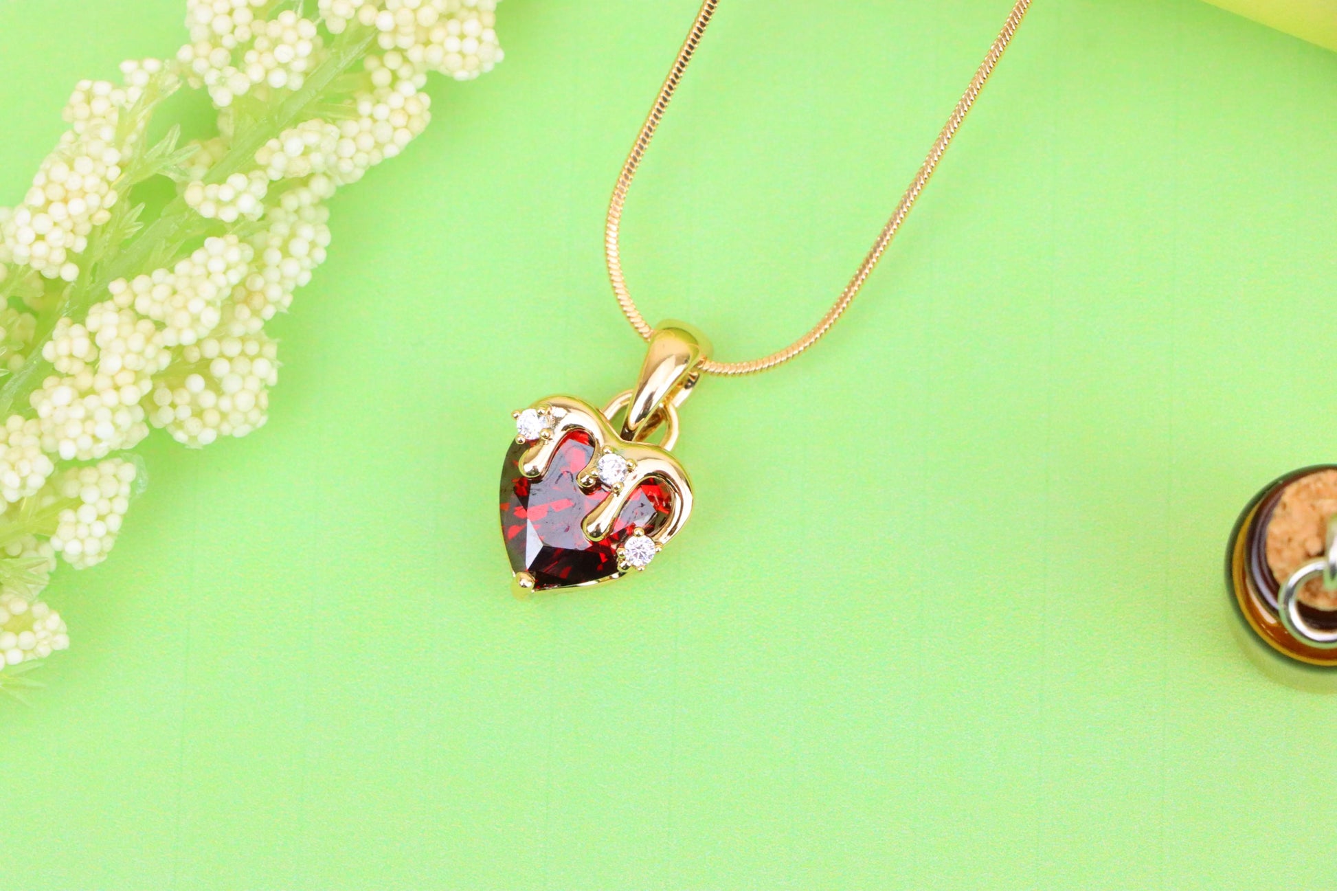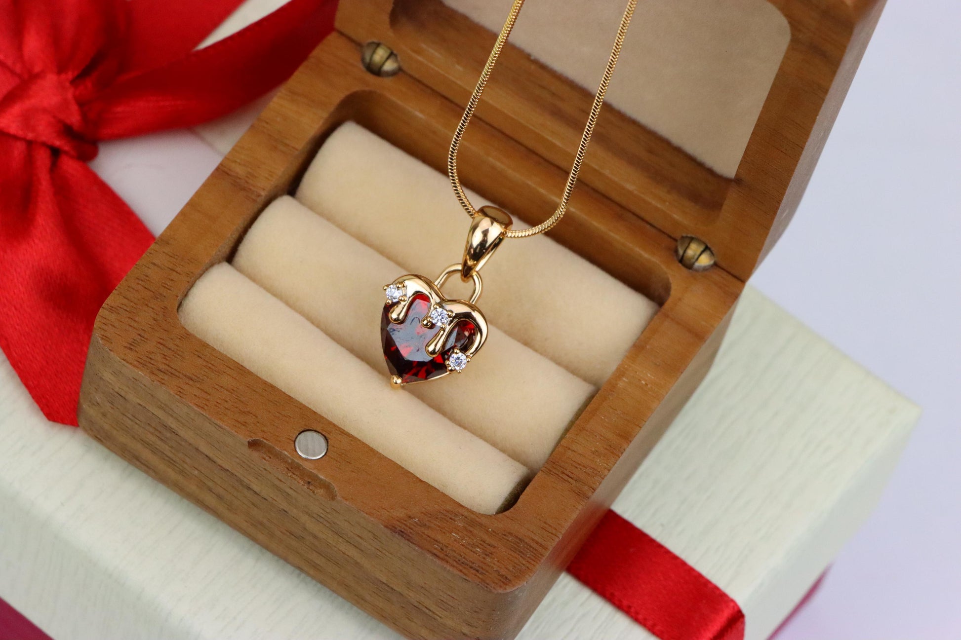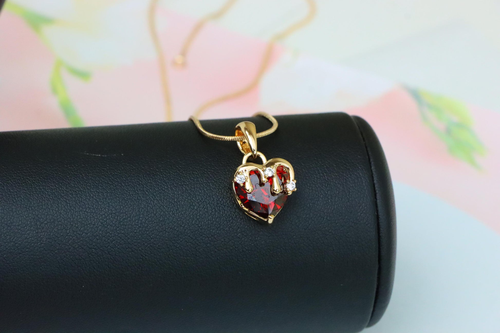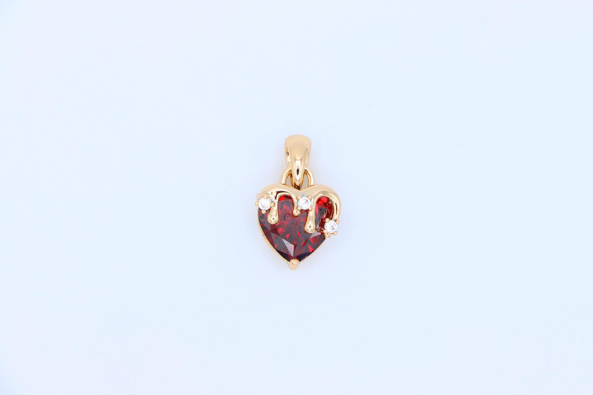 ✔️ Heart-shaped blood red gemstone with drip-effect crown
