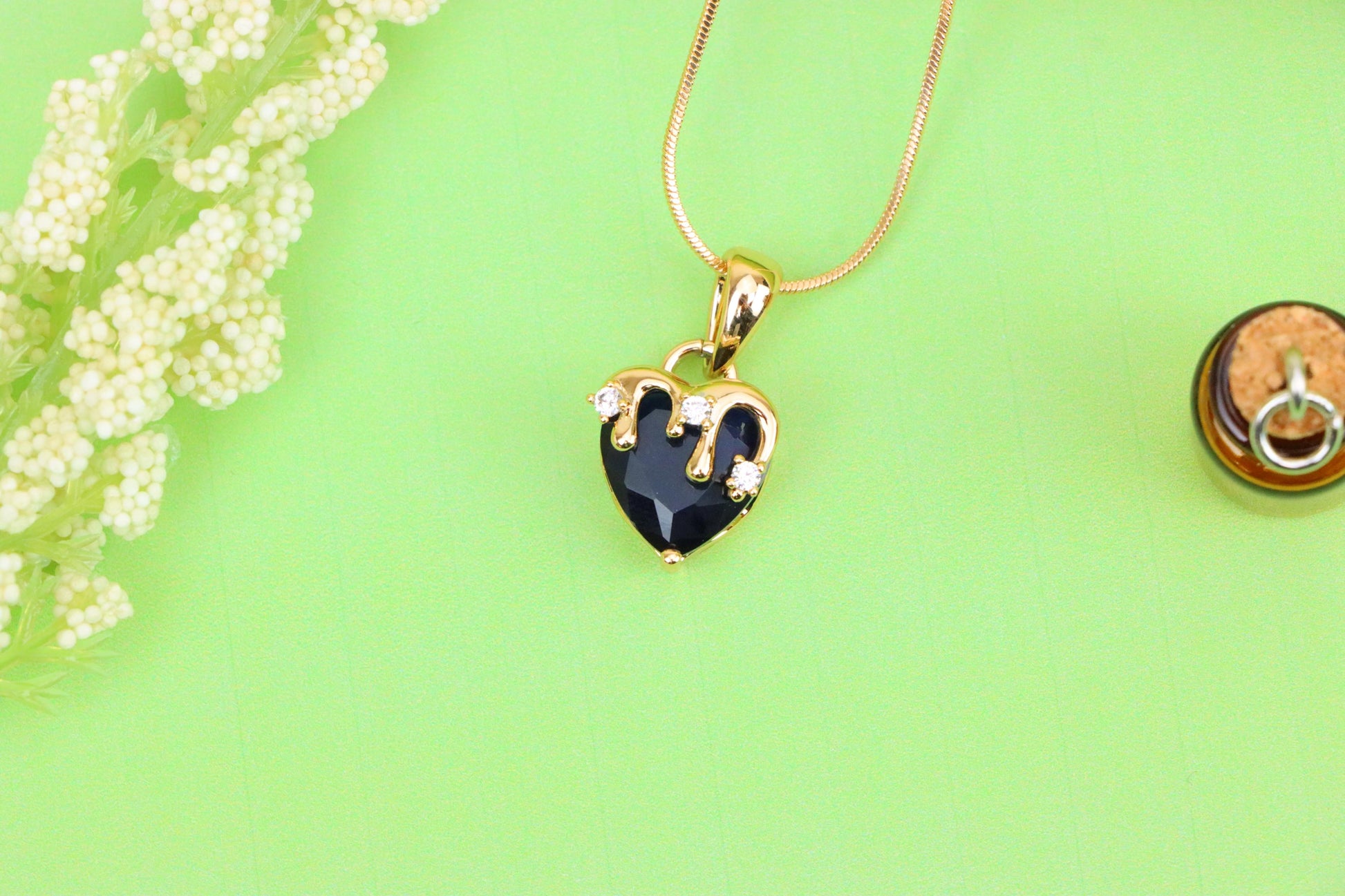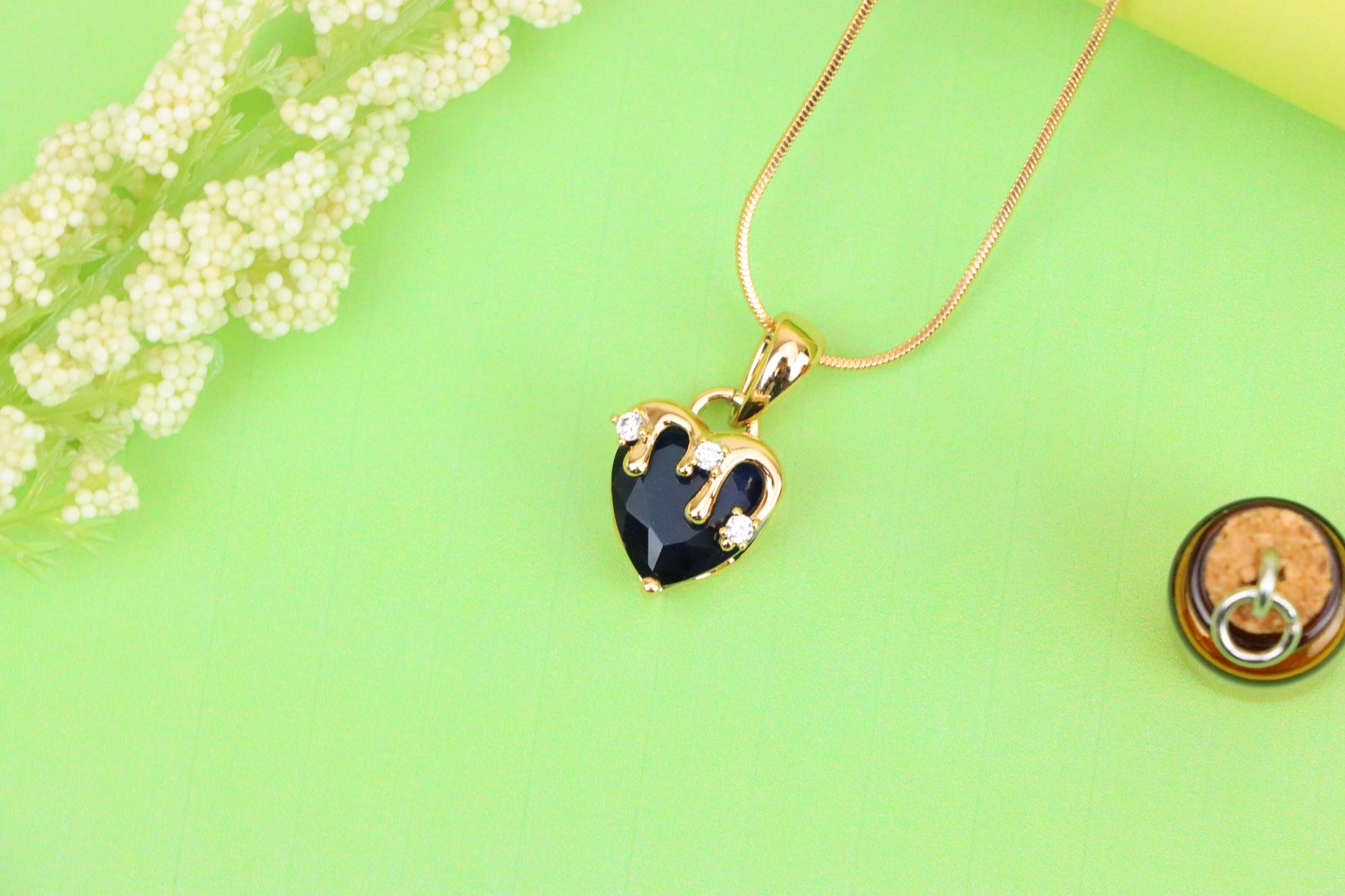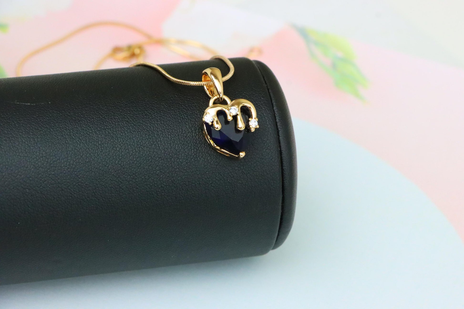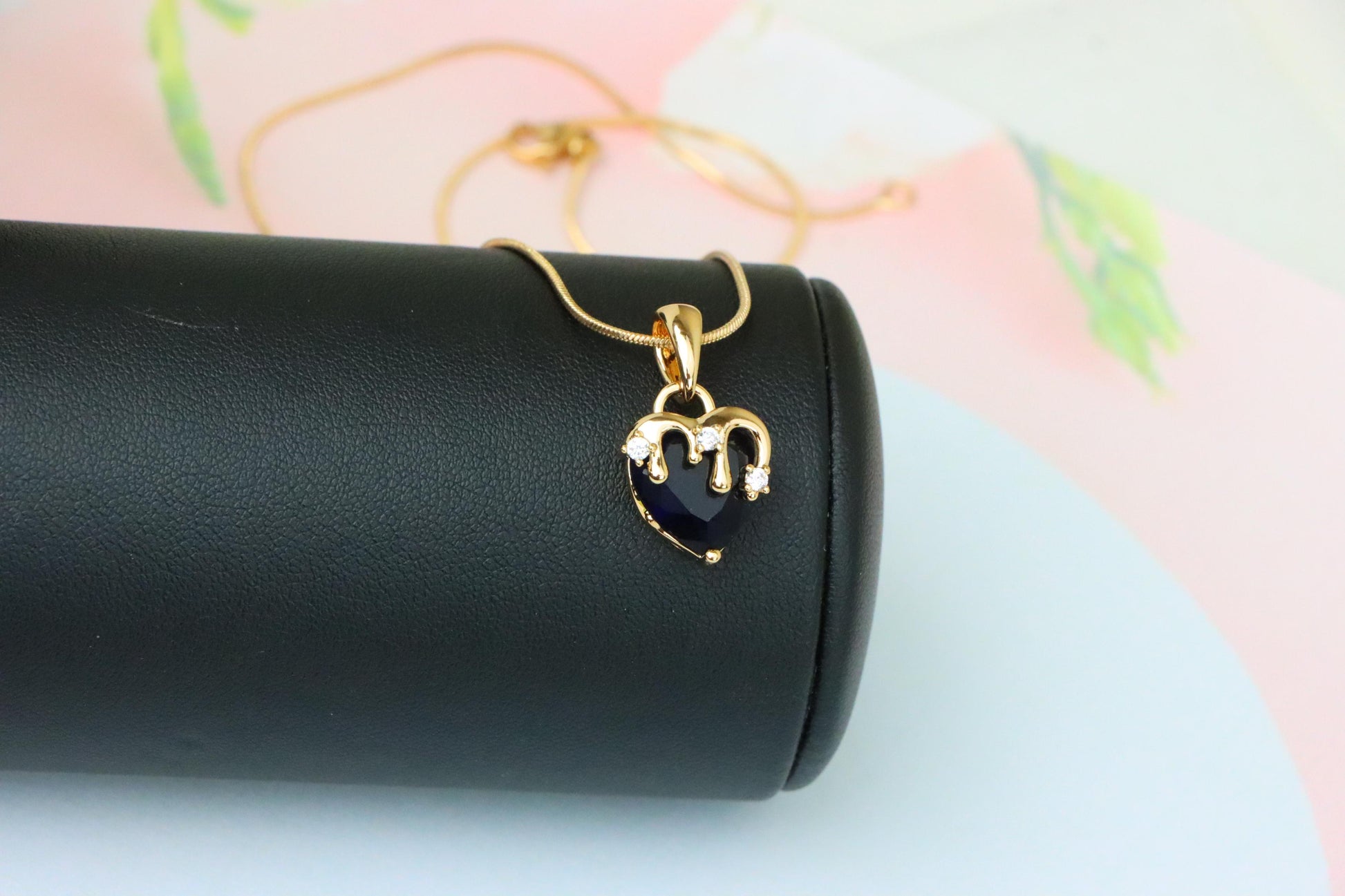 Chic blue heart pendant with gold drip top and cubic zirconia sparkle.