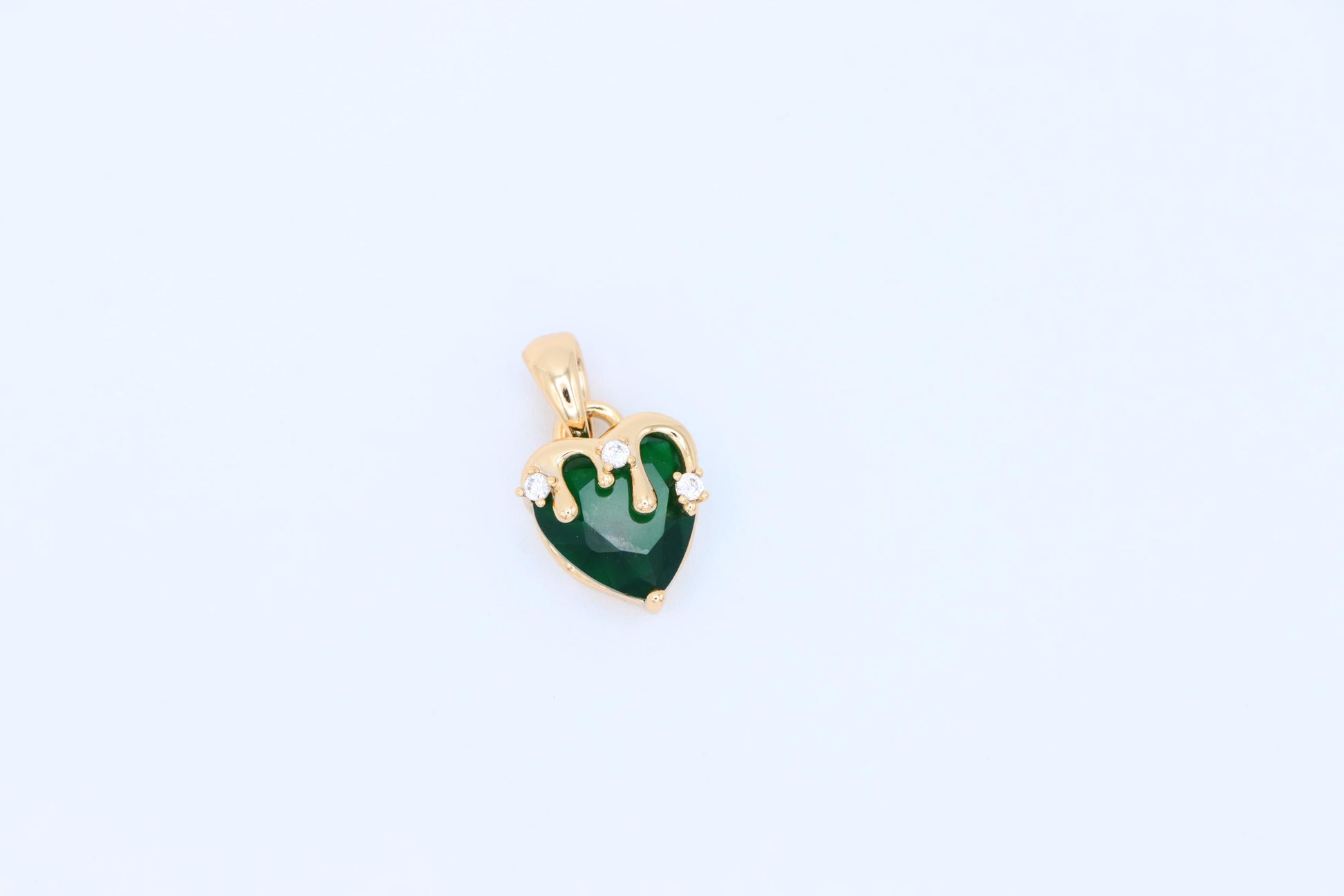 Dainty heart-shaped green pendant with unique drip-effect and white accents.