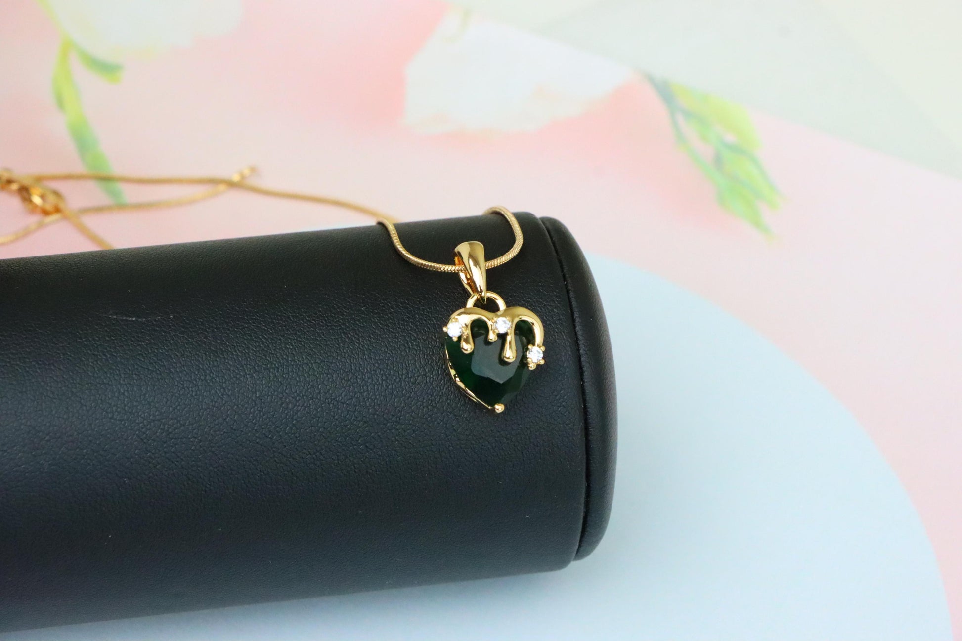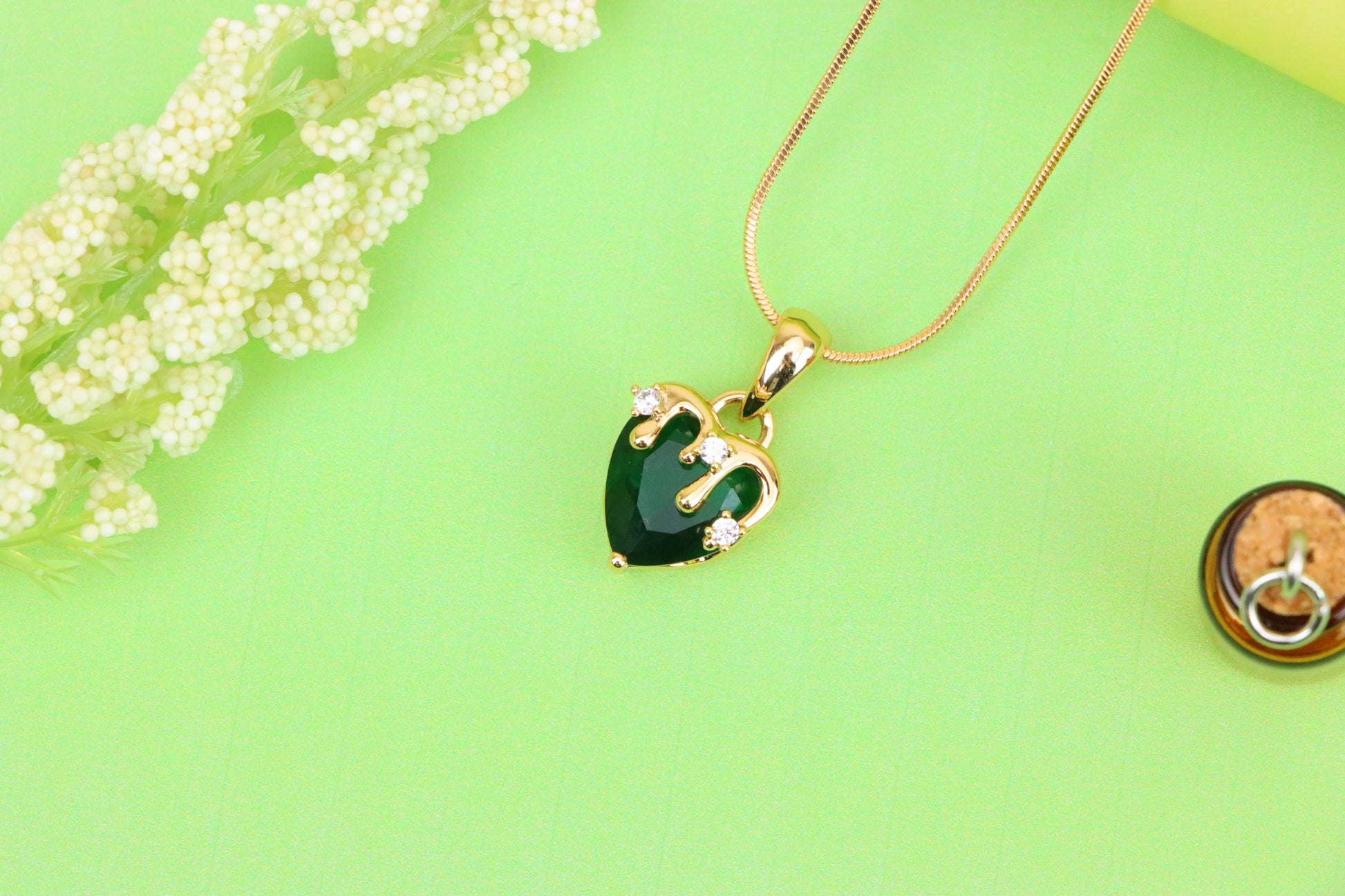 Heart Drip Green Pendant in Gold Finish Stylish Jewelry, XPPT1695