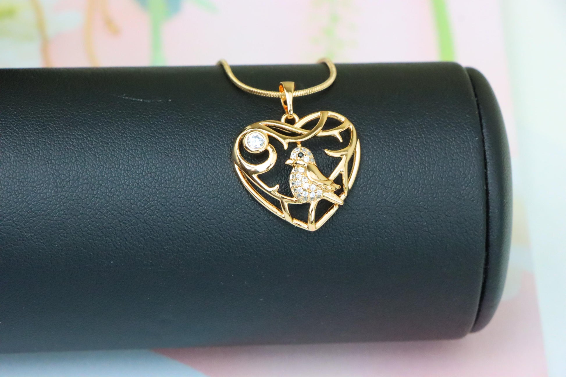 Heart Shaped Rose Gold Pendant with Bird and Branch Design, XPPT1297