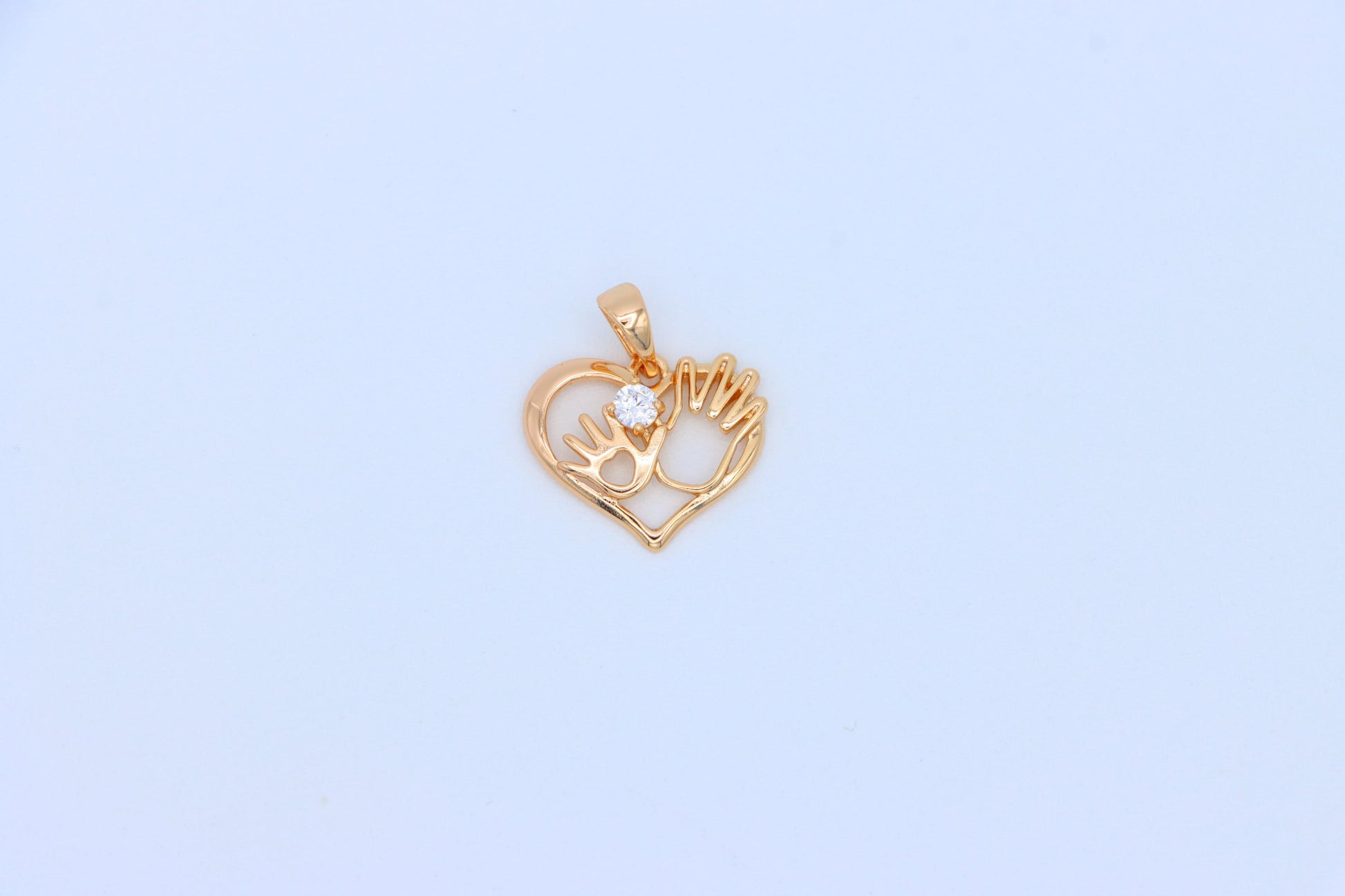 Heart Shaped Rose Gold Pendant with Mother & Child Hand Design, XPPT1521 (2141-4)