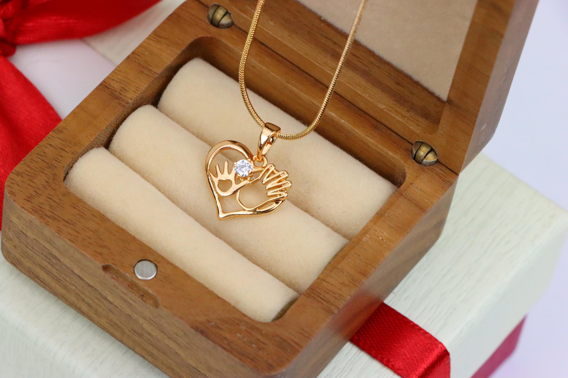 Heart Shaped Rose Gold Pendant with Mother & Child Hand Design, XPPT1521