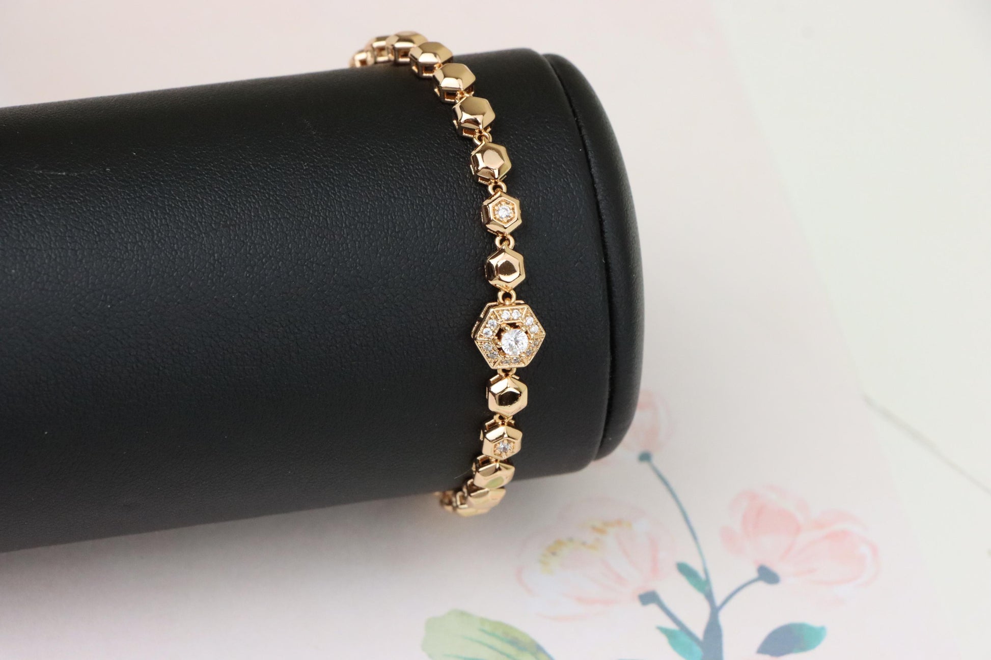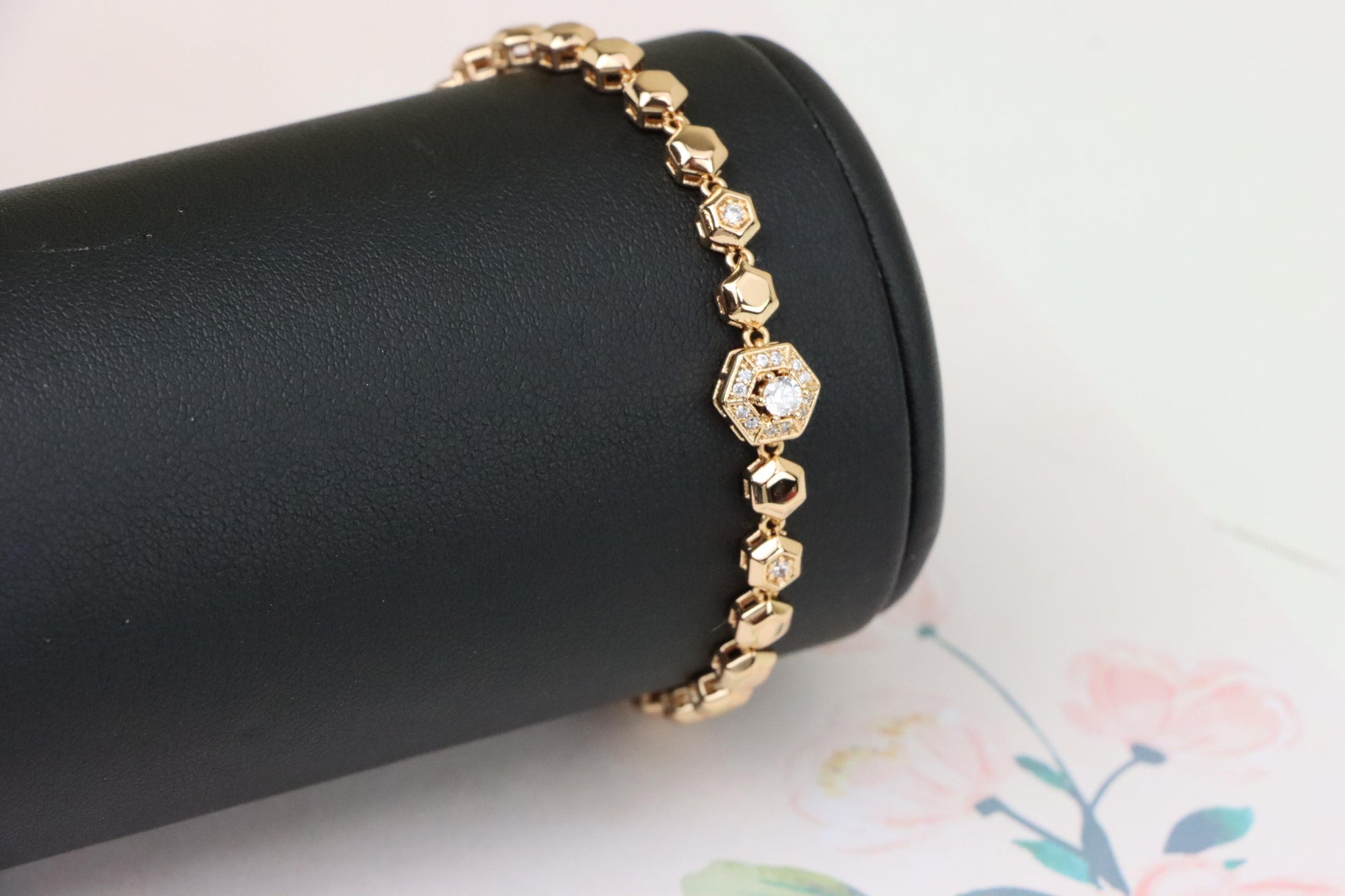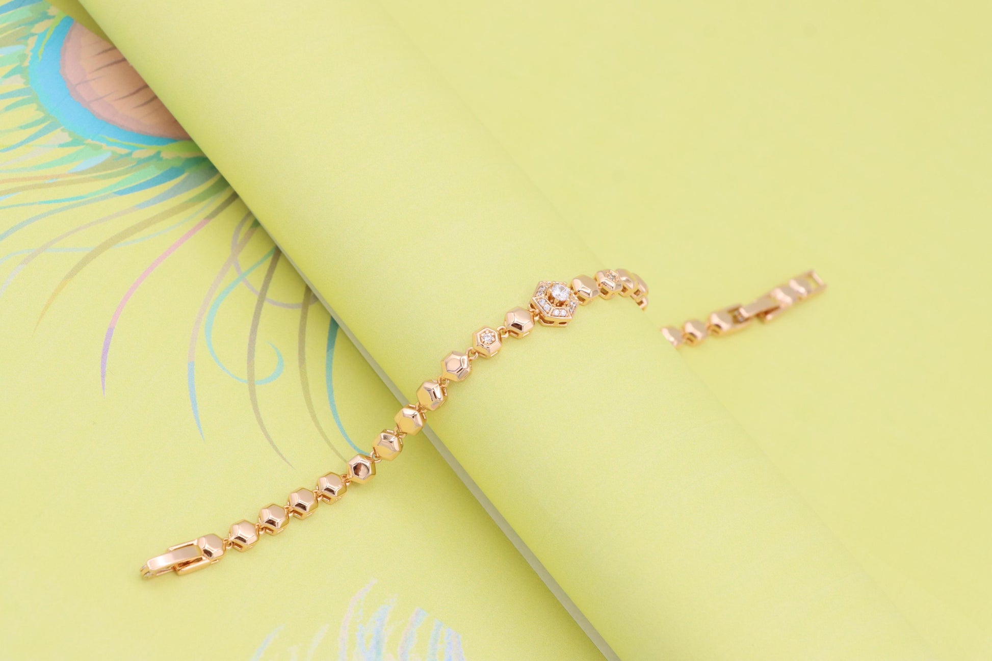 Hexagon Rose Gold Bracelet with Crystal Detail, XPBL0980