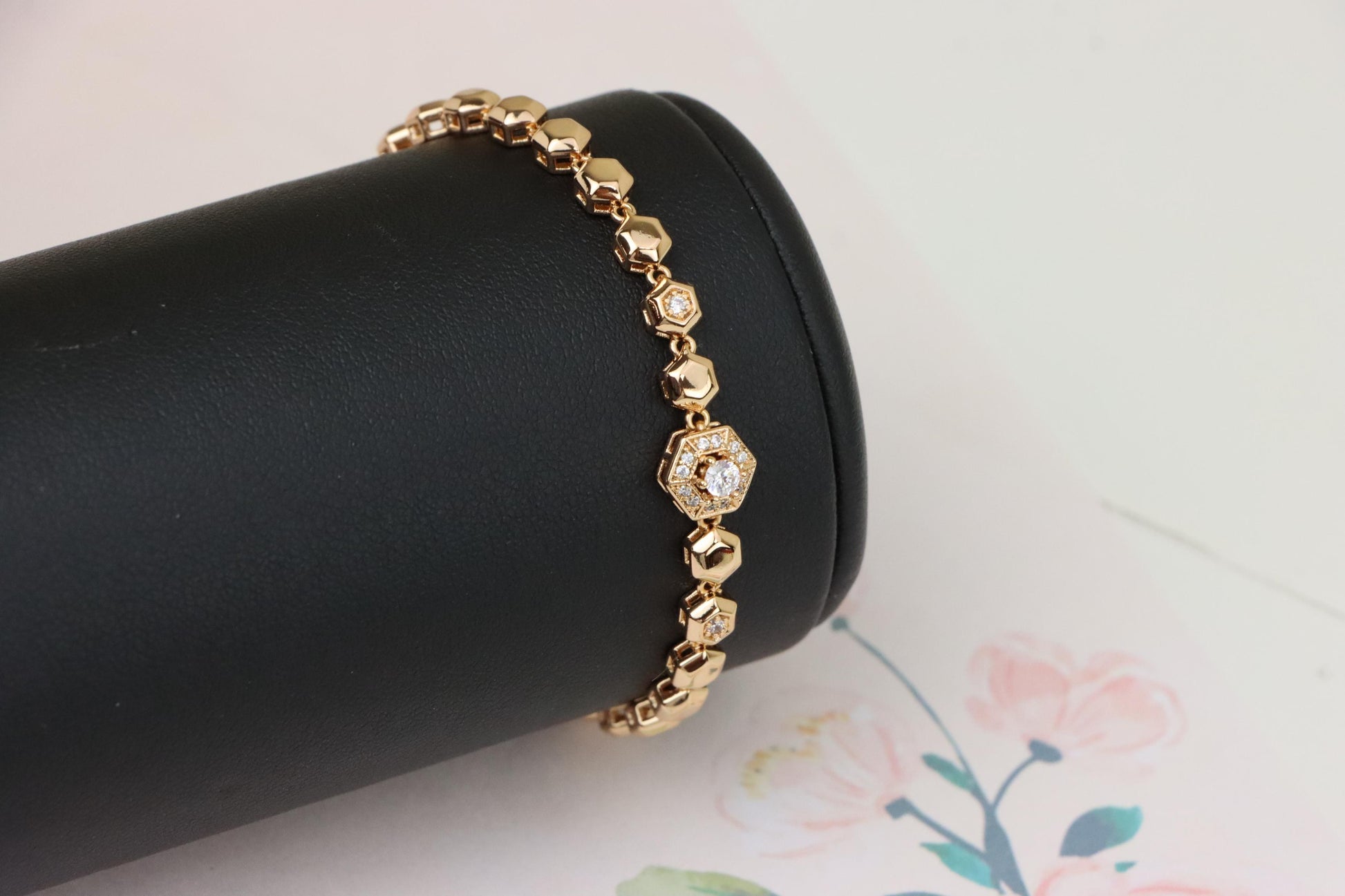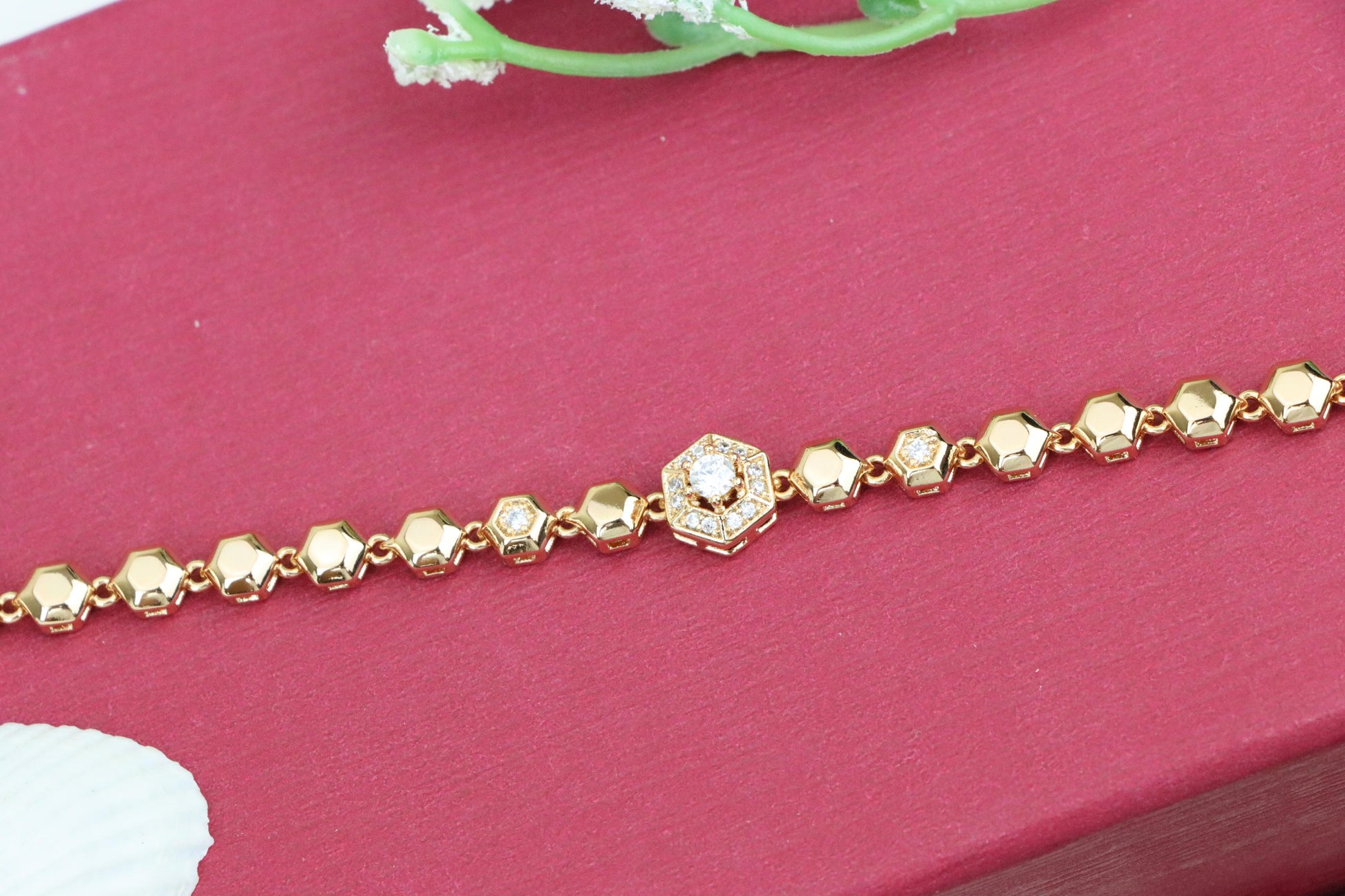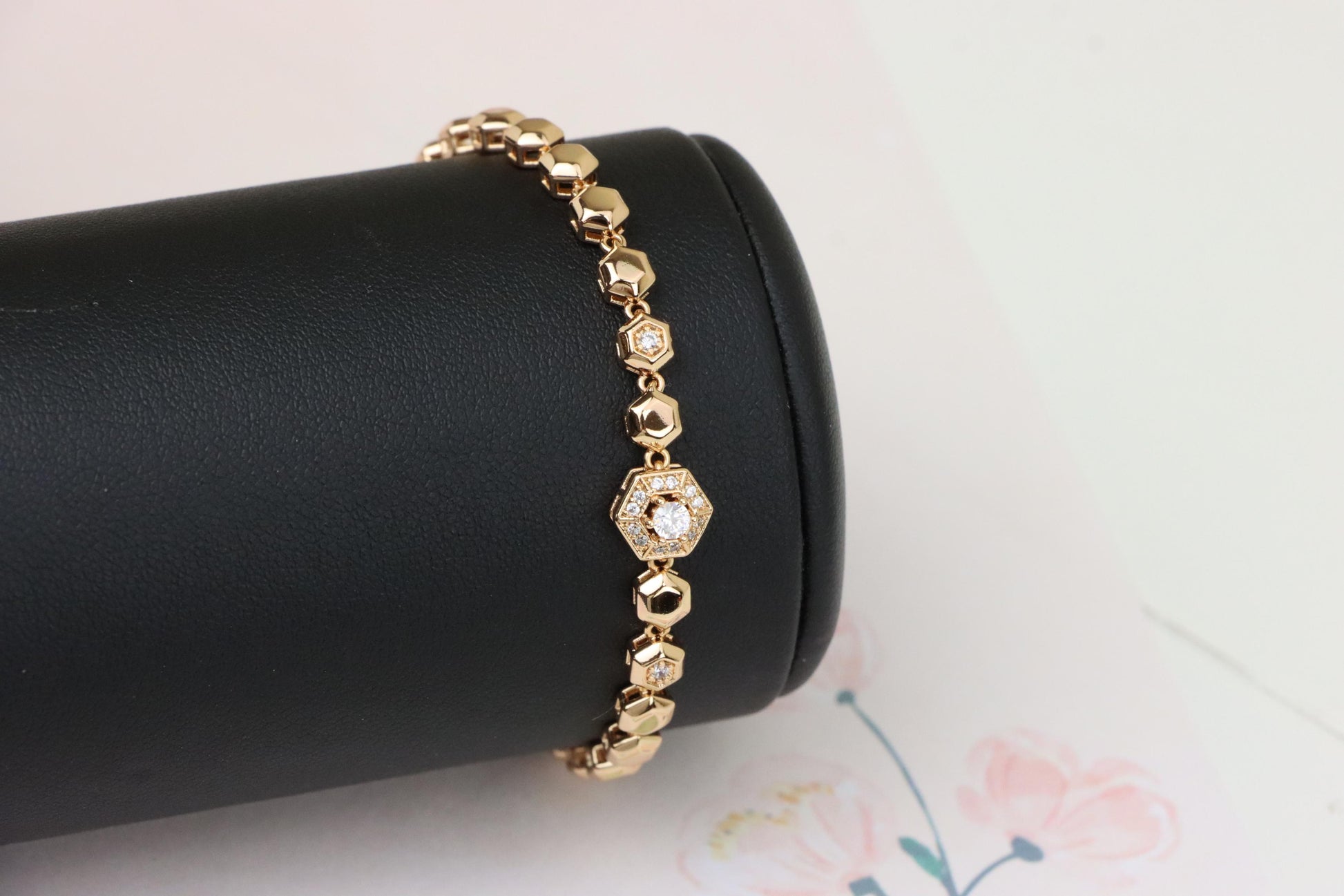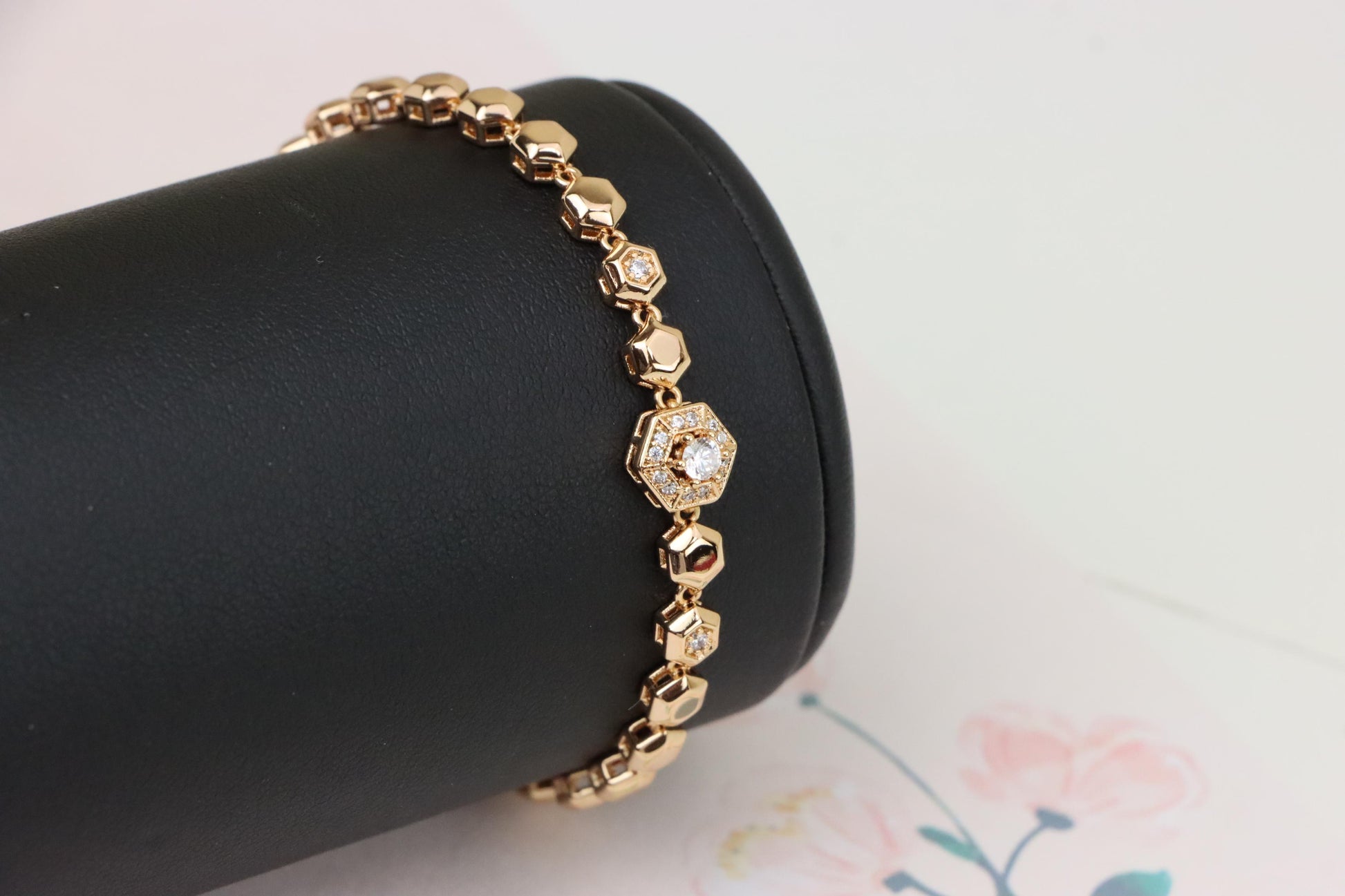 Hexagon Rose Gold Bracelet with Crystal Detail, XPBL0980
