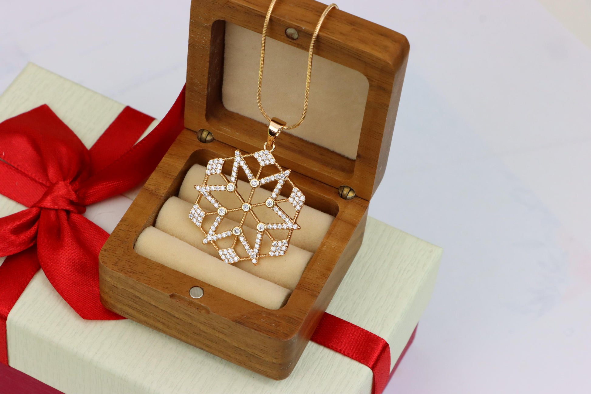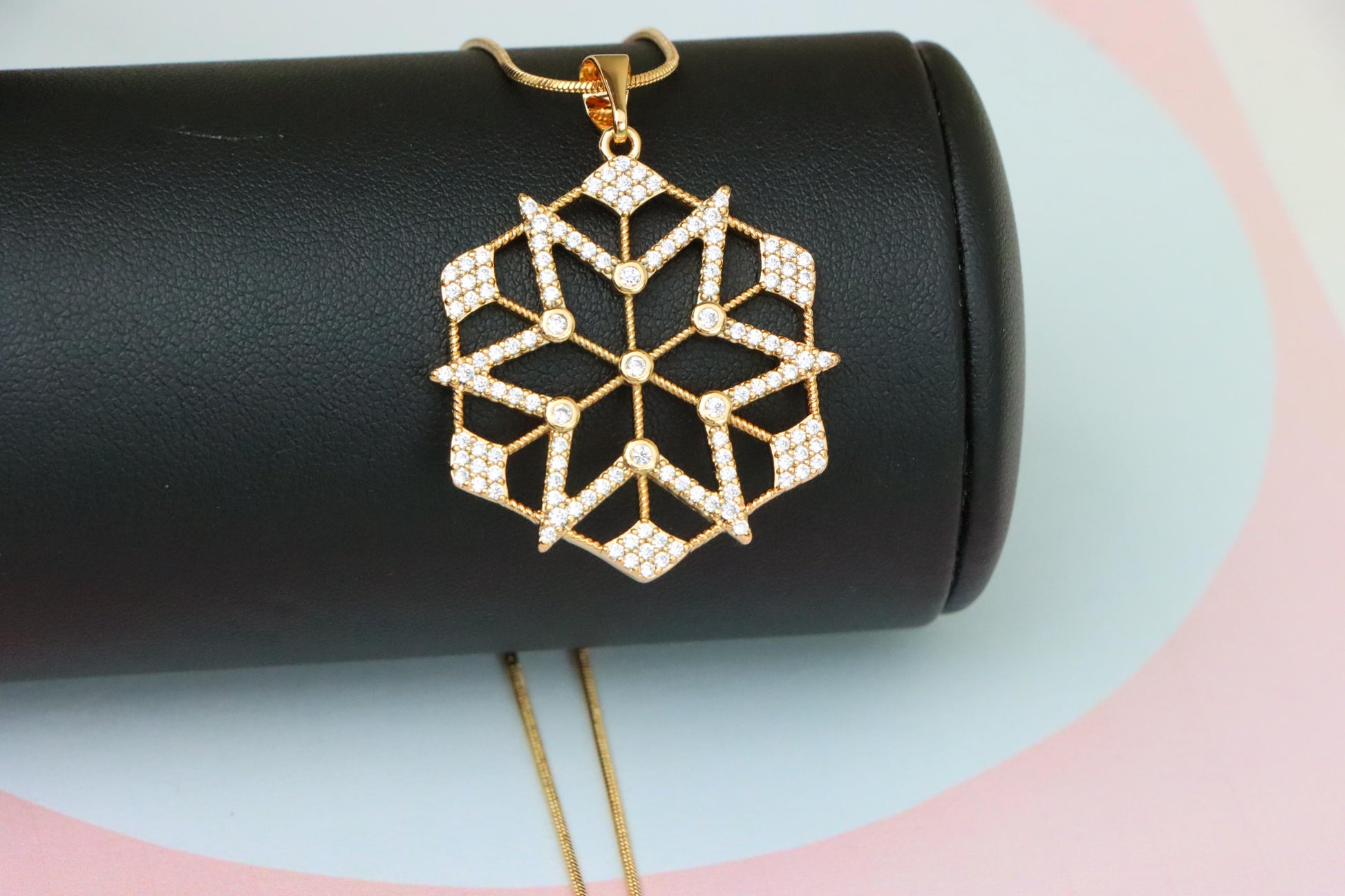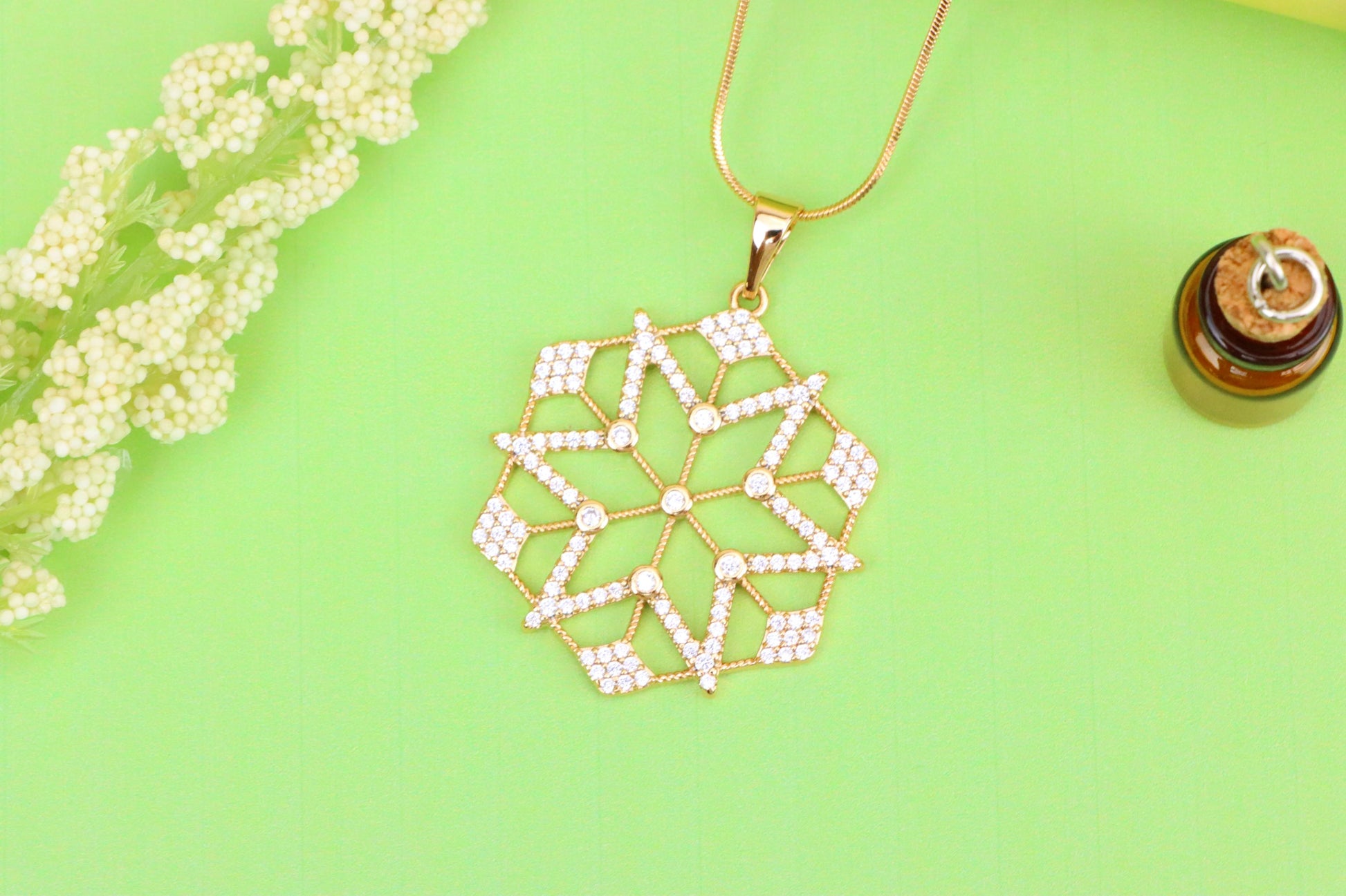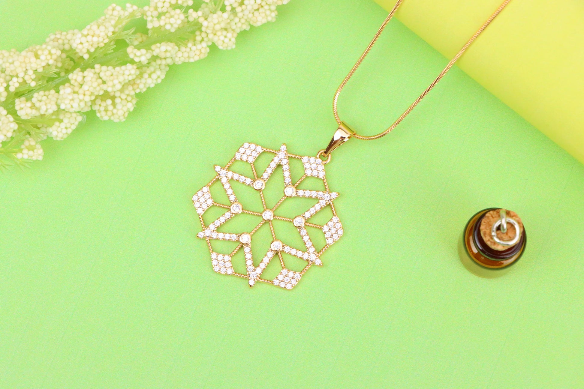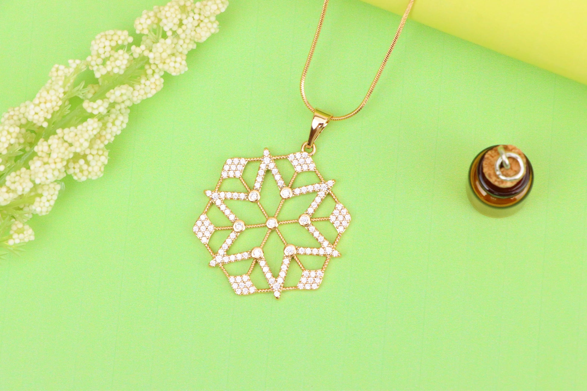 Large Rose Gold Geometric CZ Pendant with Star Pattern Design, XPPT1843