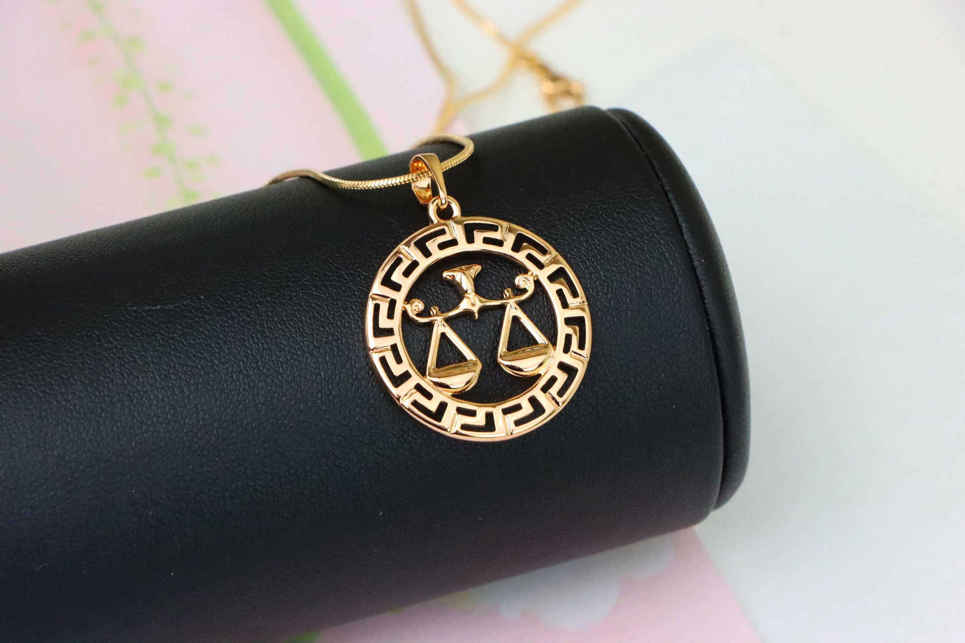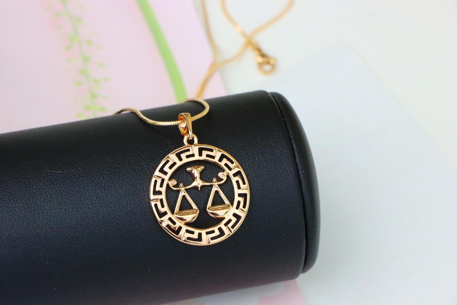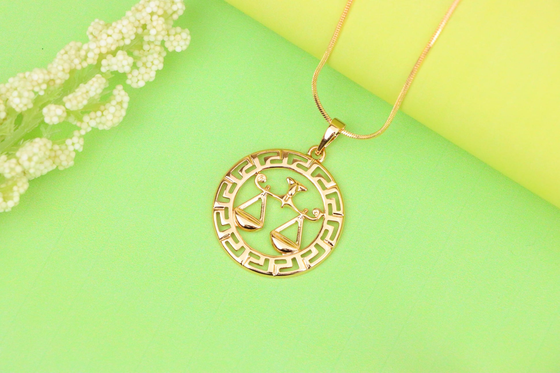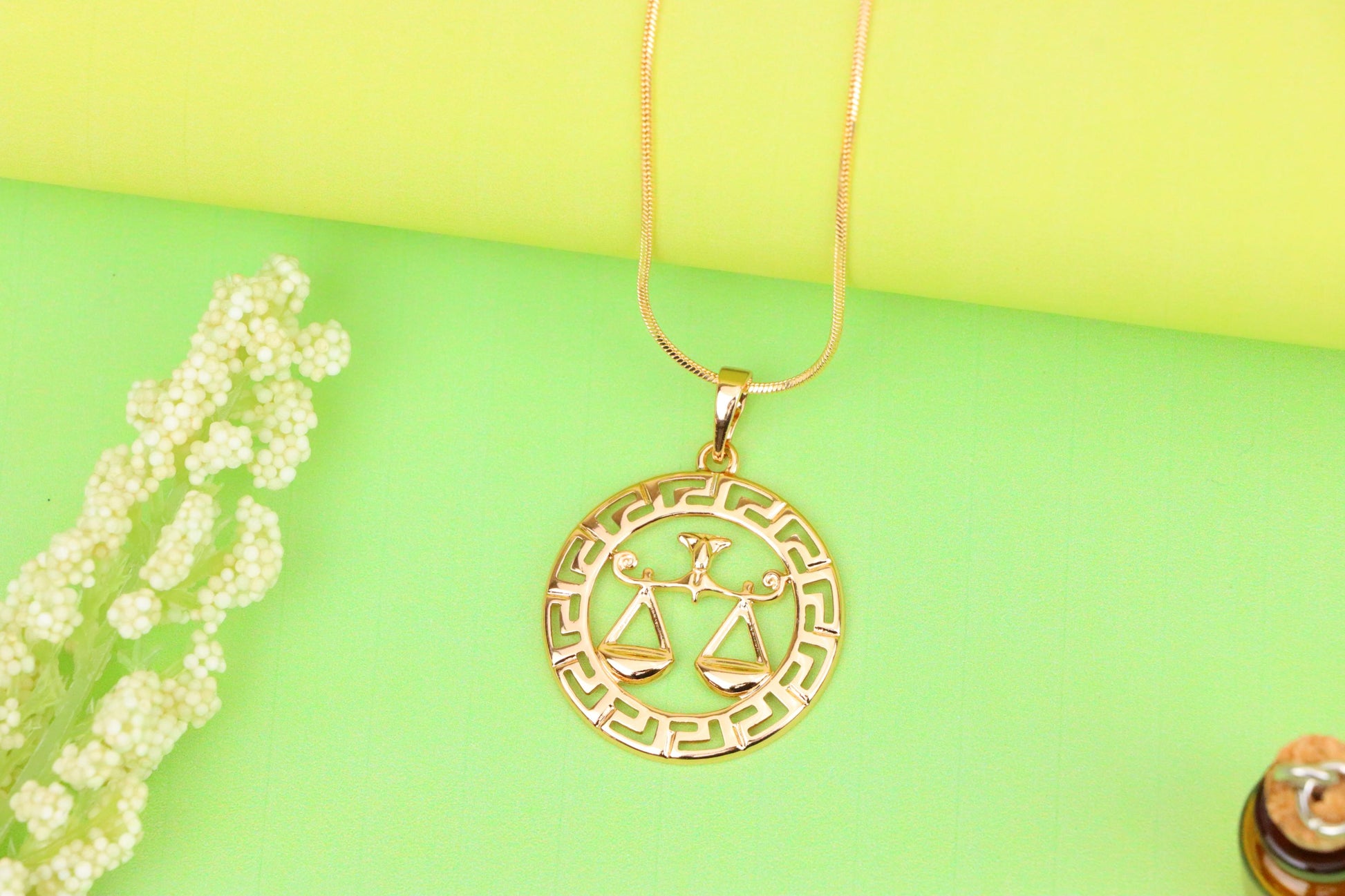 Libra Zodiac Sign Rose Gold Pendant in Gold Plated Brass, XPPT1334