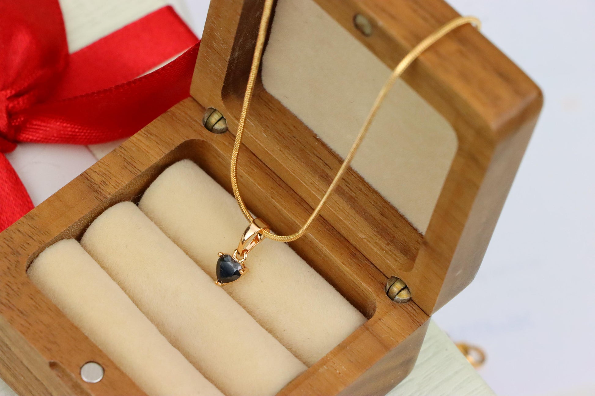 Mini Heart-Shaped Black Pendant in Gold Plated Brass, XPPT1303