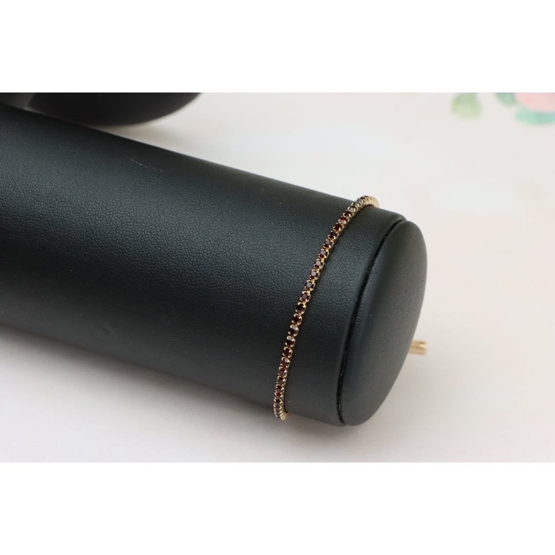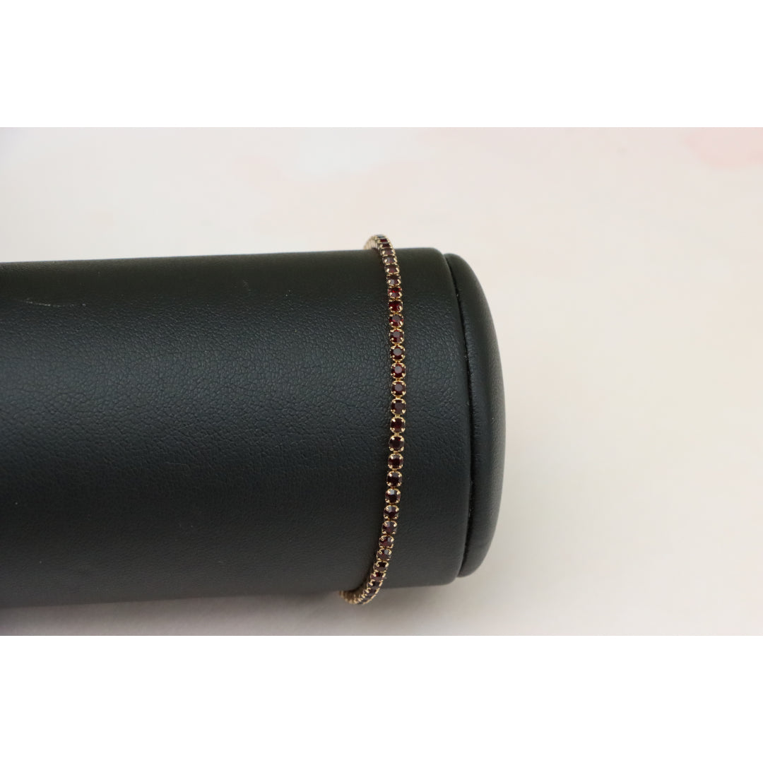 Sleek tennis bracelet featuring deep garnet-colored stones in a classic rose gold setting for a refined, minimalist touch.