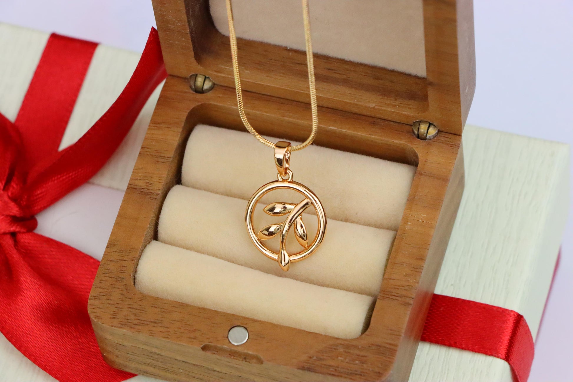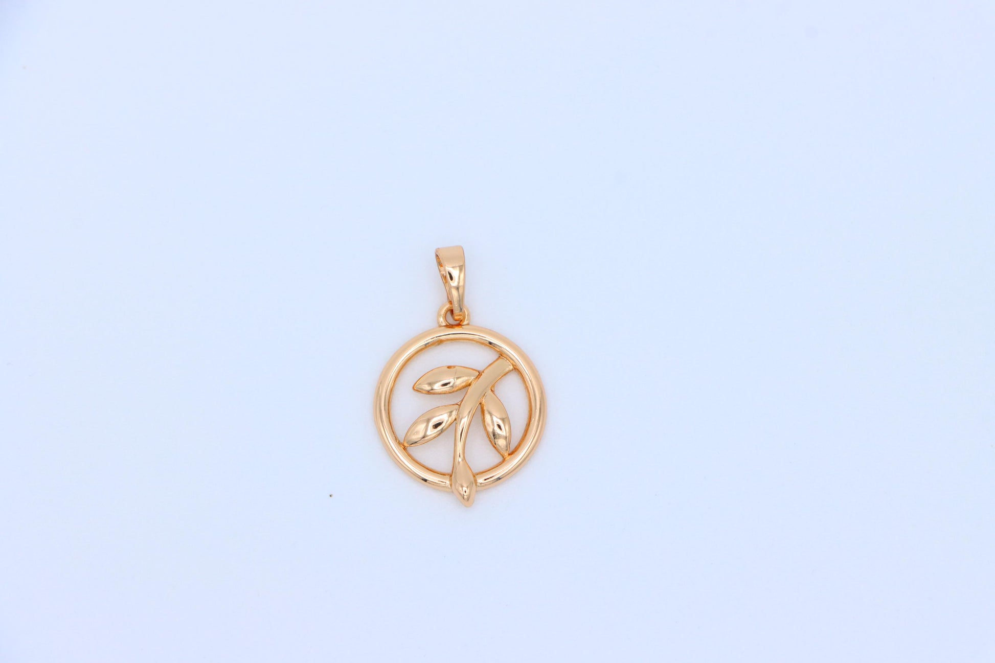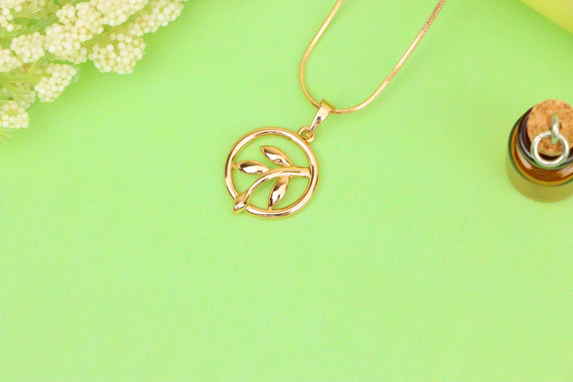 An elegant round pendant featuring a leaf motif, beautifully crafted in rose gold plating, perfect for daily or occasion wear.