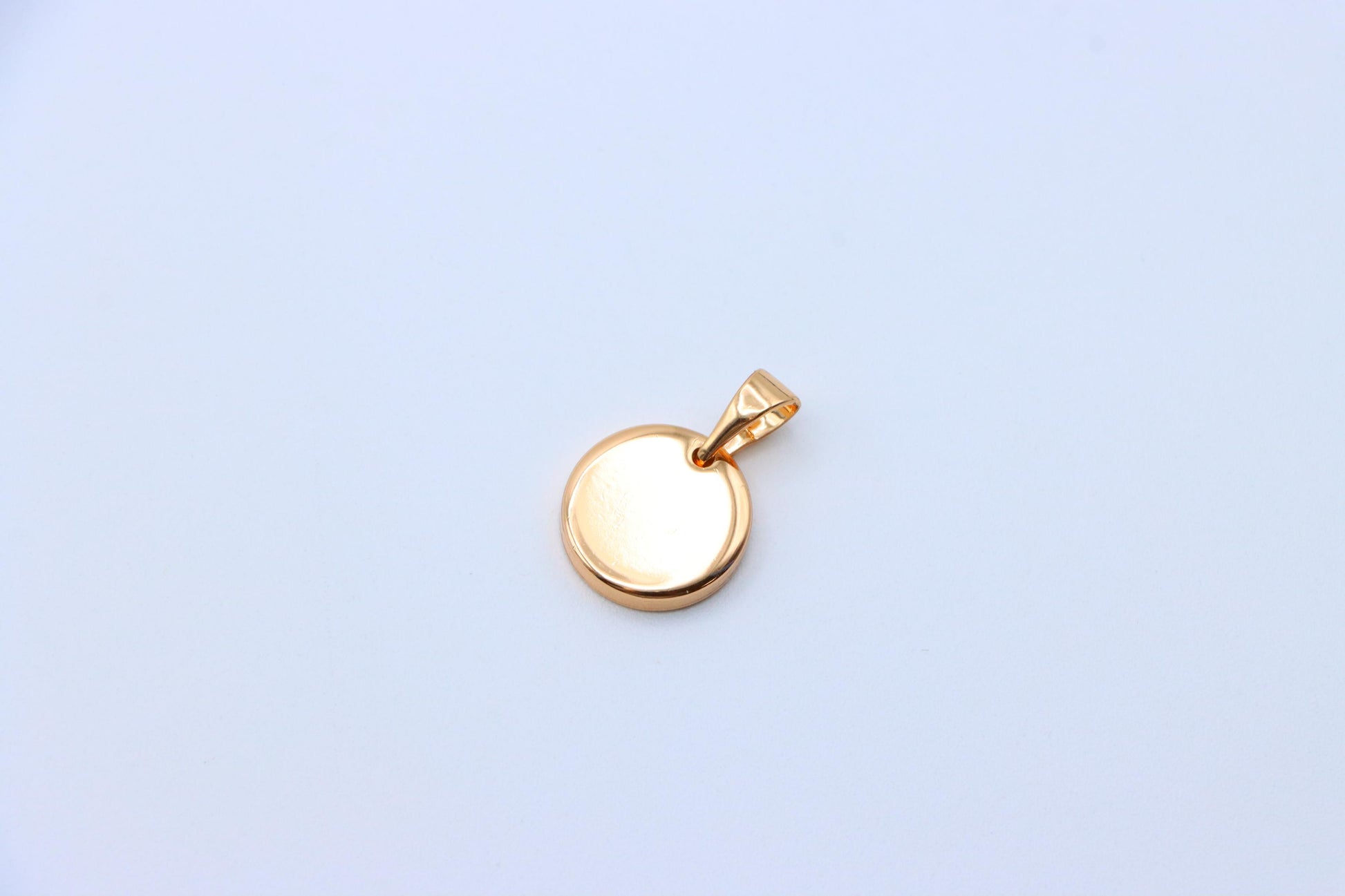 A sleek and simple round pendant with a modern polished finish, perfect for daily wear or personalized engraving.
