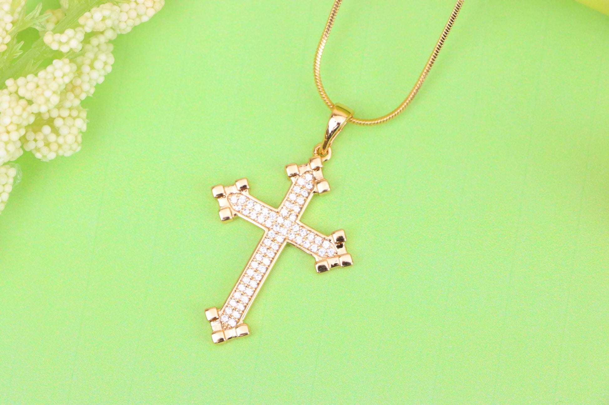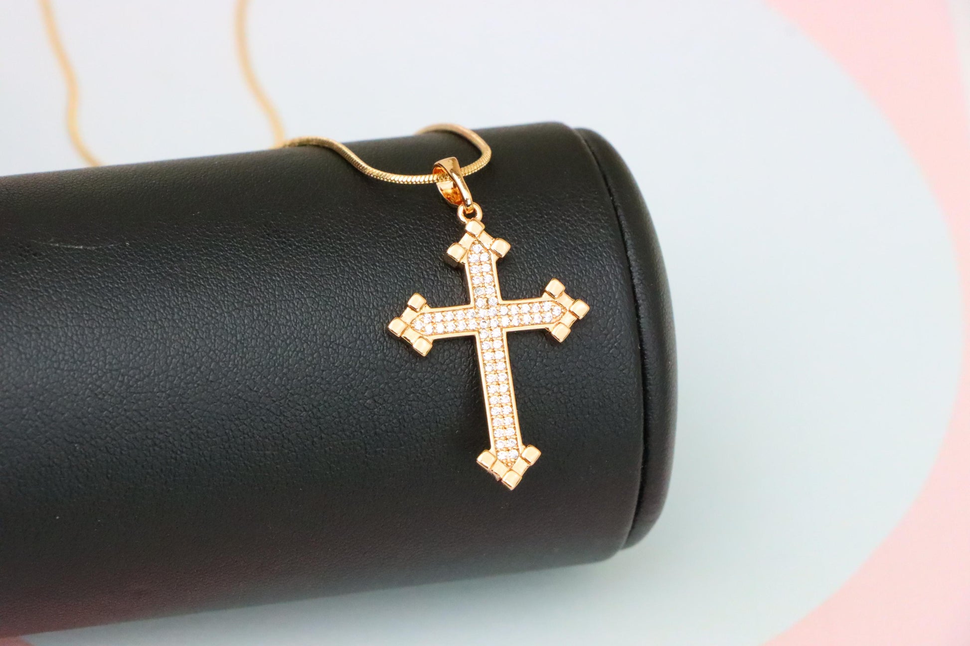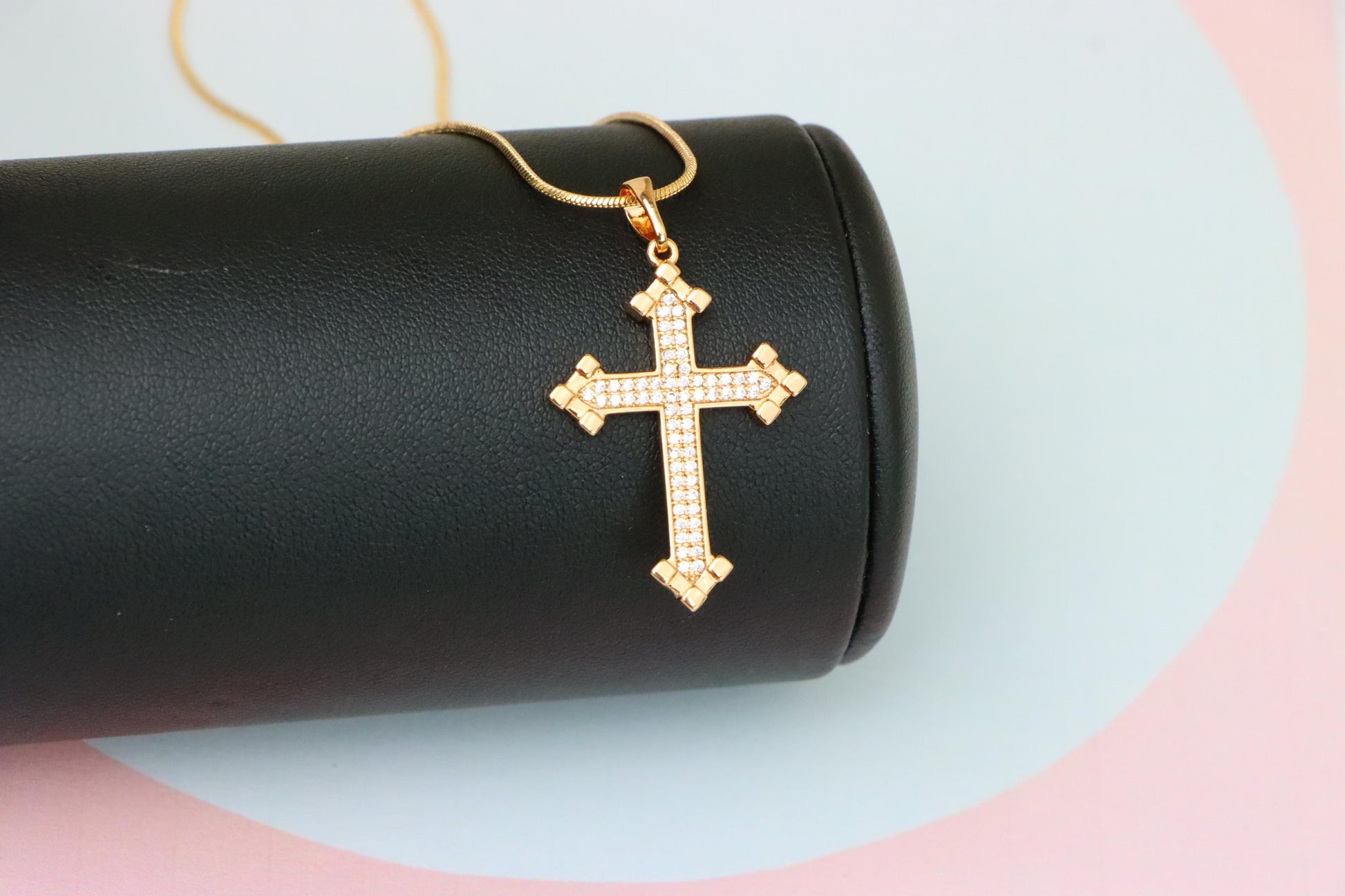 ✔️ Eye-catching cross with detailed end motifs and CZ accents