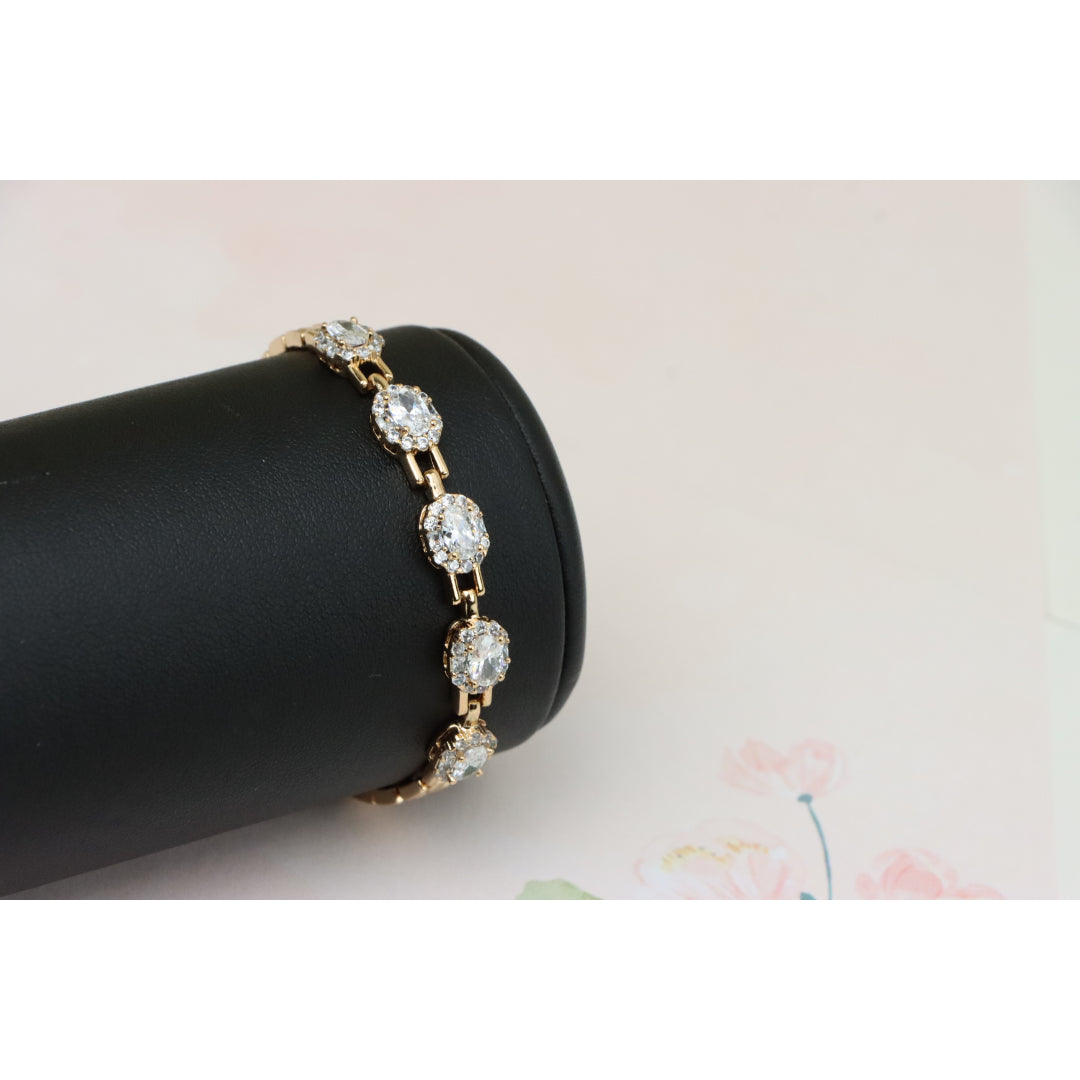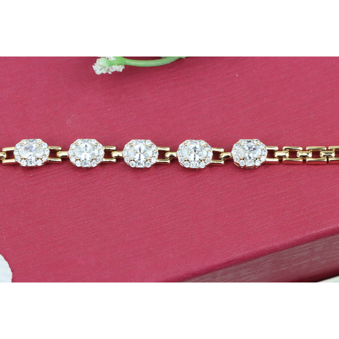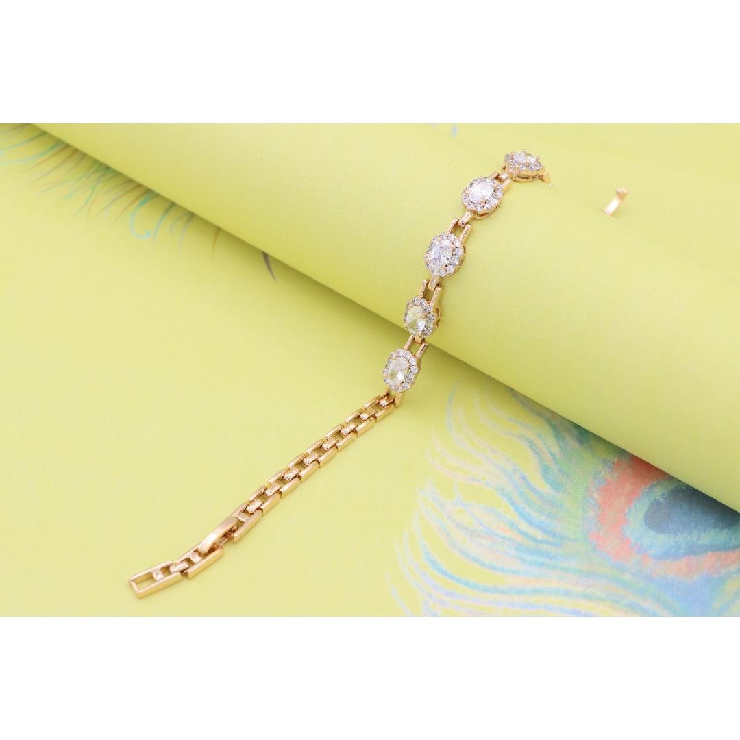 Oval Cut Sparkling Stone Rose Gold Bracelet with Chain Design, XPBL0826 (2083-5)
