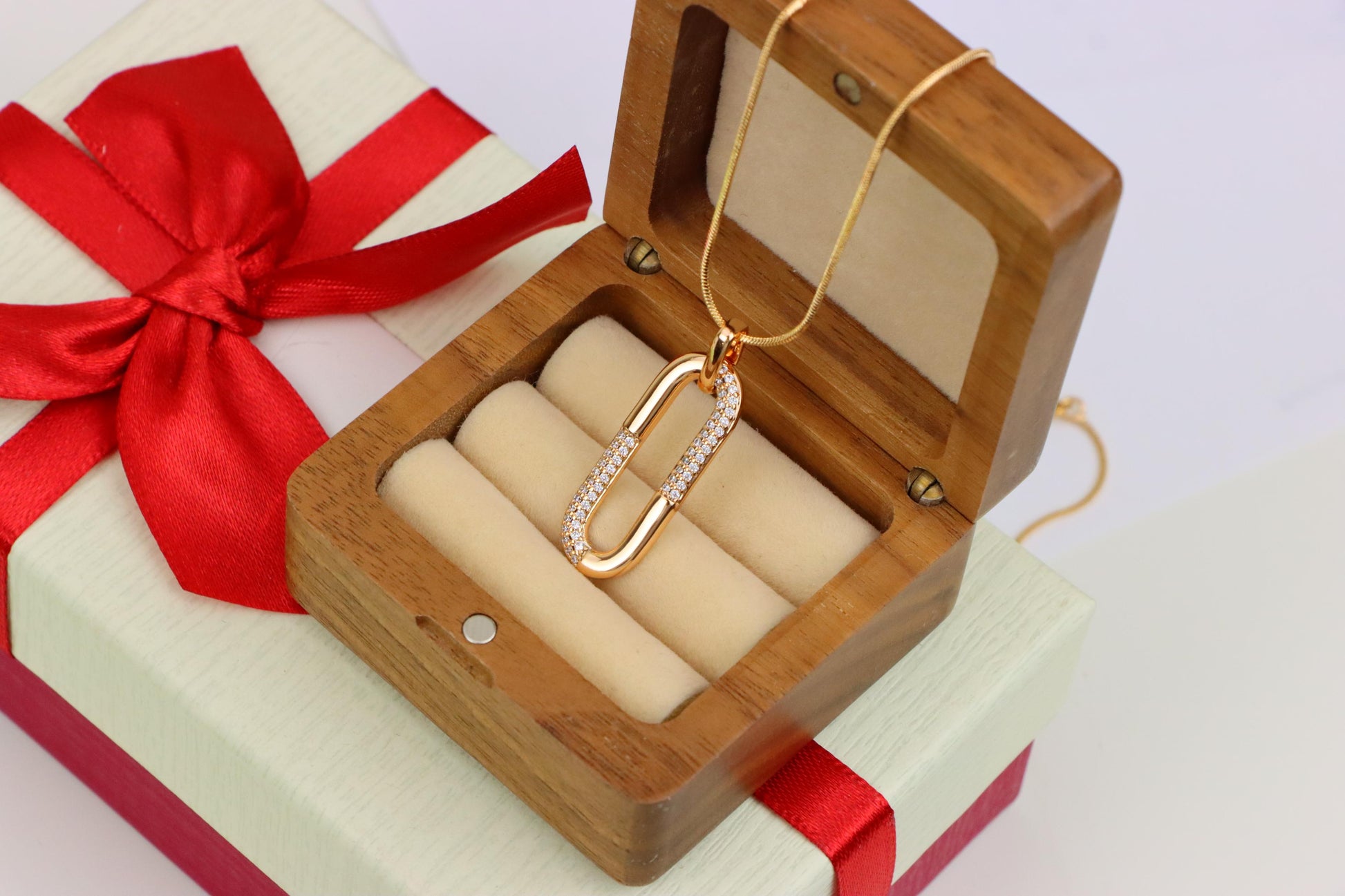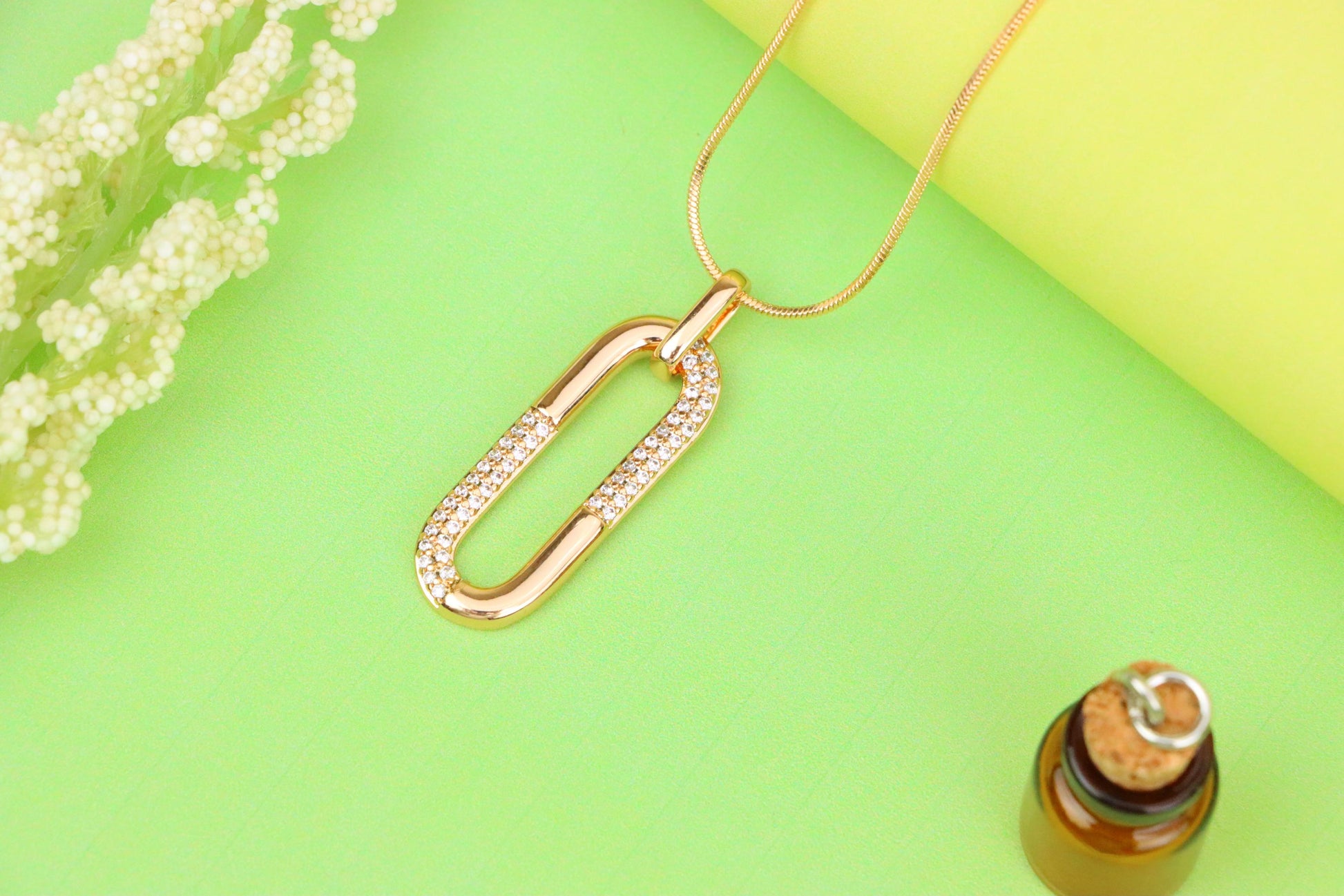 ✔️ Stylish oval paperclip-inspired design with partial stone detailing