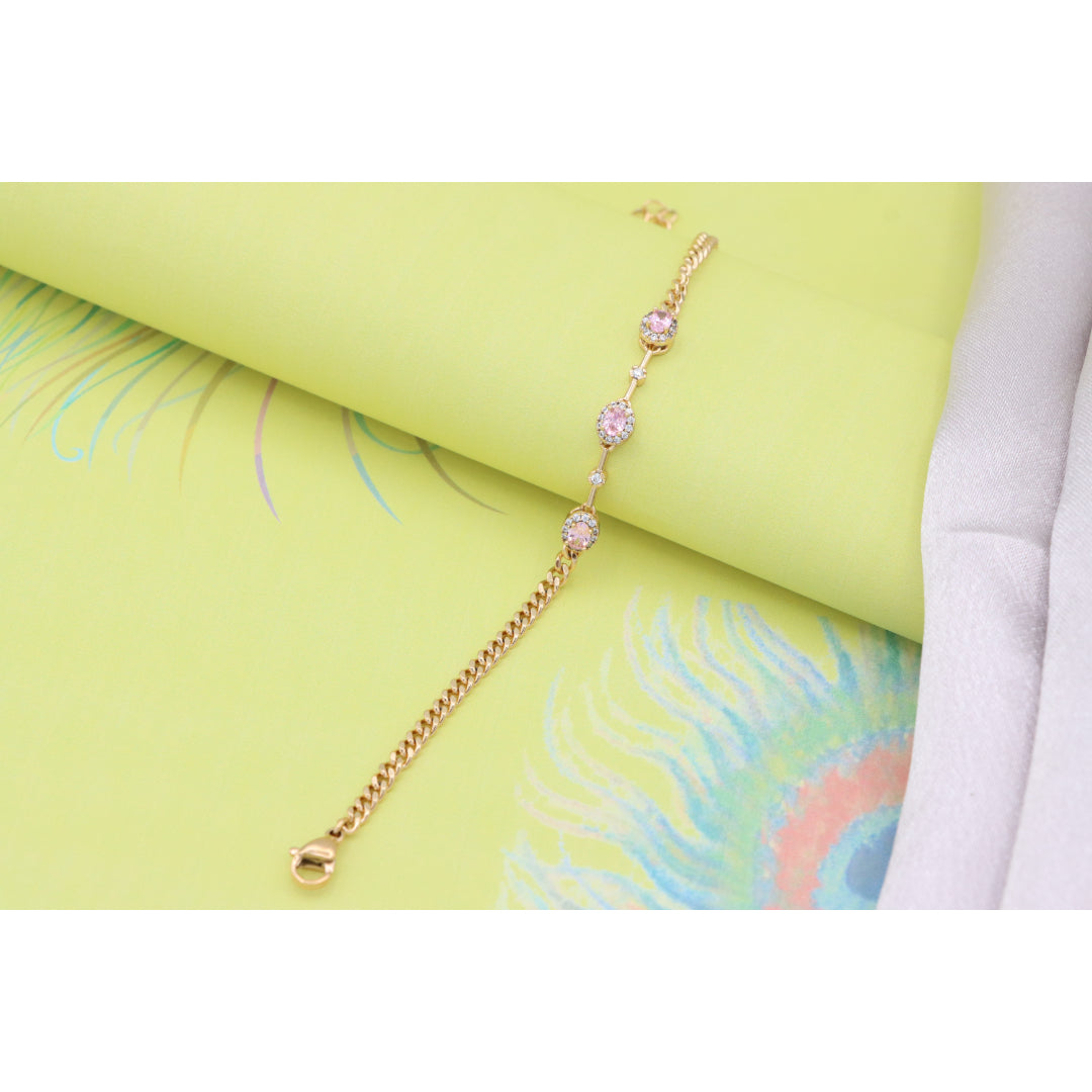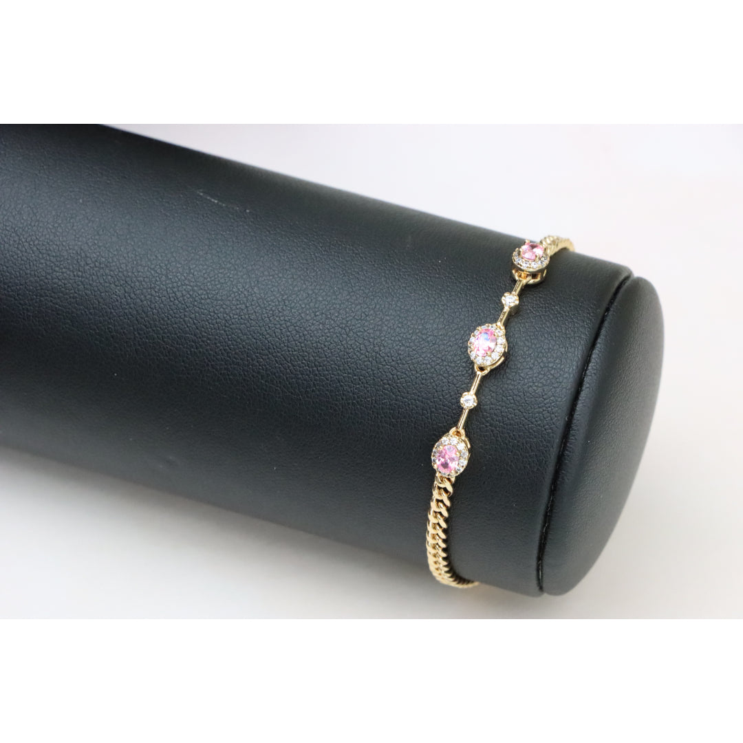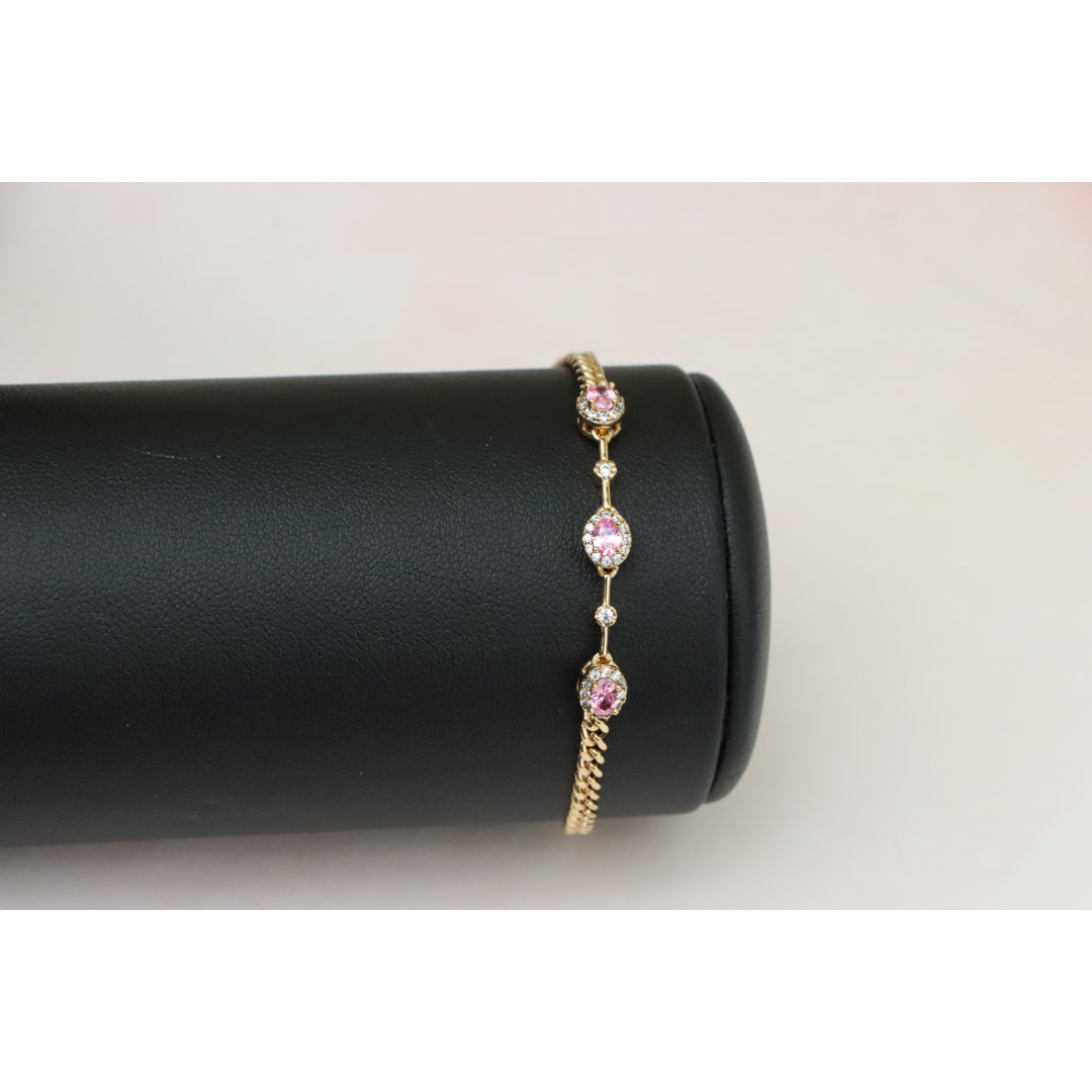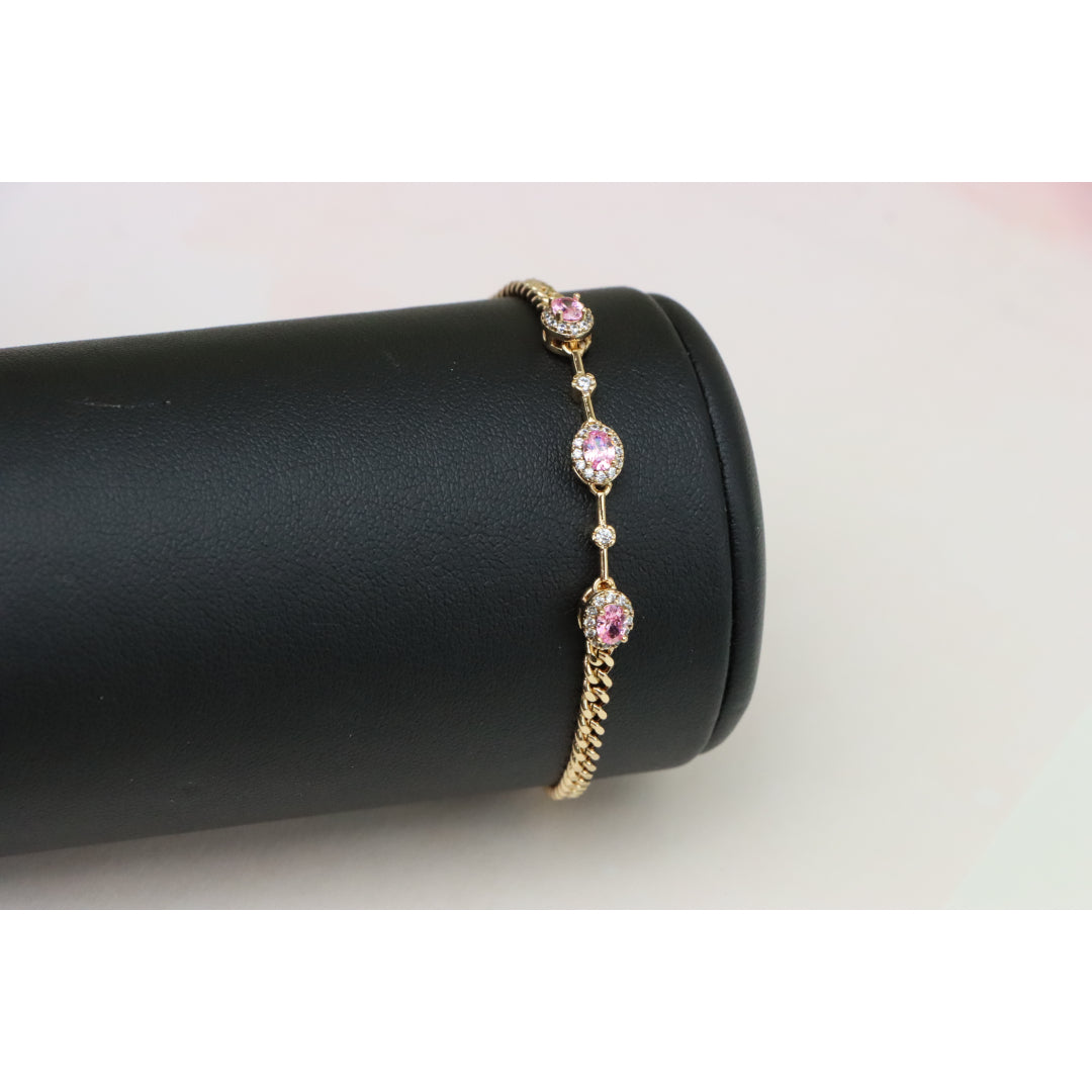 Elegant bracelet featuring sparkling pink oval stones framed with crystals, set in a delicate rose gold finish.