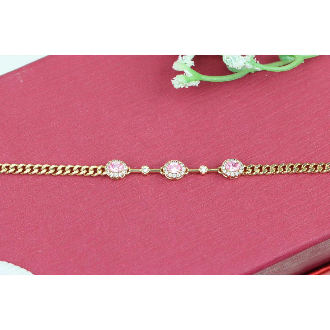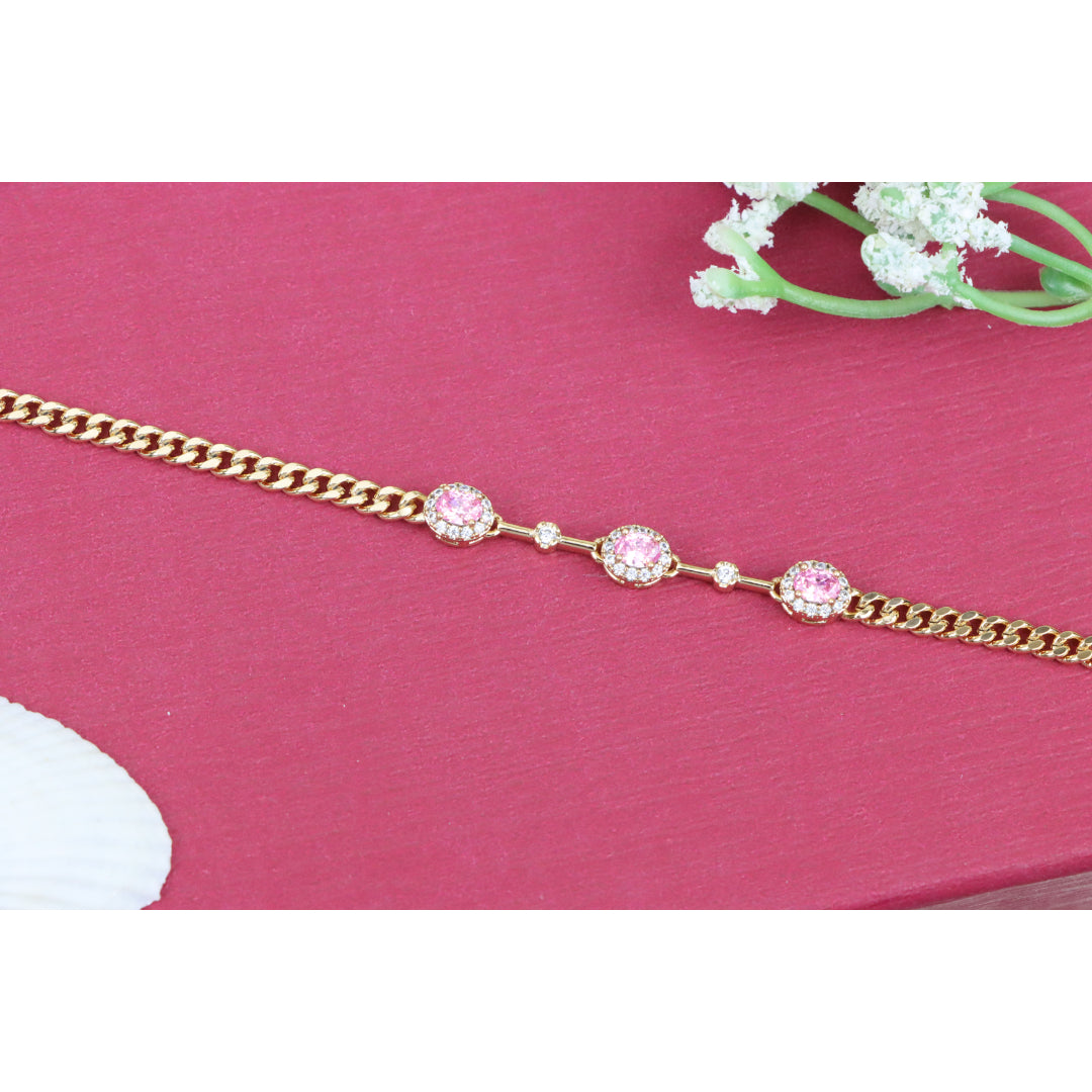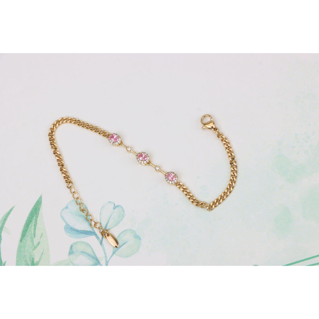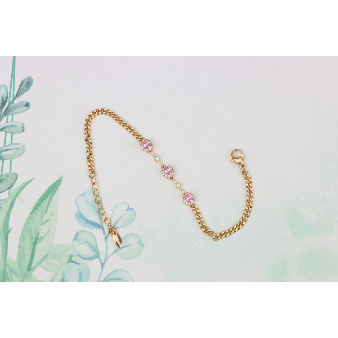 Elegant bracelet featuring sparkling pink oval stones framed with crystals, set in a delicate rose gold finish.