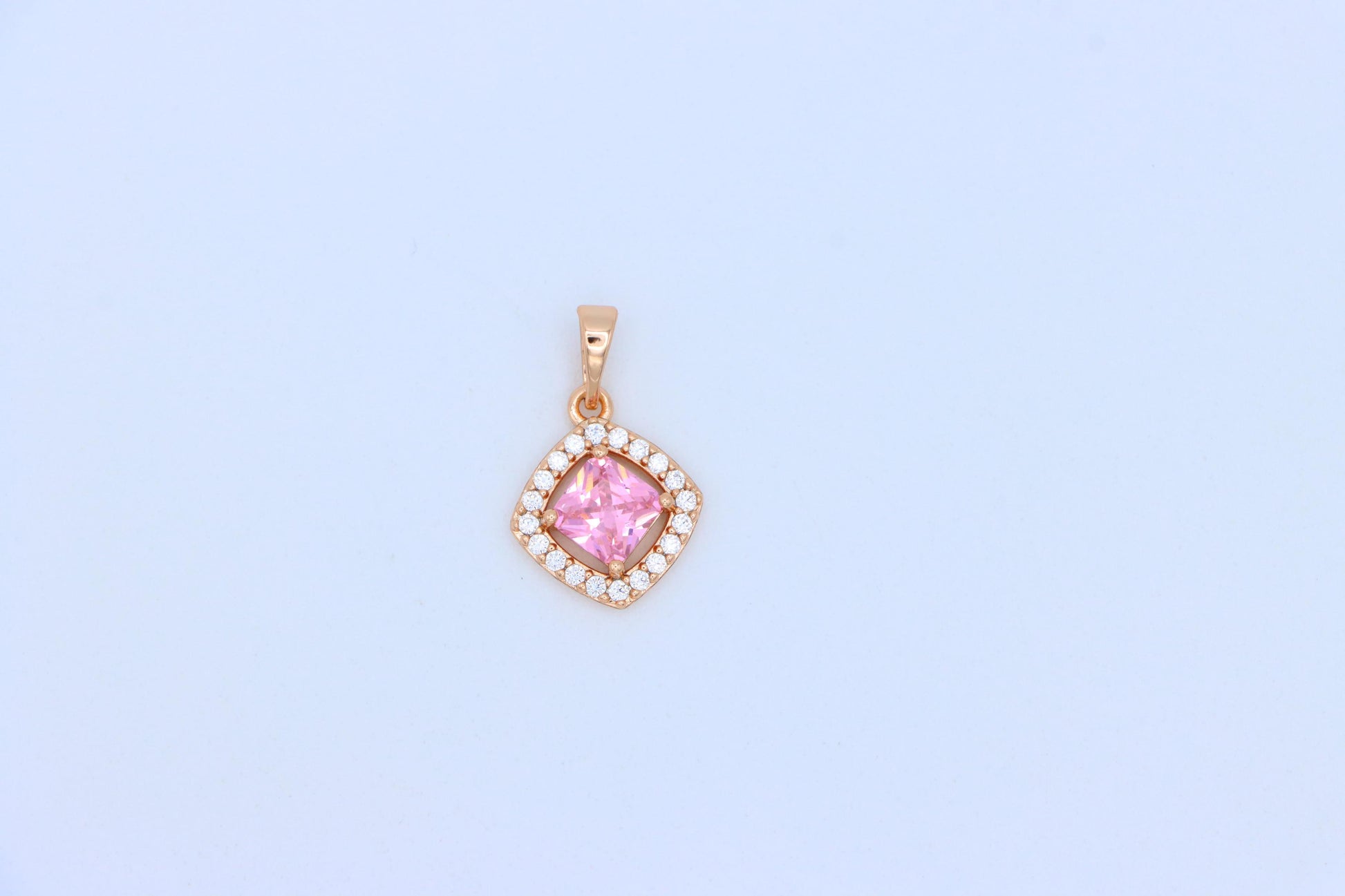 Pink Princess-Cut Pendant in Gold Plated Brass with Sparkling Halo, XPPT1789 (2153-1)