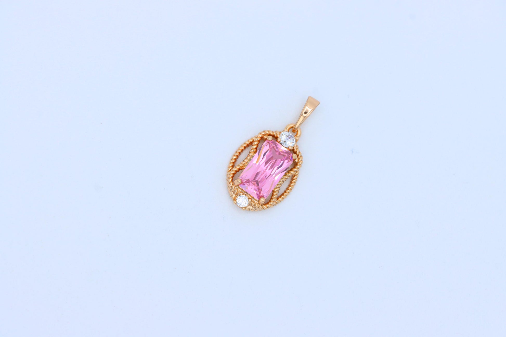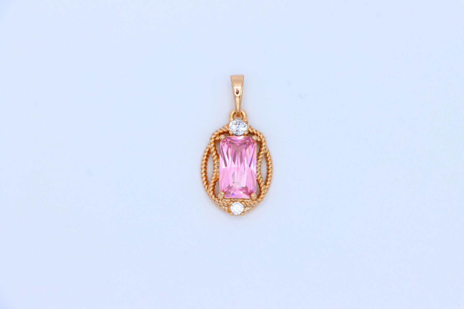 Pink Rectangle Pendant with Gold Plated Brass and Crystal Accents, XPPT1681 (2164-3)
