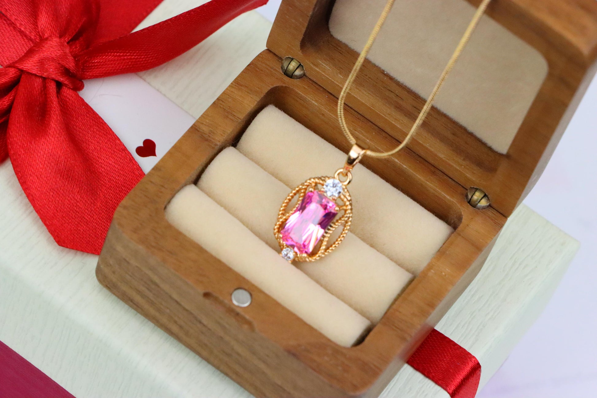 ✅ Eye-catching rectangular pink gemstone centerpiece