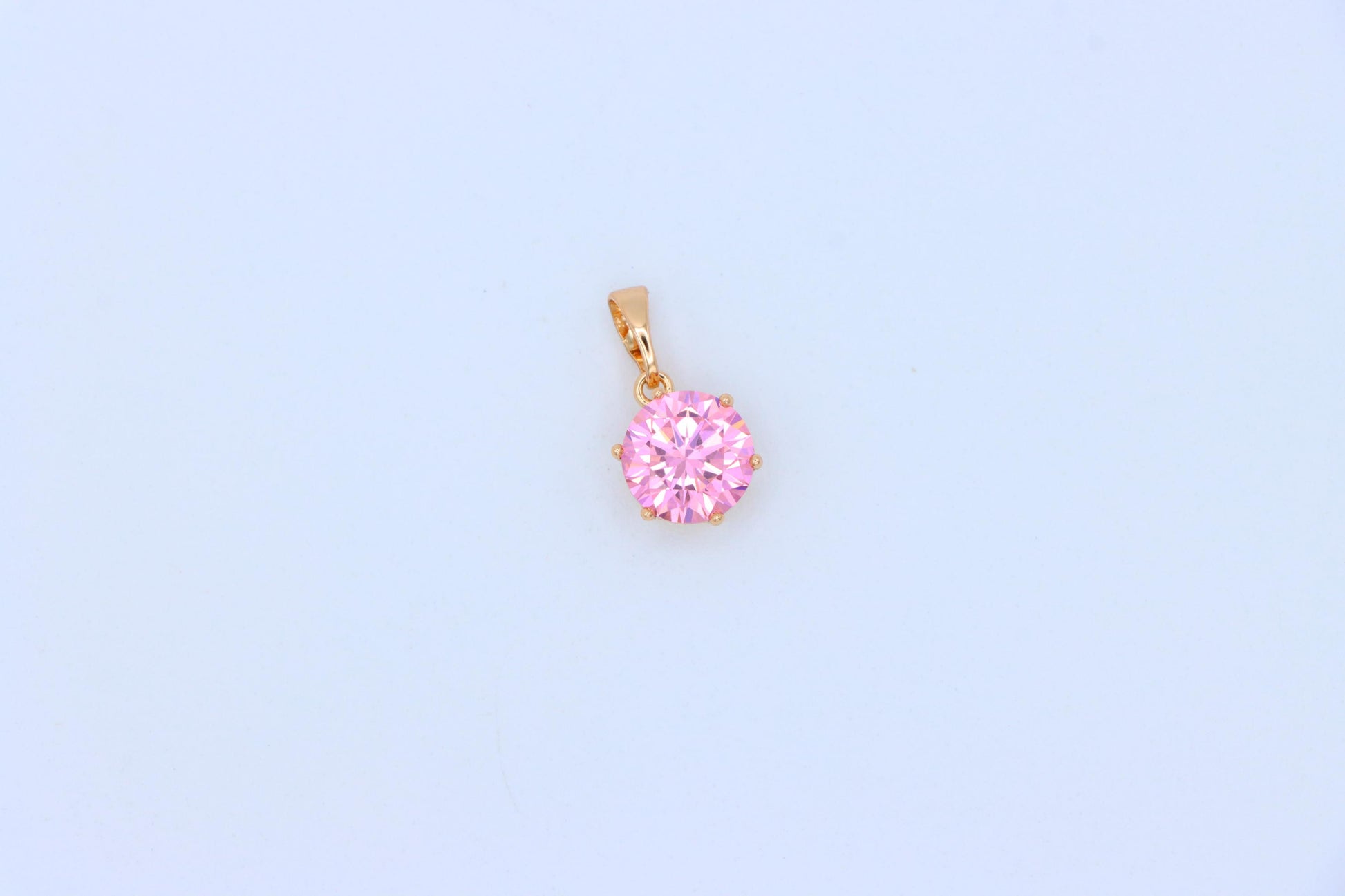 Glamorous pink pendant with a brilliant round-cut stone in a rose gold prong setting—perfect for feminine flair and elegant styling.
