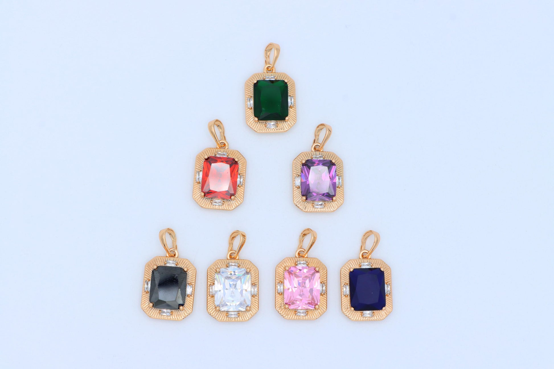 Pink Sparkling Pendant with Gold Frame and Baguette Accents, XPPT1788