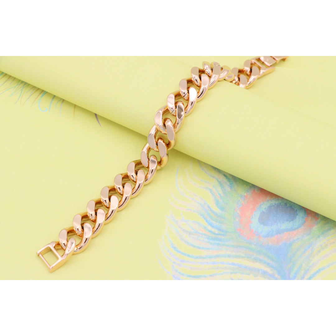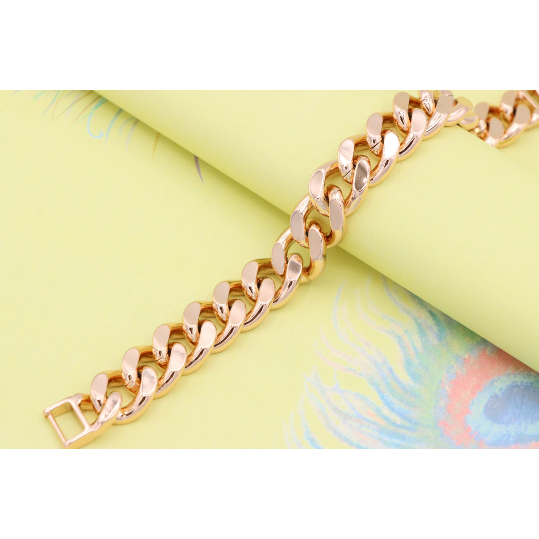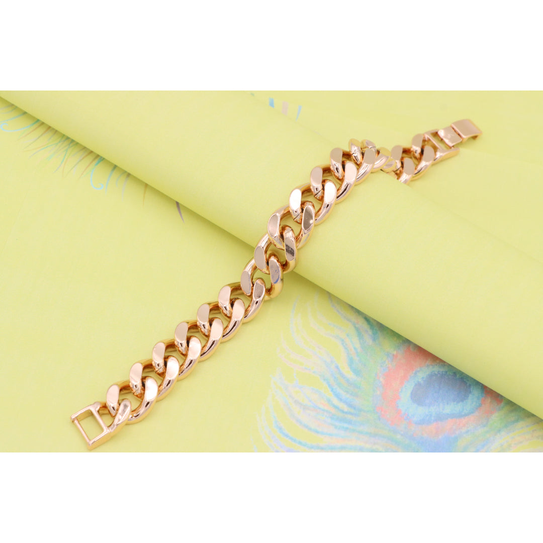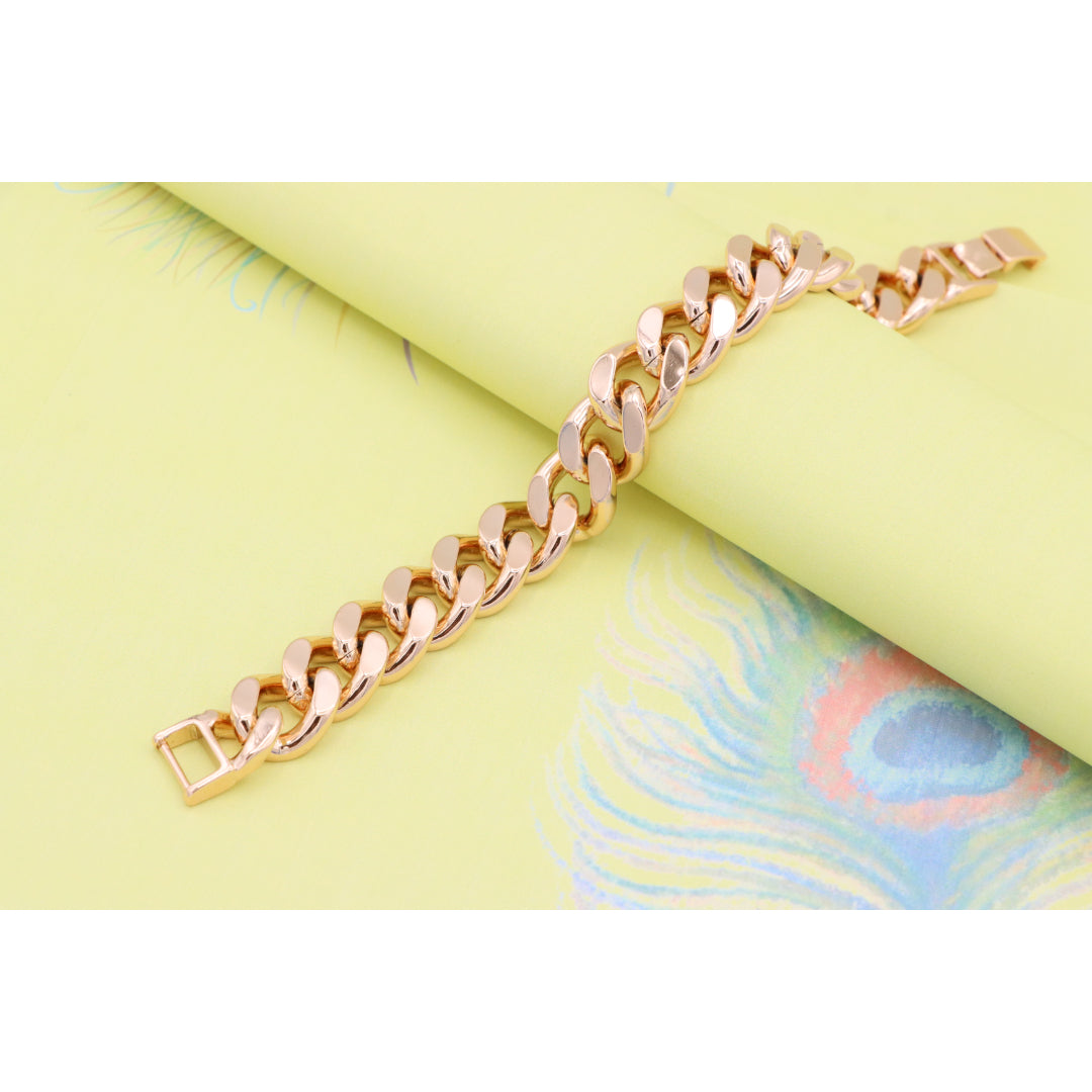 Crafted from gold-plated high-quality brass, this bold rose gold bracelet makes a striking style statement with its chunky chain design.