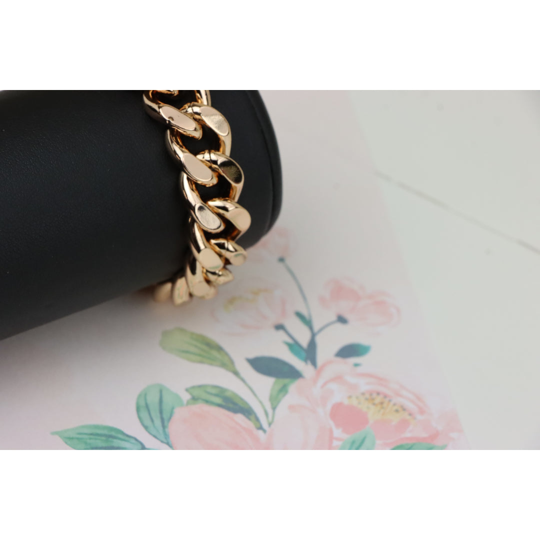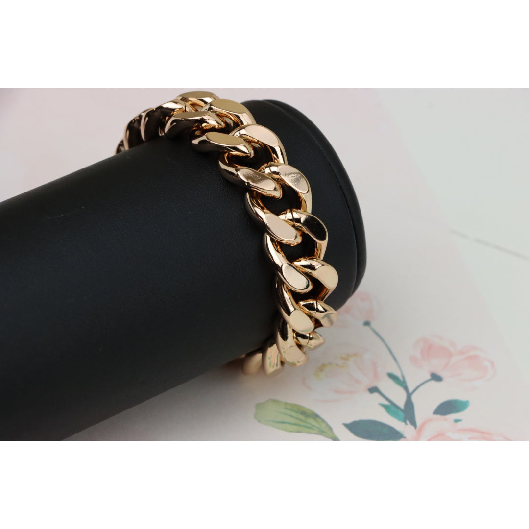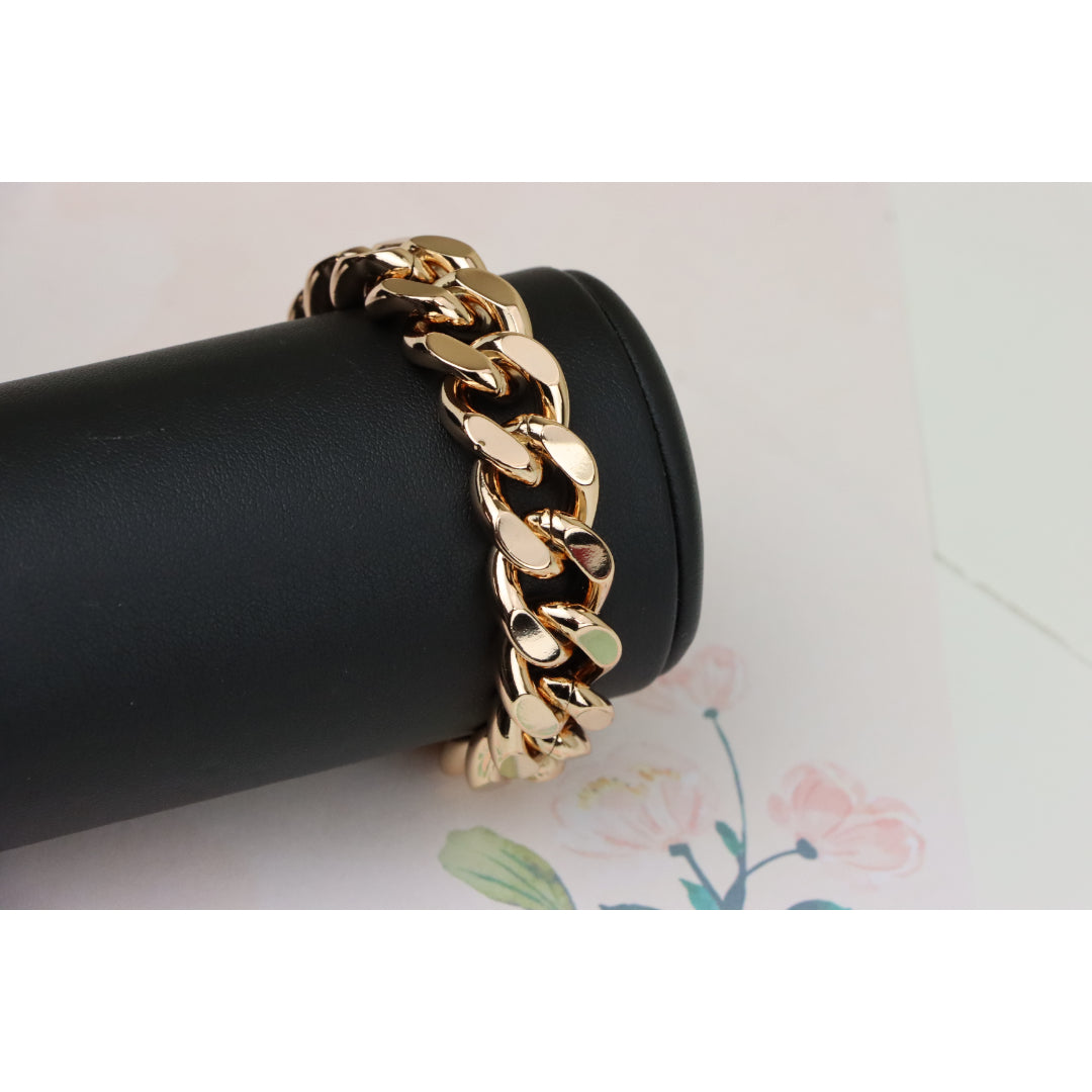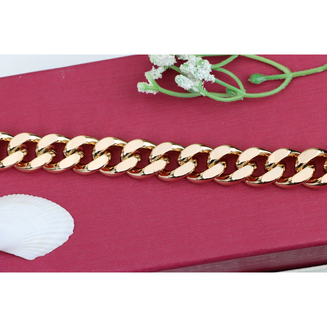 Crafted from gold-plated high-quality brass, this bold rose gold bracelet makes a striking style statement with its chunky chain design.