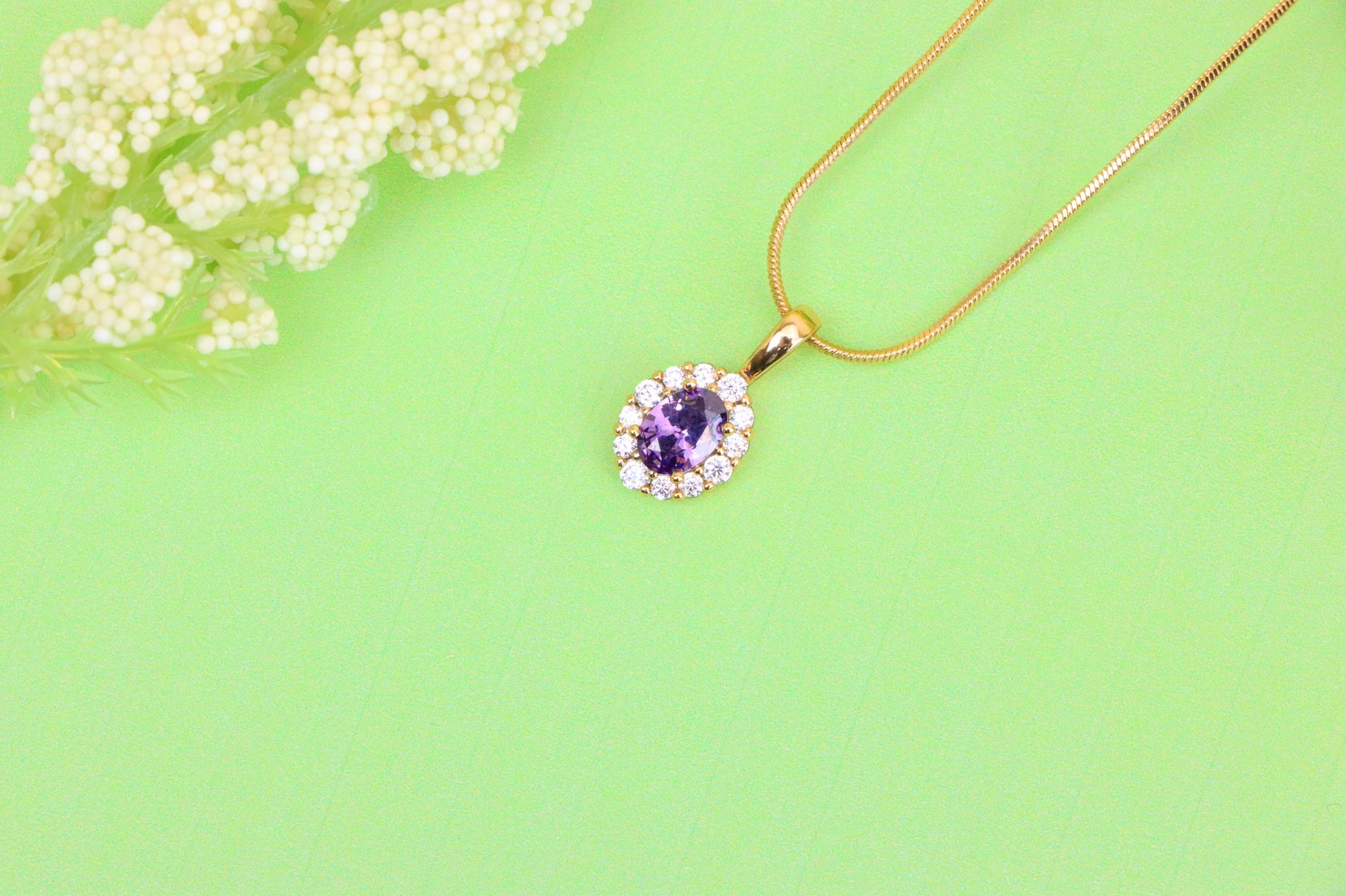 Purple Oval Pendant with Halo in Gold-Plated Brass – Delicate Glamour, XPPT1816