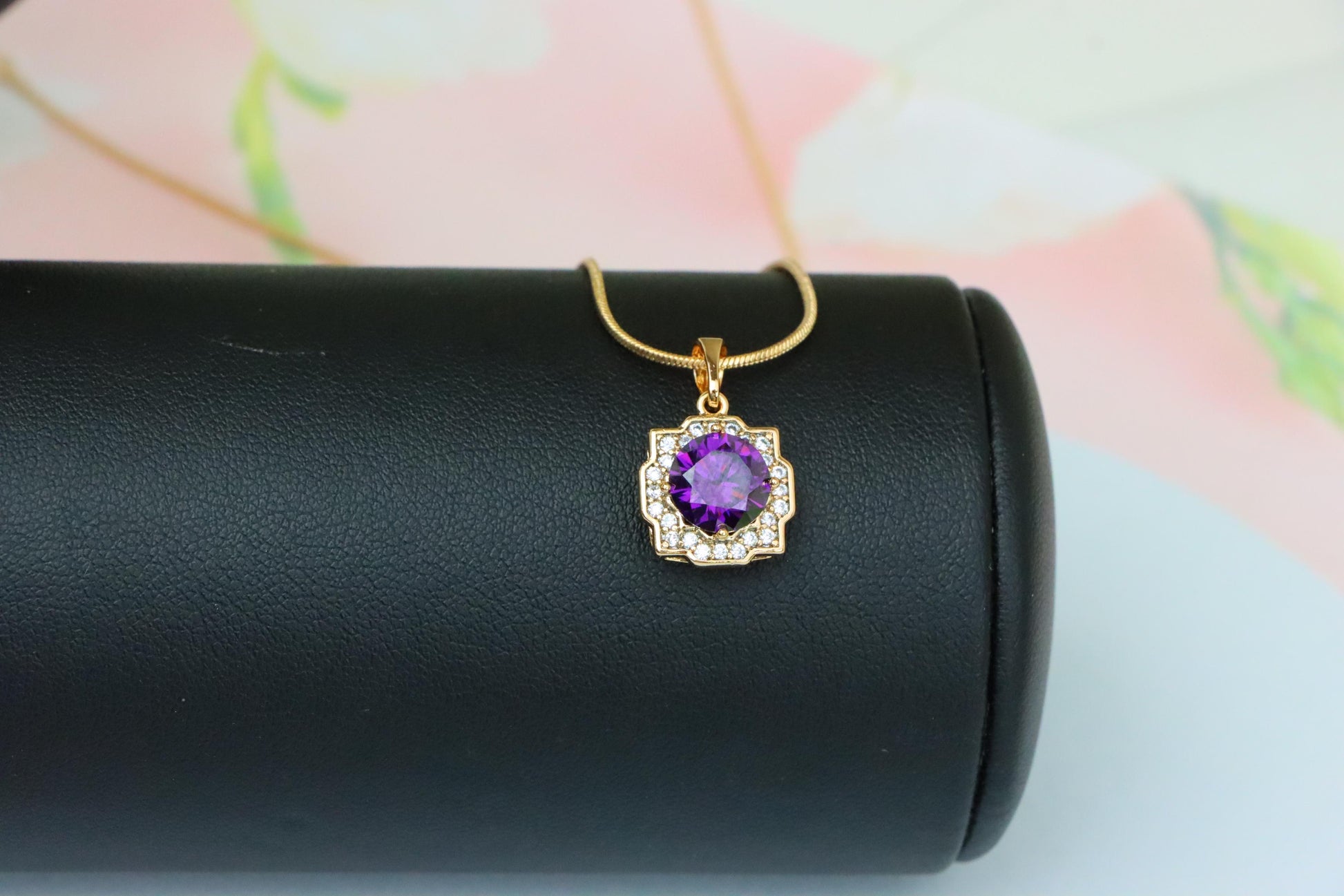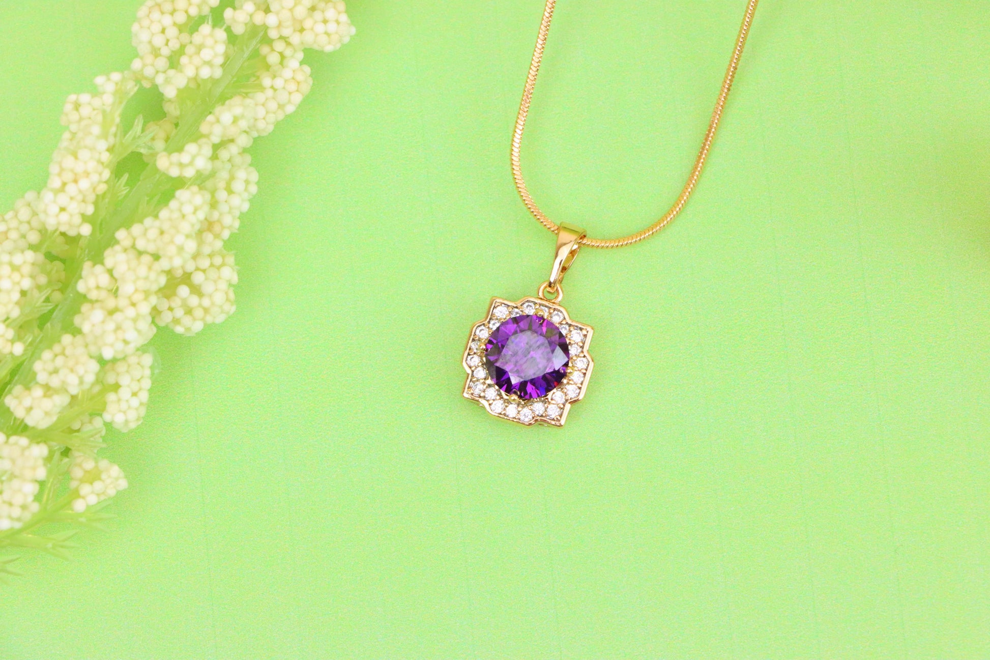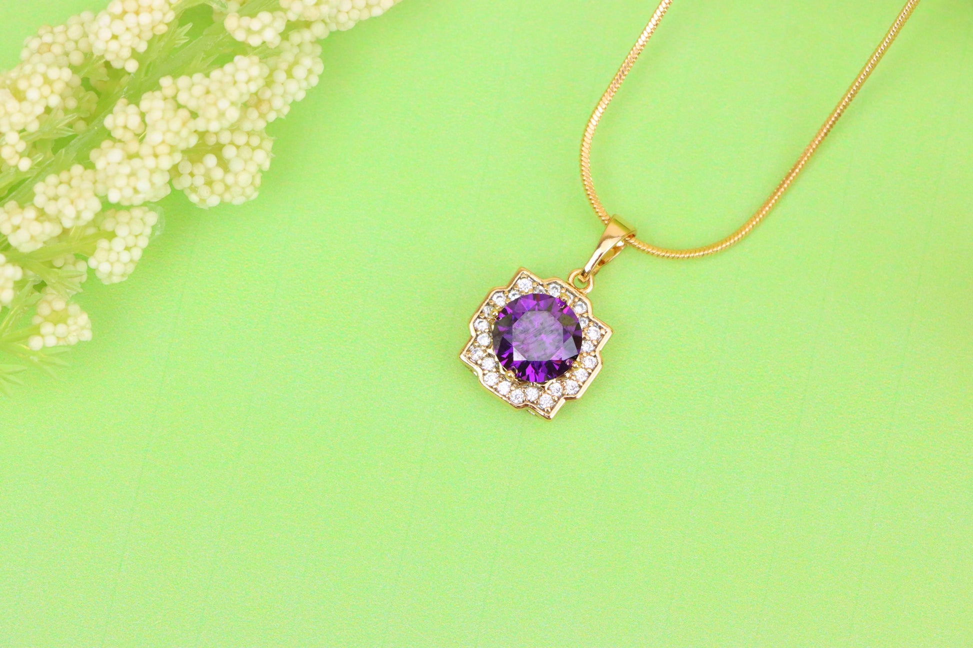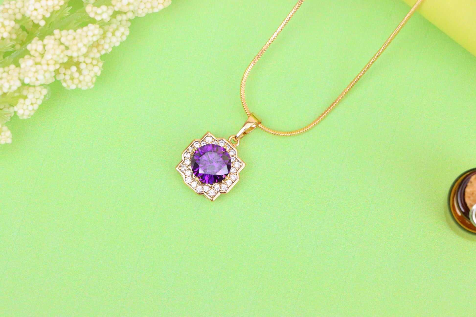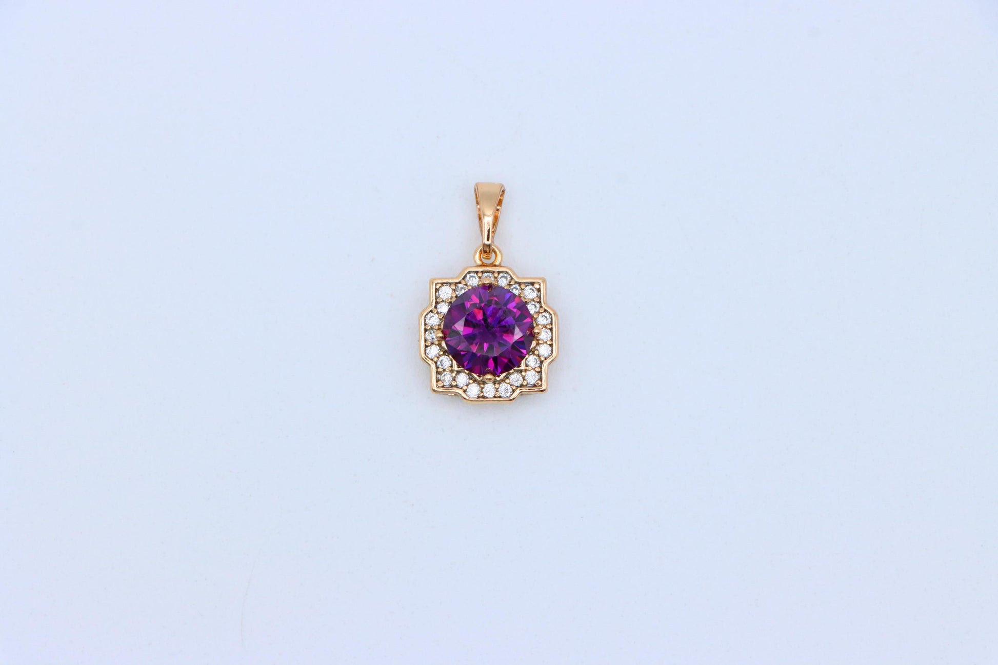 Purple Round Pendant in Rose Gold with Halo Detailing, XPPT1637