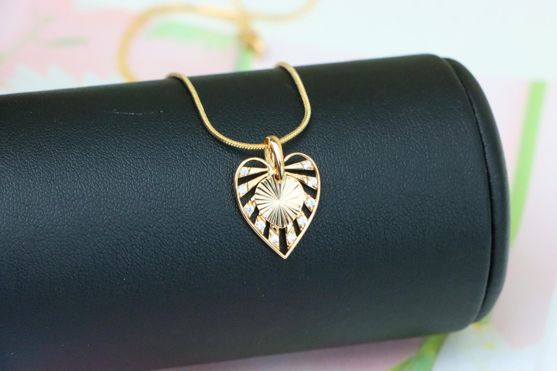 ✔️ Unique cutout heart design with shimmering stone details