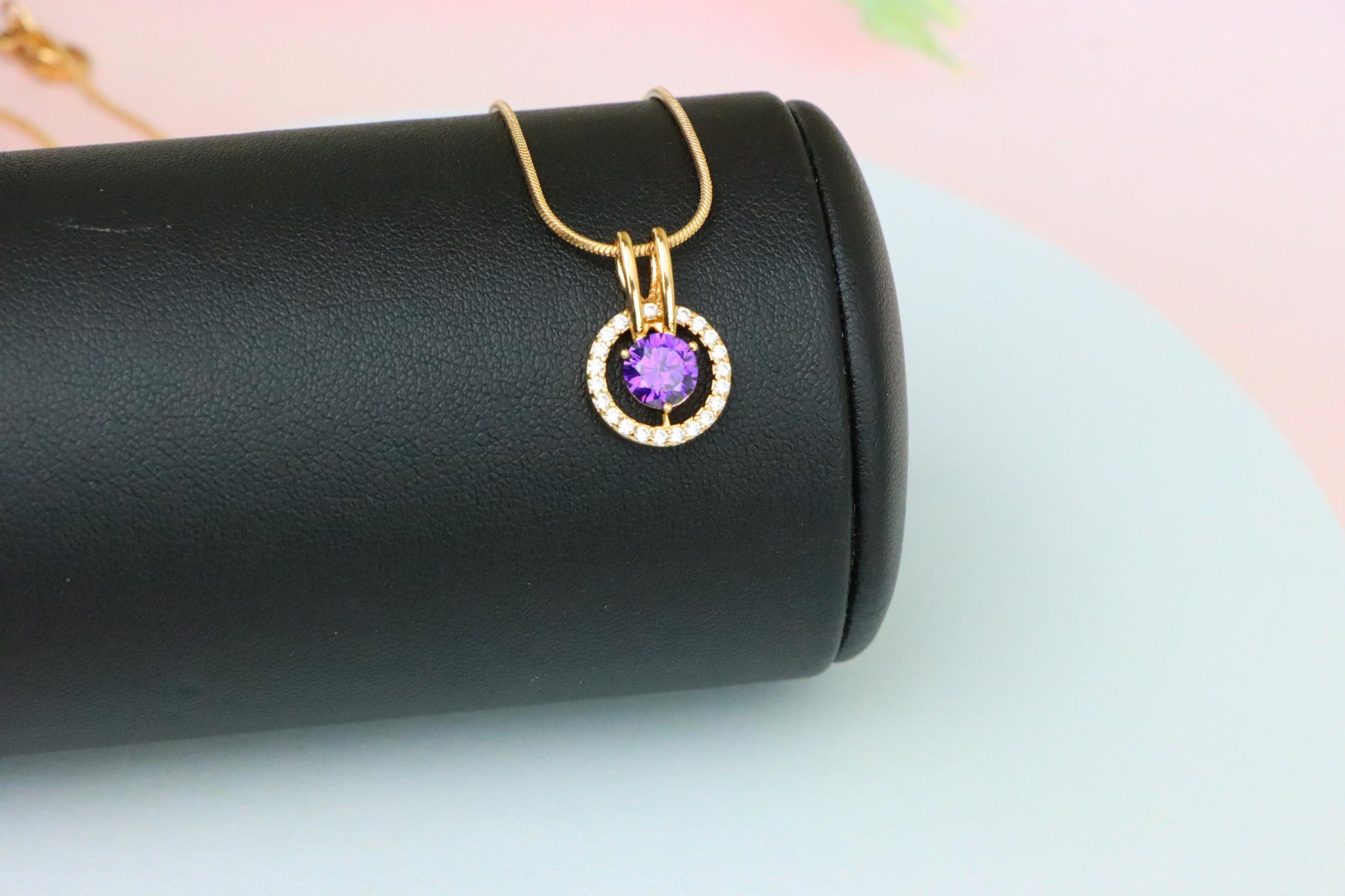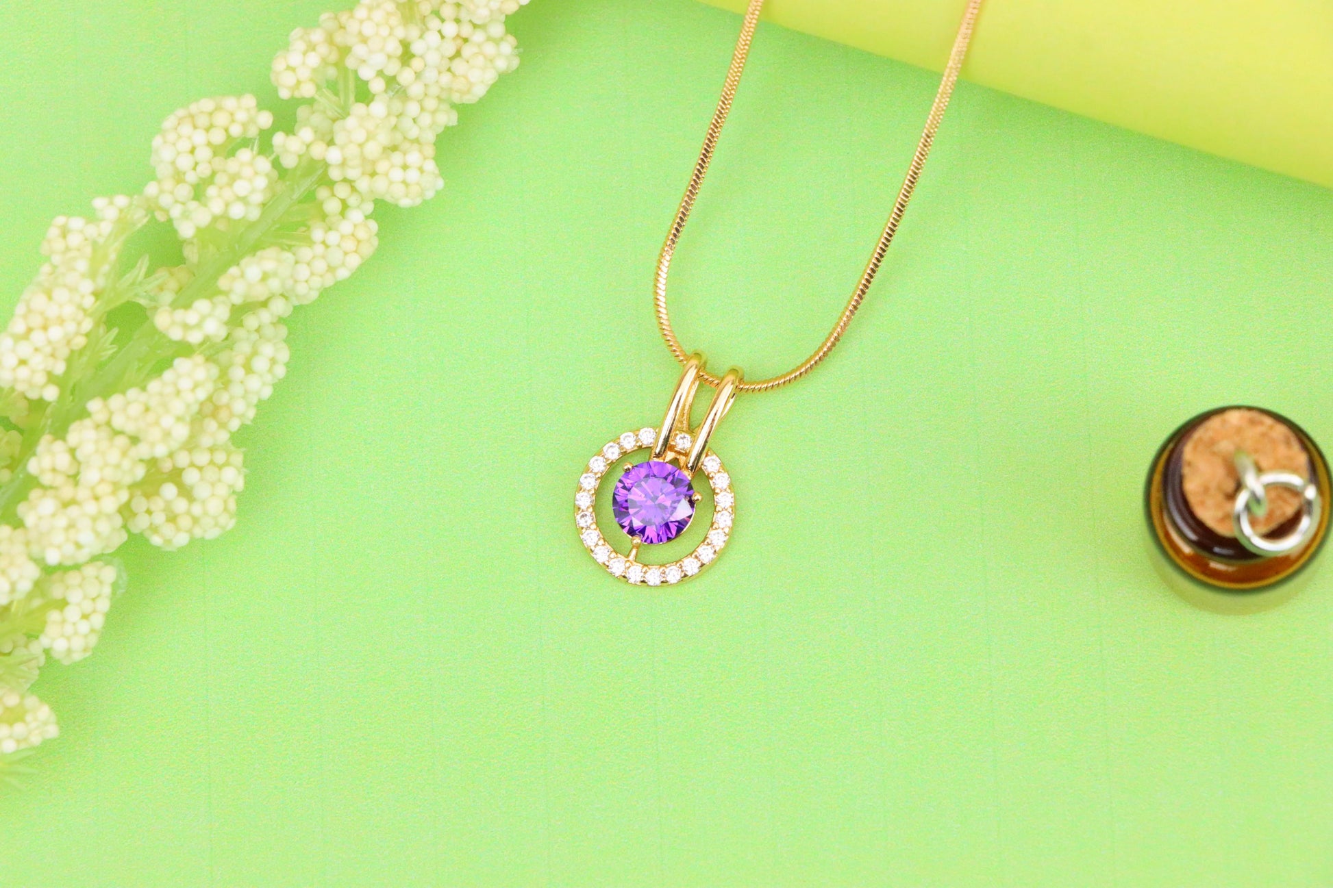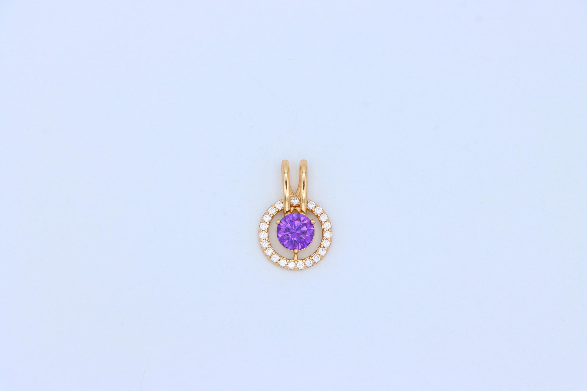 Radiant Purple Halo Pendant in Gold Plated Brass with Crystal Ring, XPPT1711