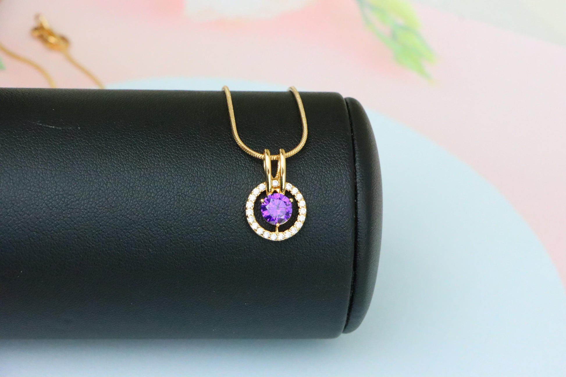 Radiant Purple Halo Pendant in Gold Plated Brass with Crystal Ring, XPPT1711 (2150-7)