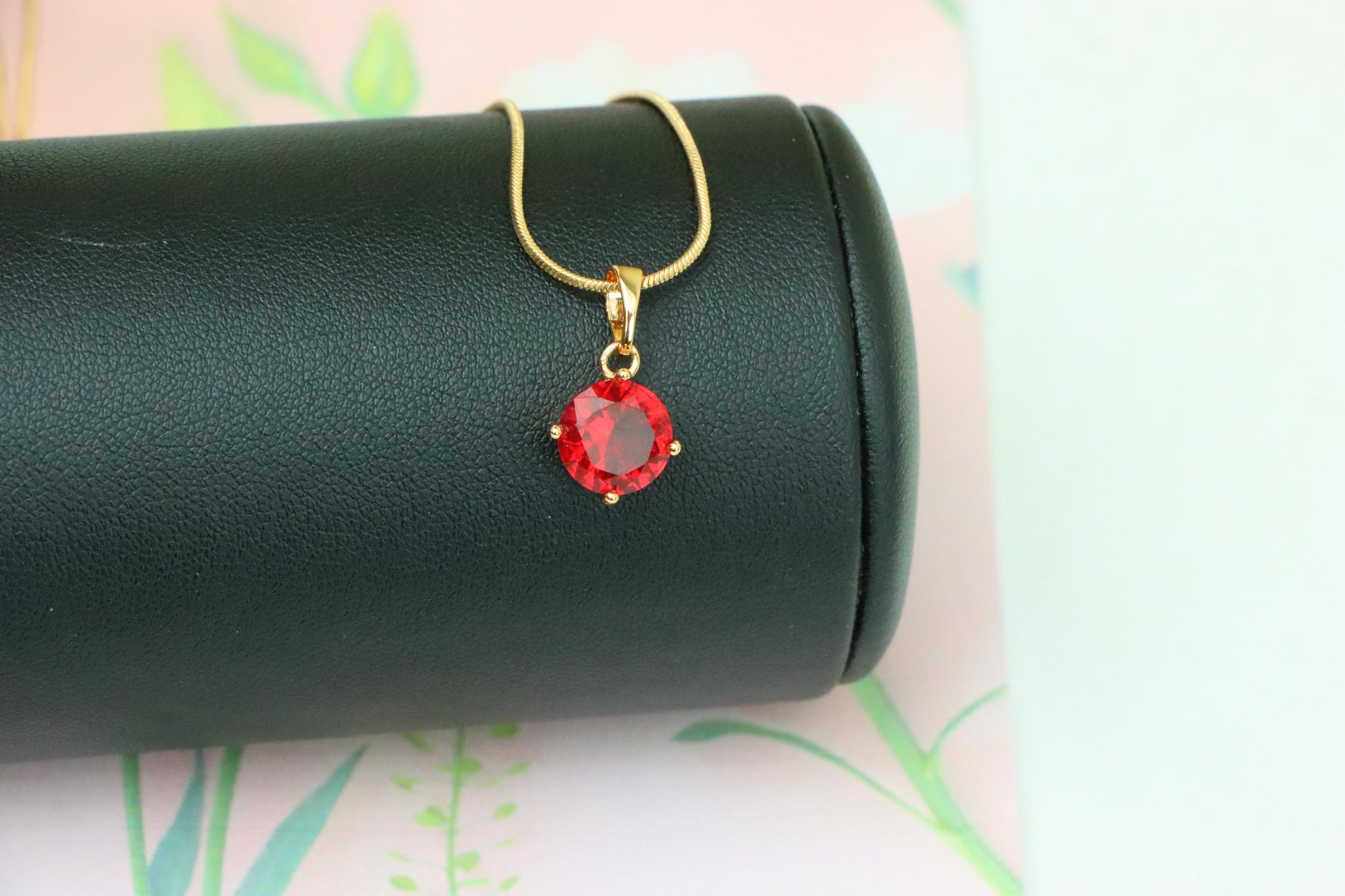 Radiant Red Round Pendant with Gold Plated Finish for Everyday Glam, XPPT1670 (2164-1)