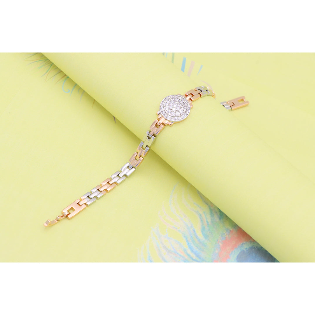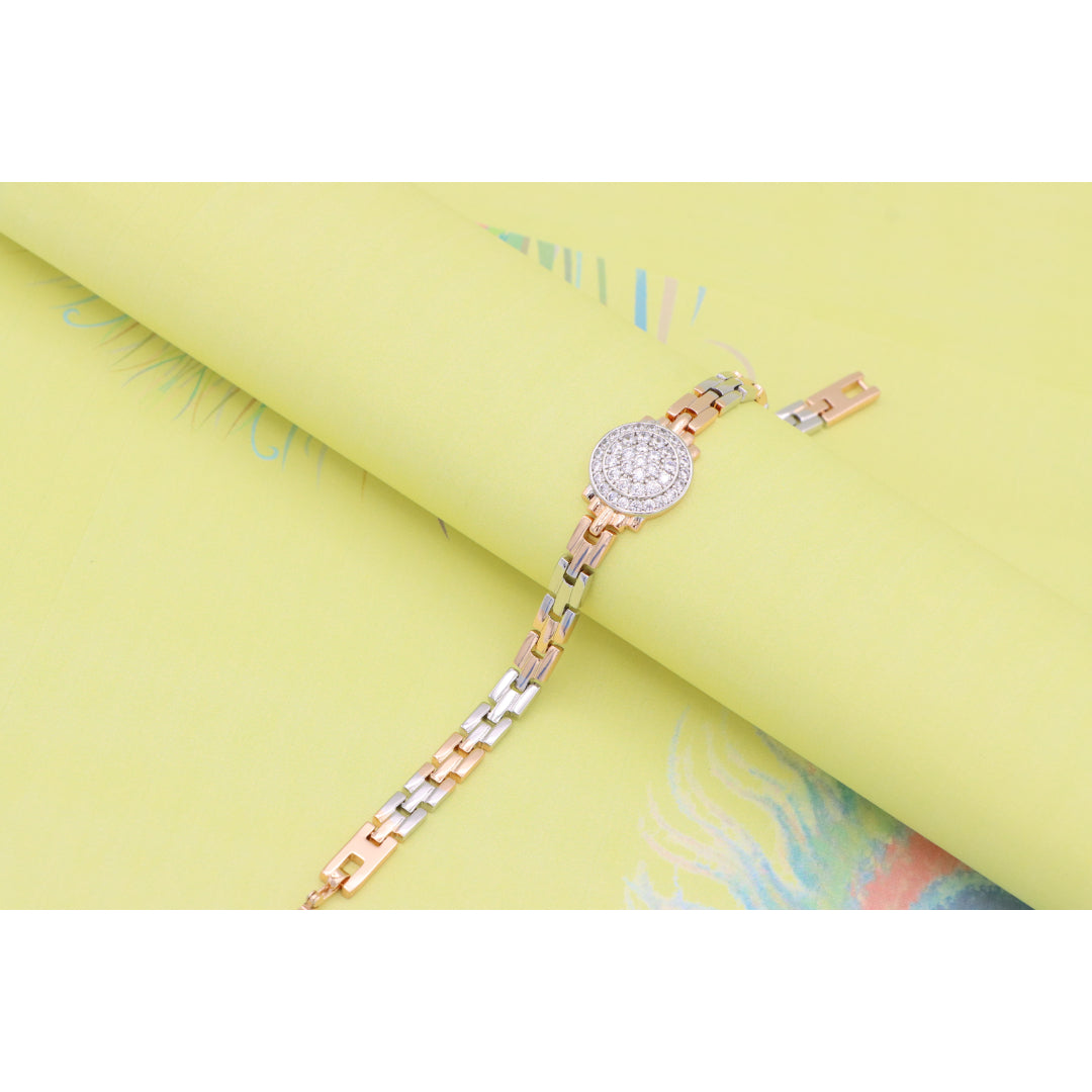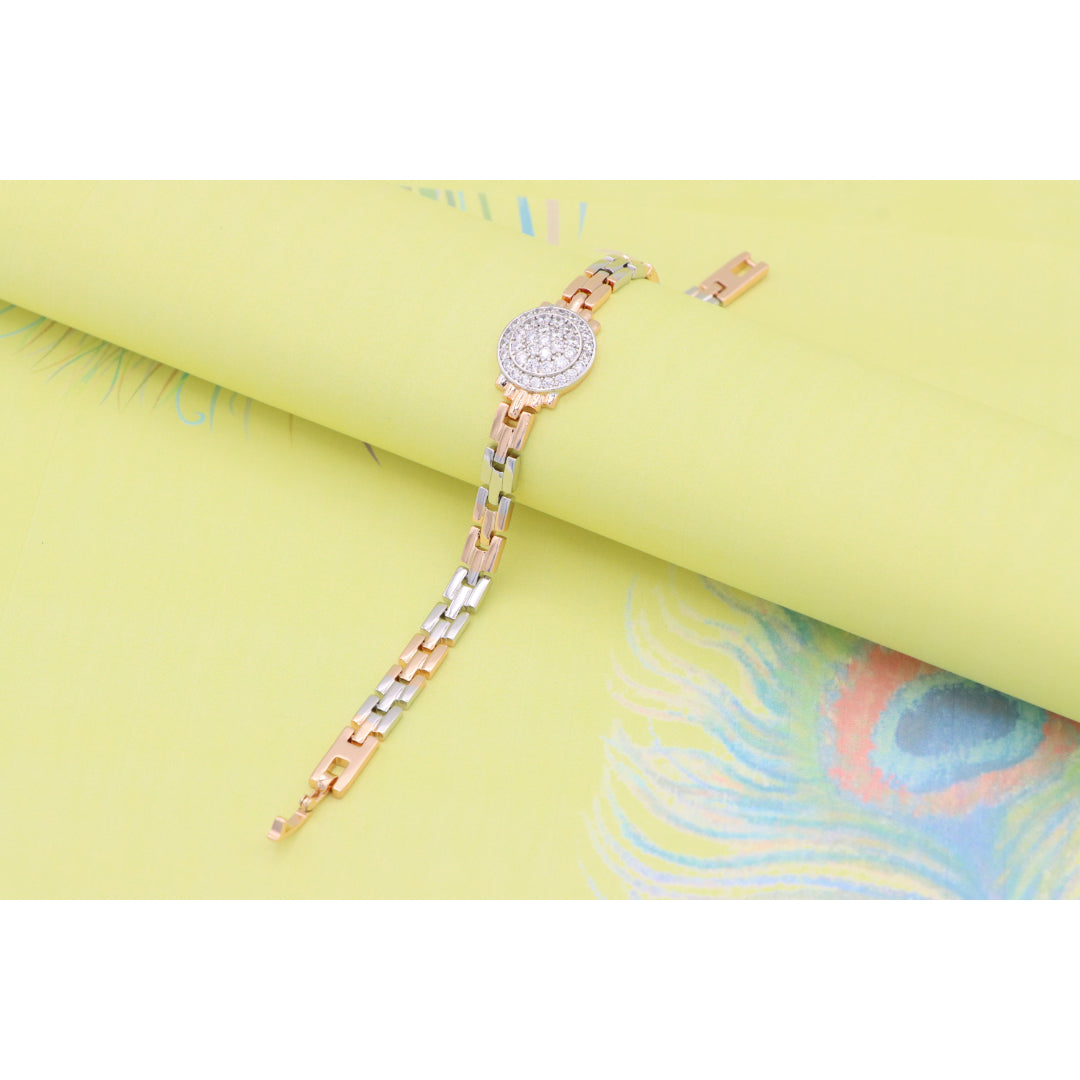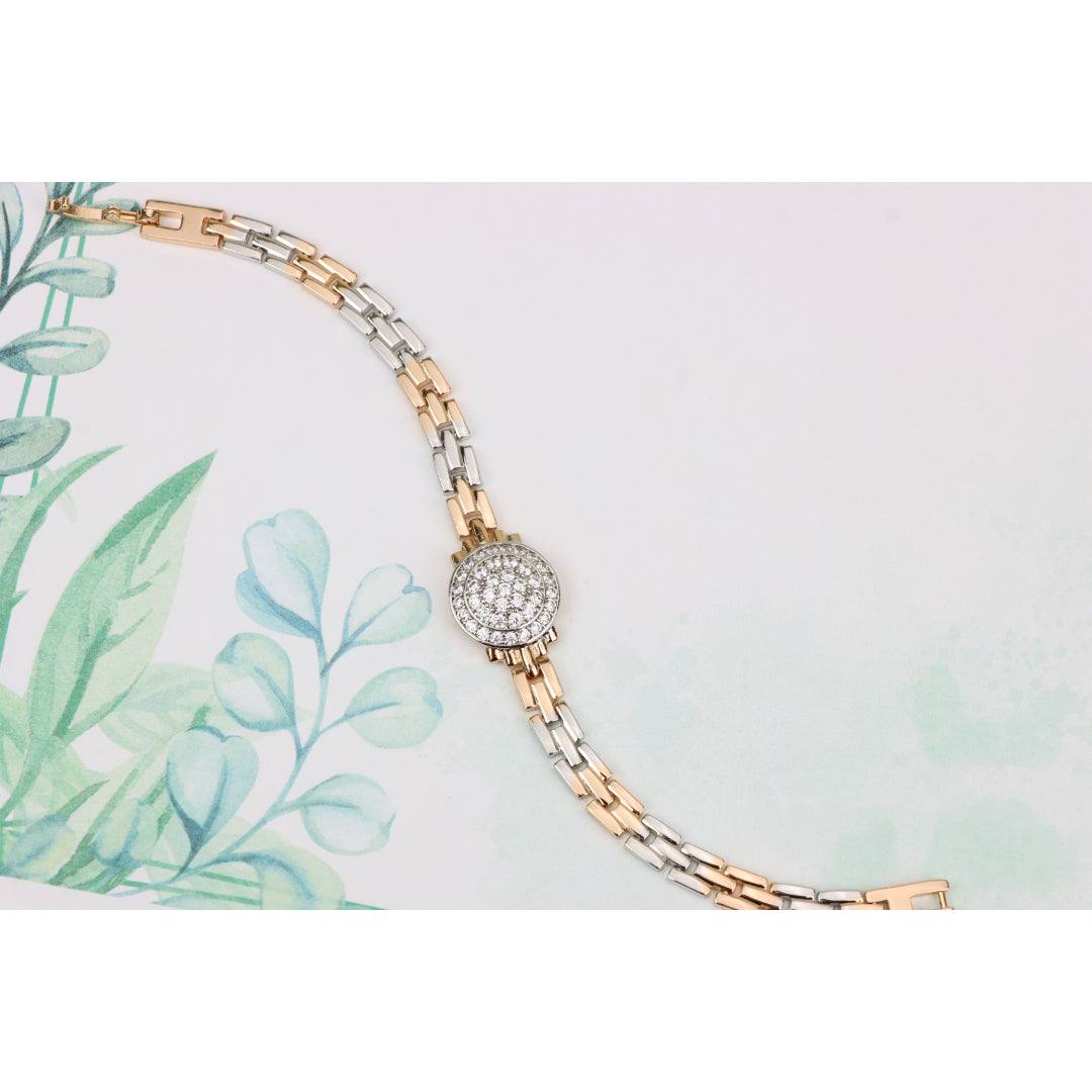 Add refined elegance to your look with this stunning rose gold and silver bracelet, featuring a radiant circular centerpiece encrusted with sparkling stones.