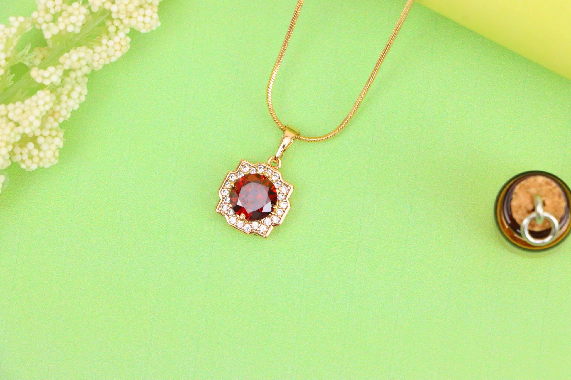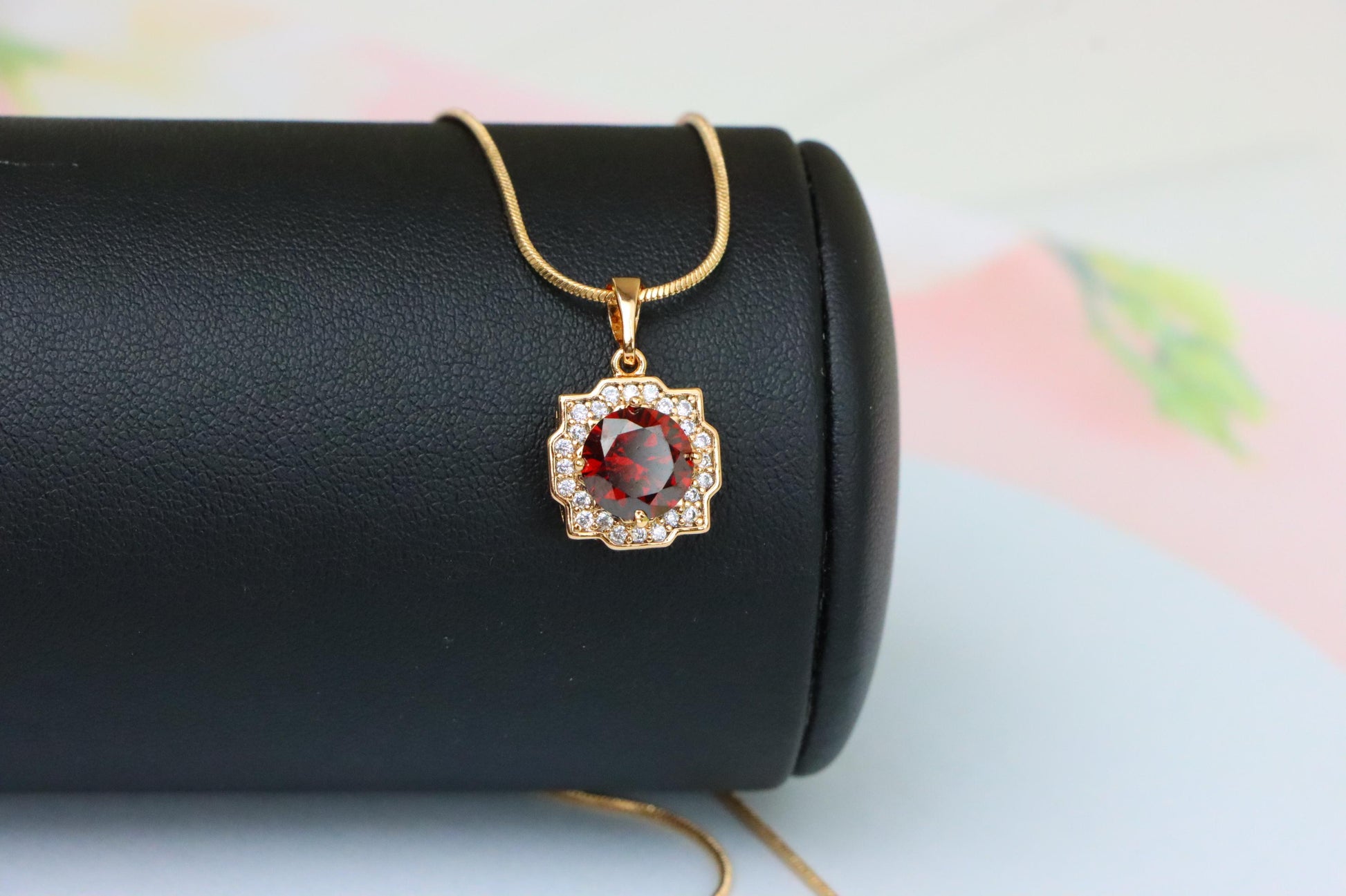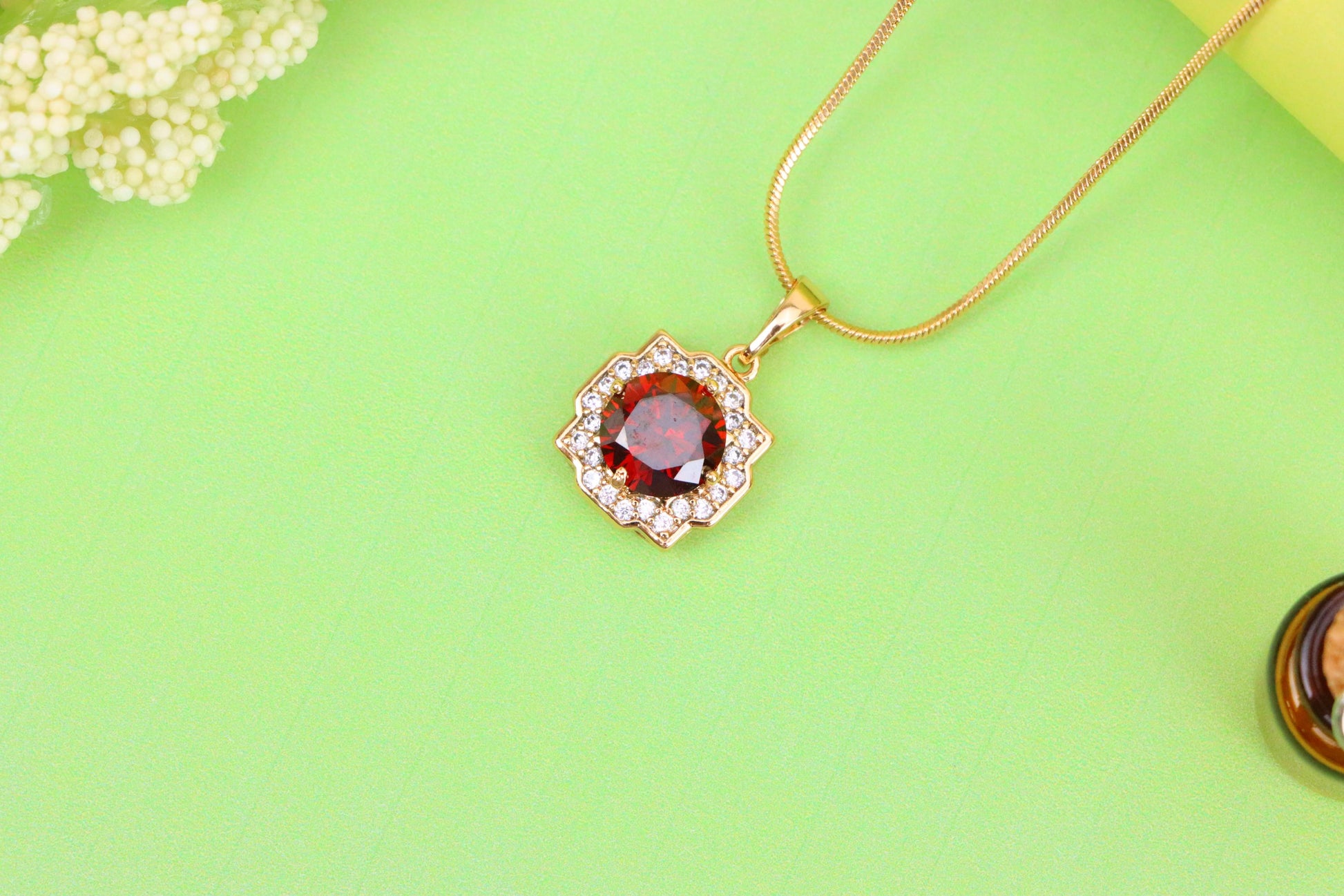 Red Round-Cut Halo Pendant in Rose Gold, XPPT1633