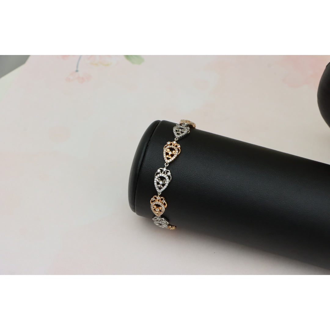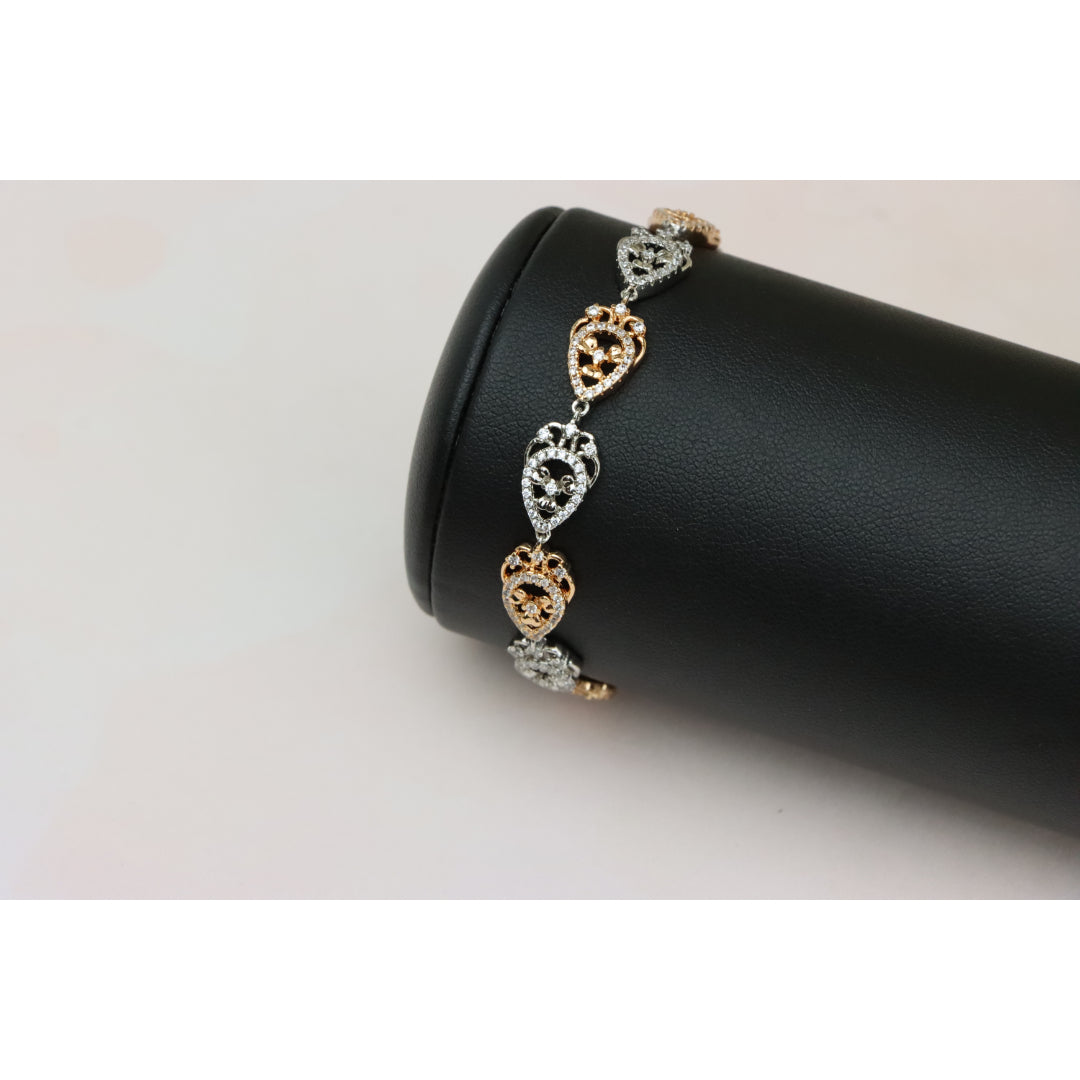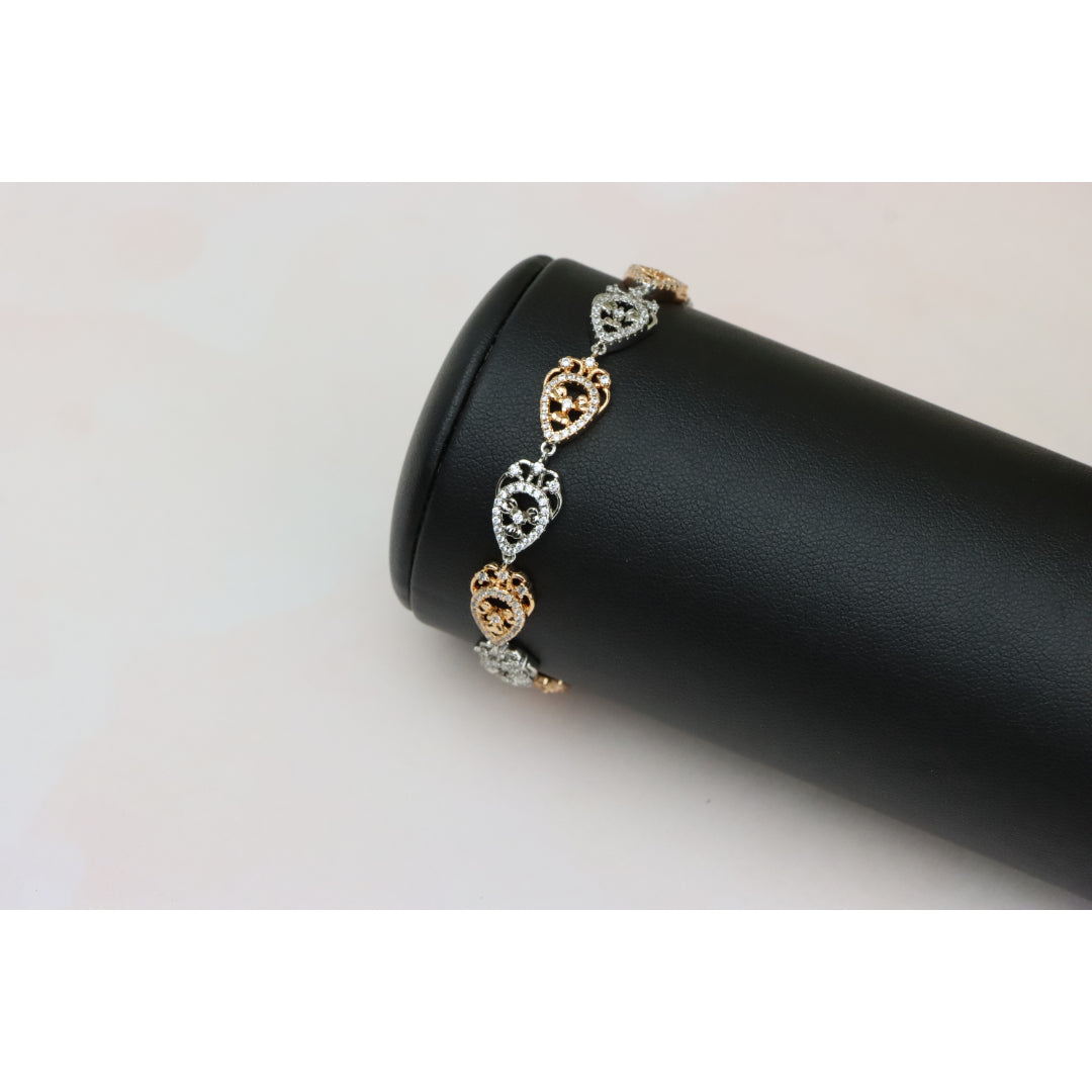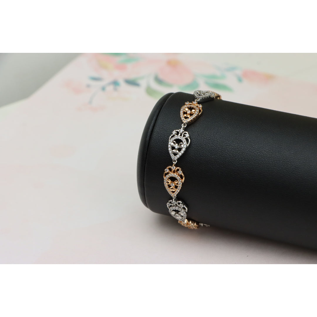 Add a touch of elegance with this rose gold and silver dual-tone bracelet, featuring intricate teardrop designs adorned with shimmering stones.