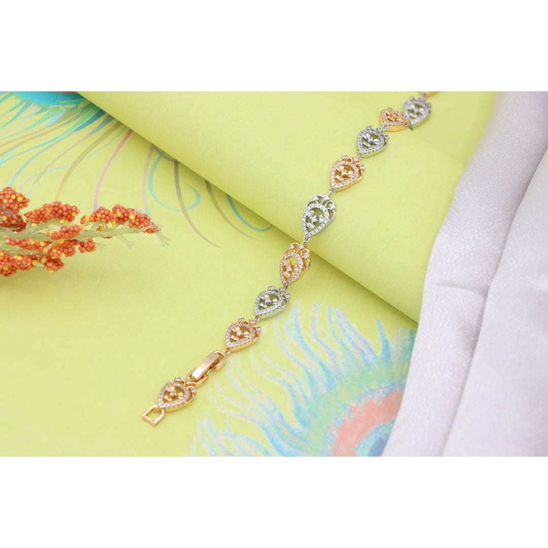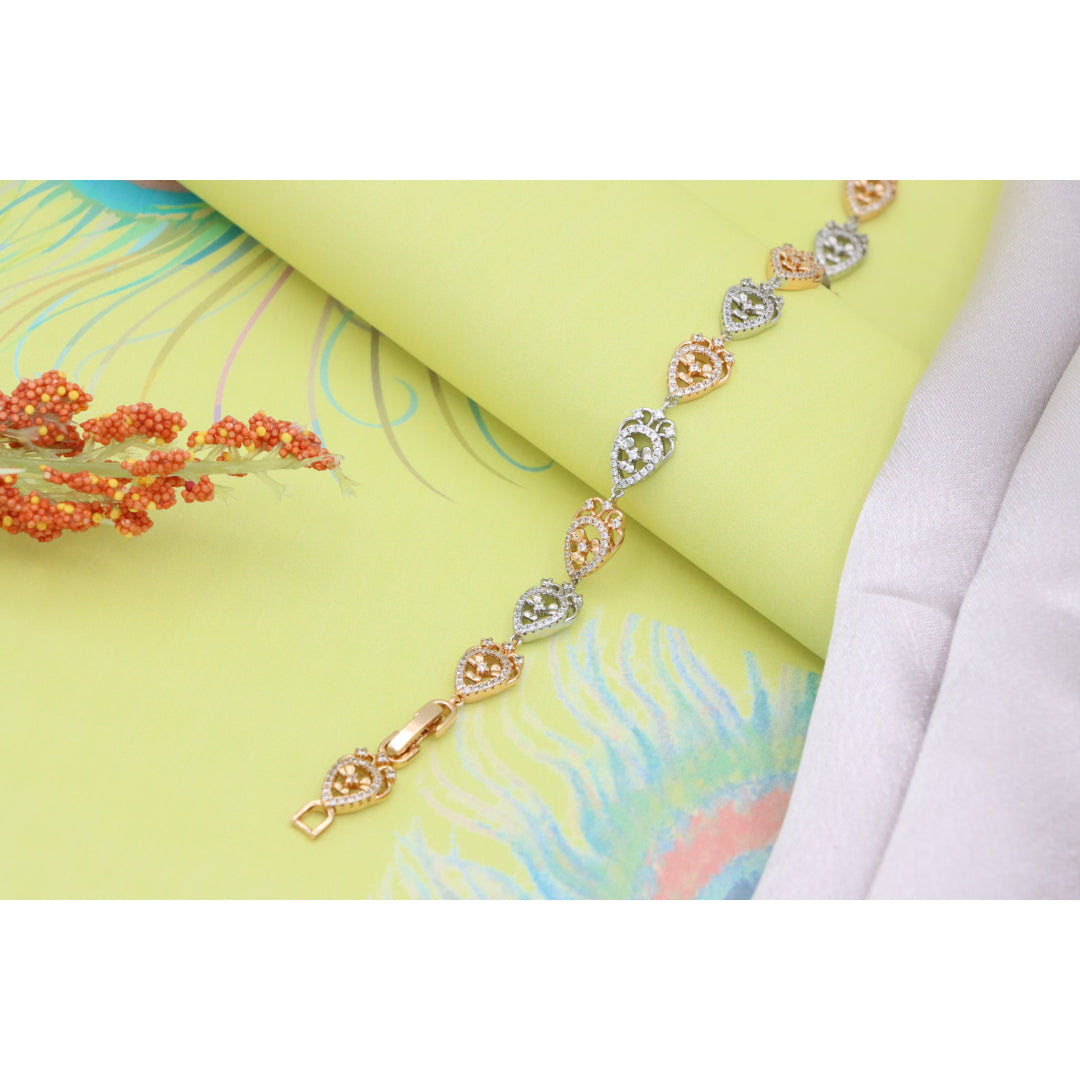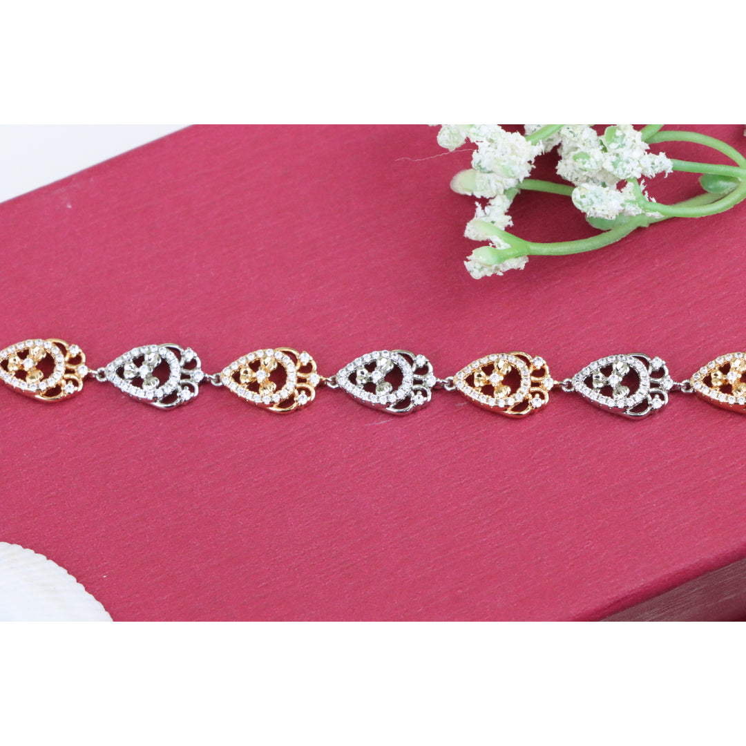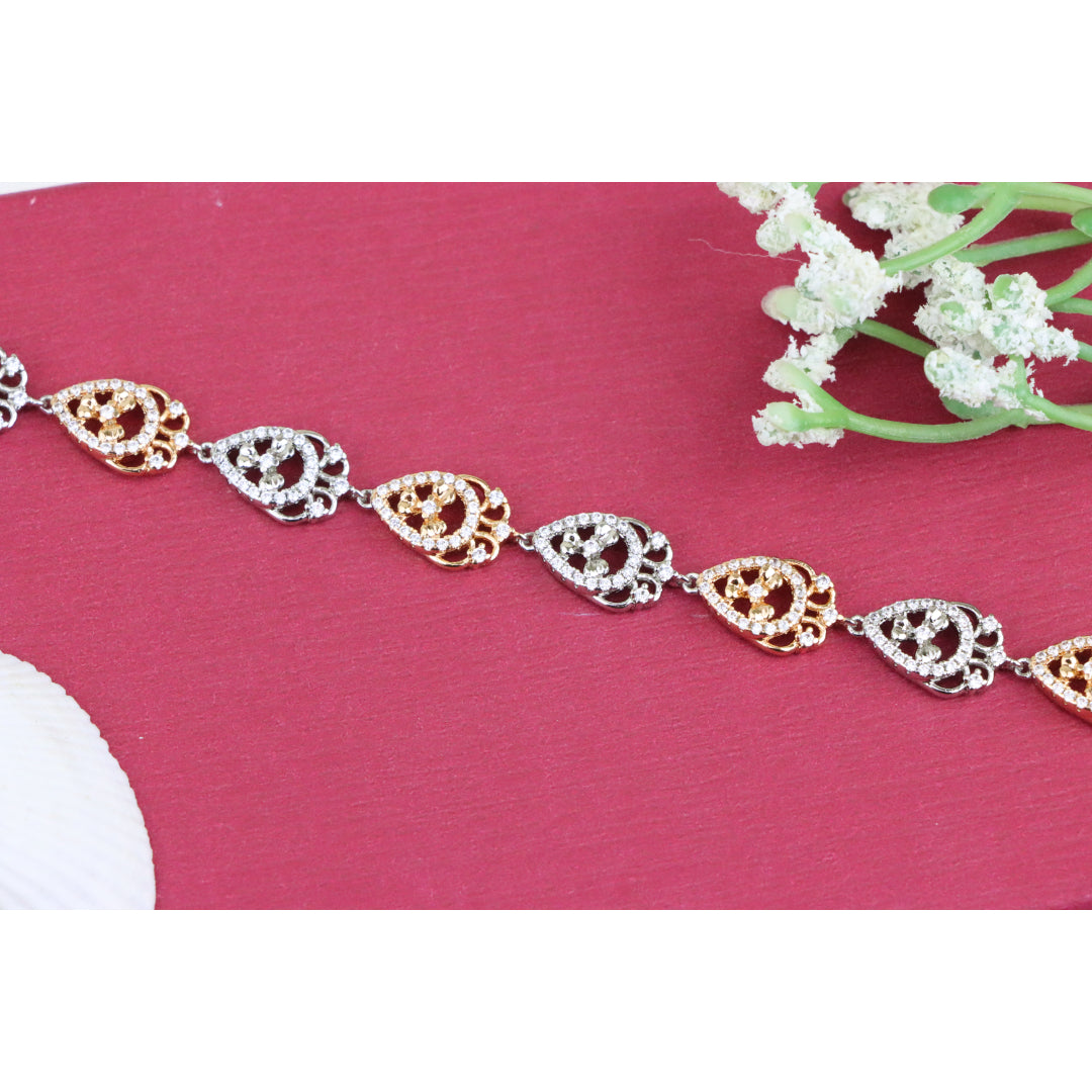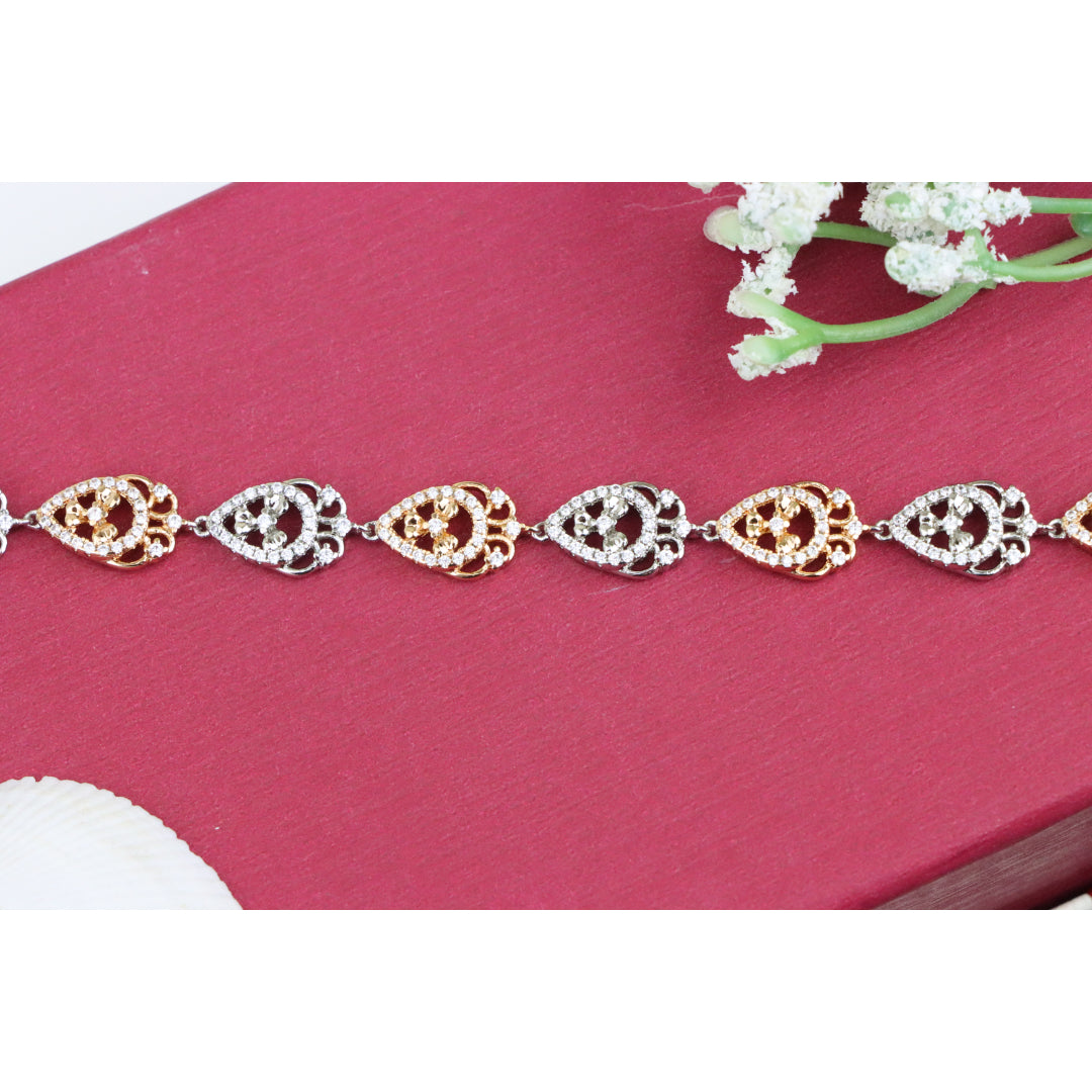 Add a touch of elegance with this rose gold and silver dual-tone bracelet, featuring intricate teardrop designs adorned with shimmering stones.