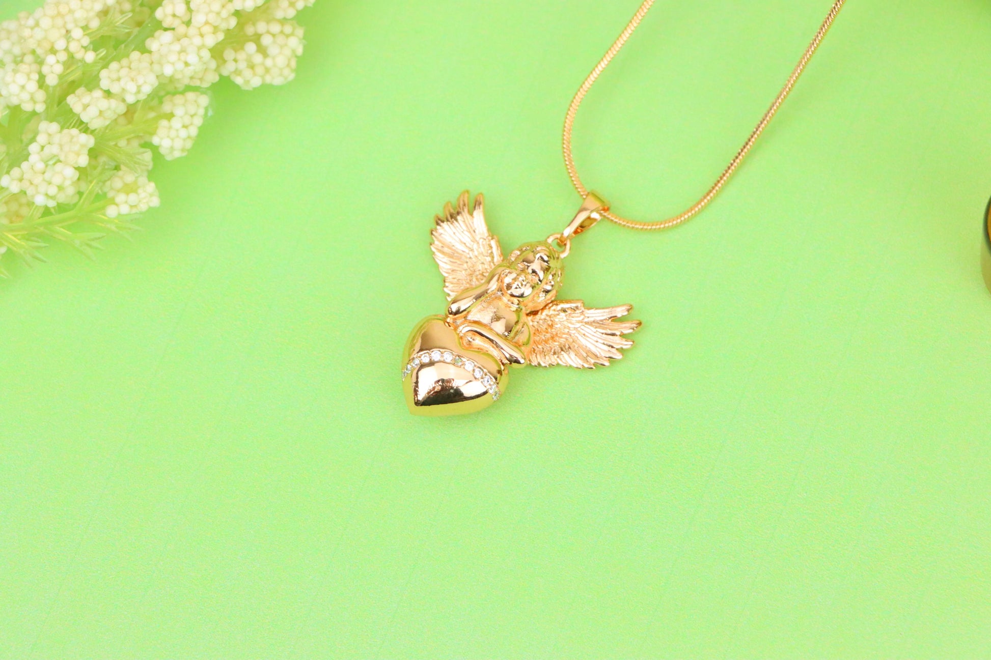 Rose Gold Angel Pendant with Heart and Wings – Elegant Spiritual Charm, XPPT1404 (2035)