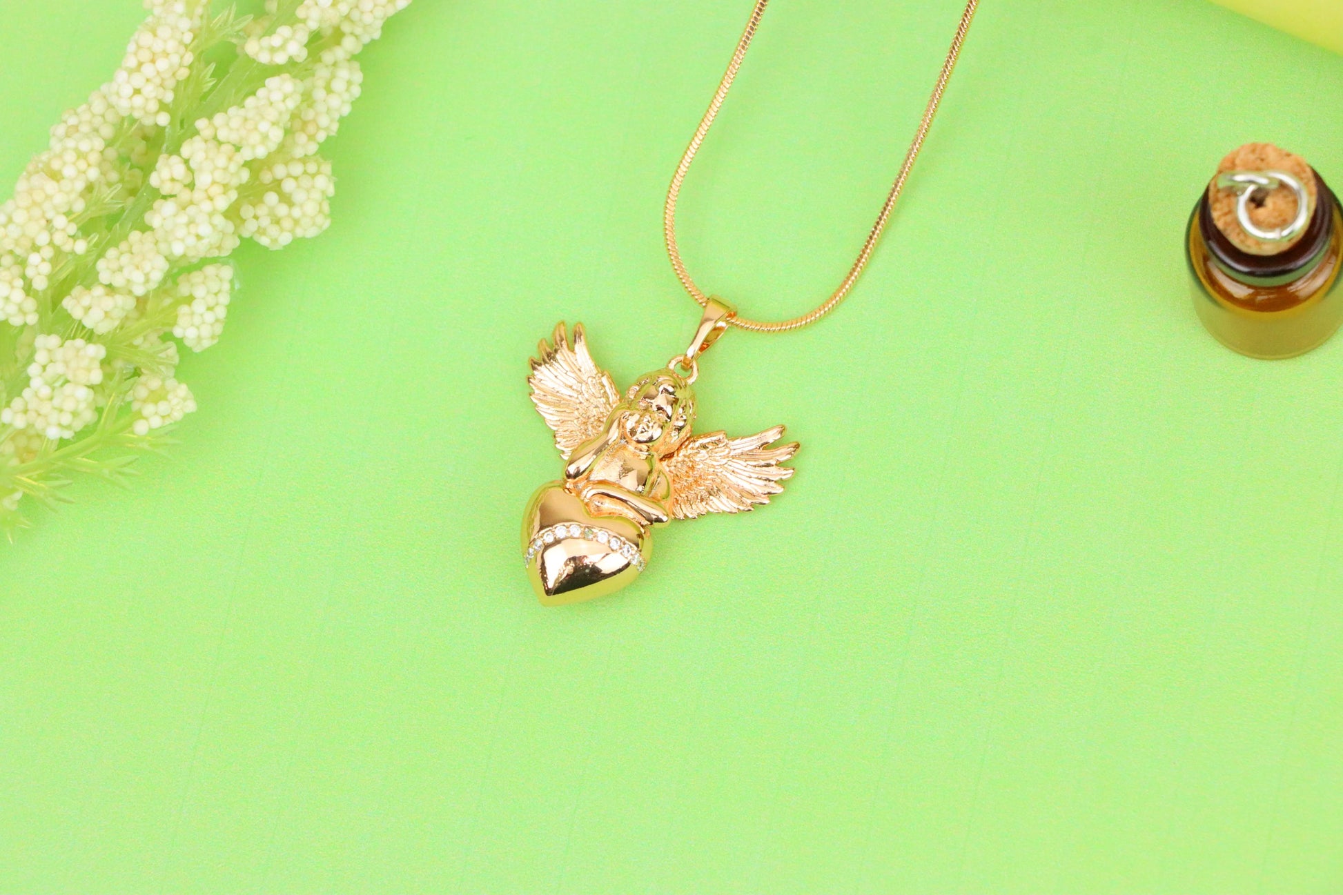 Express love and protection with this intricately designed angel pendant, blending elegance with symbolic meaning.