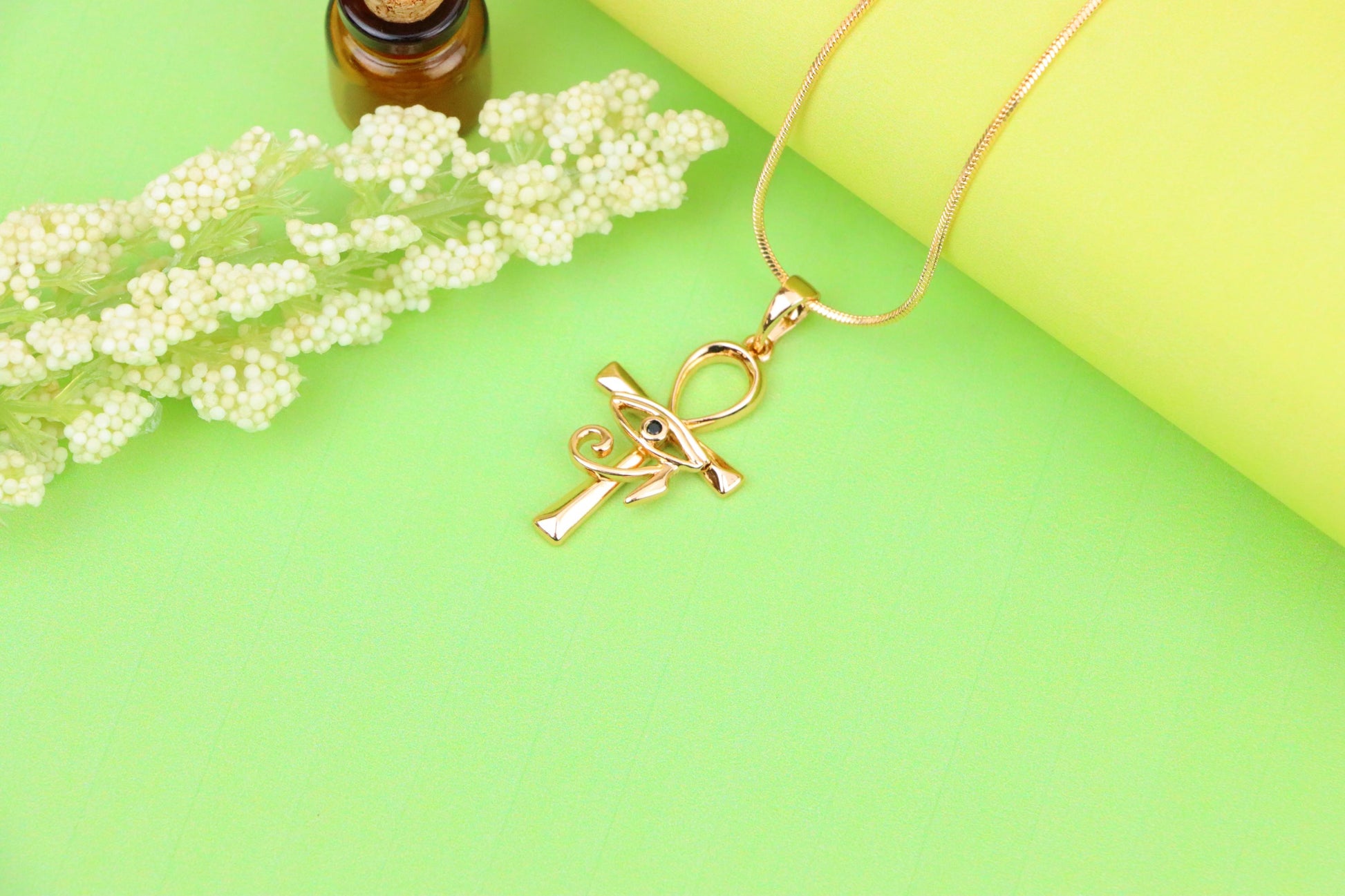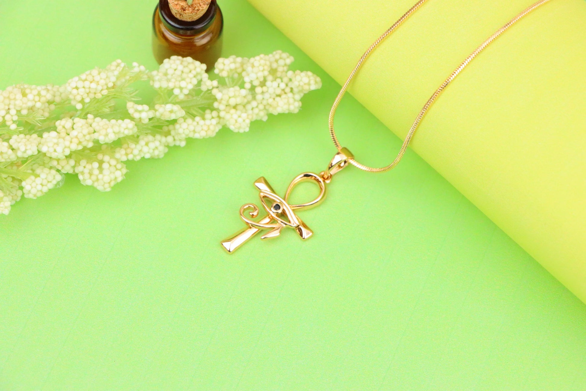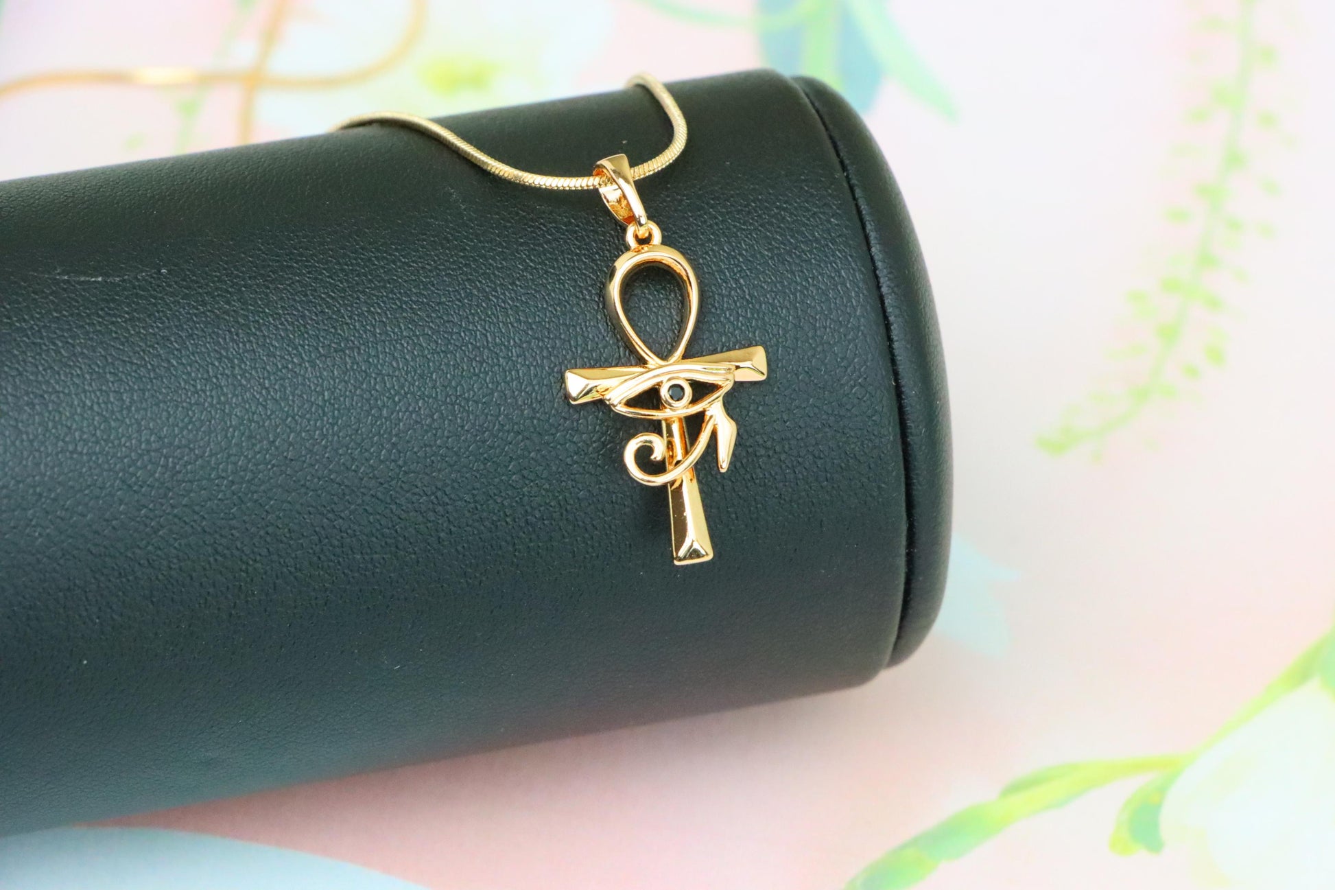 Rose Gold Ankh Cross Pendant with Eye of Horus Design, XPPT1226