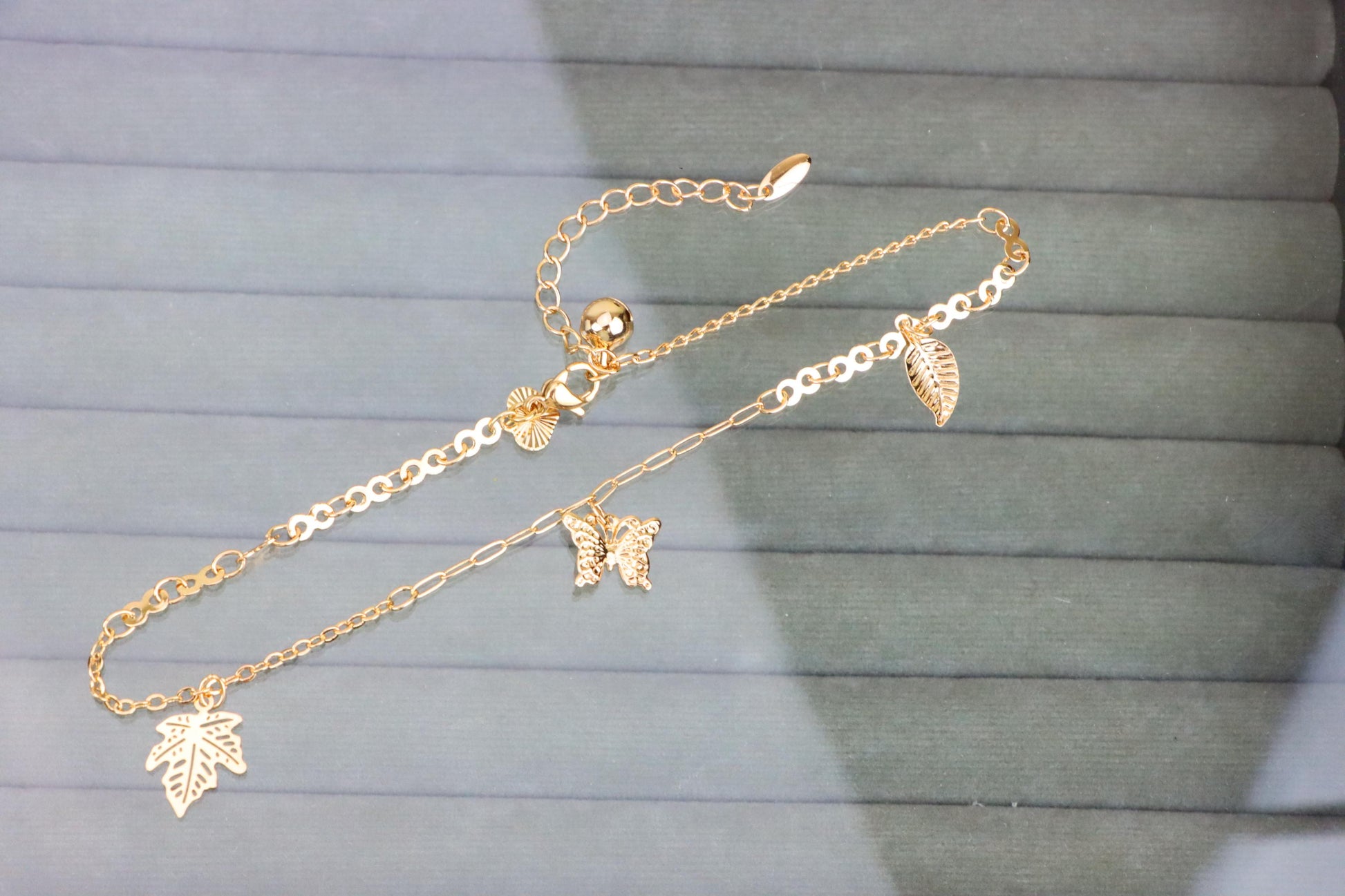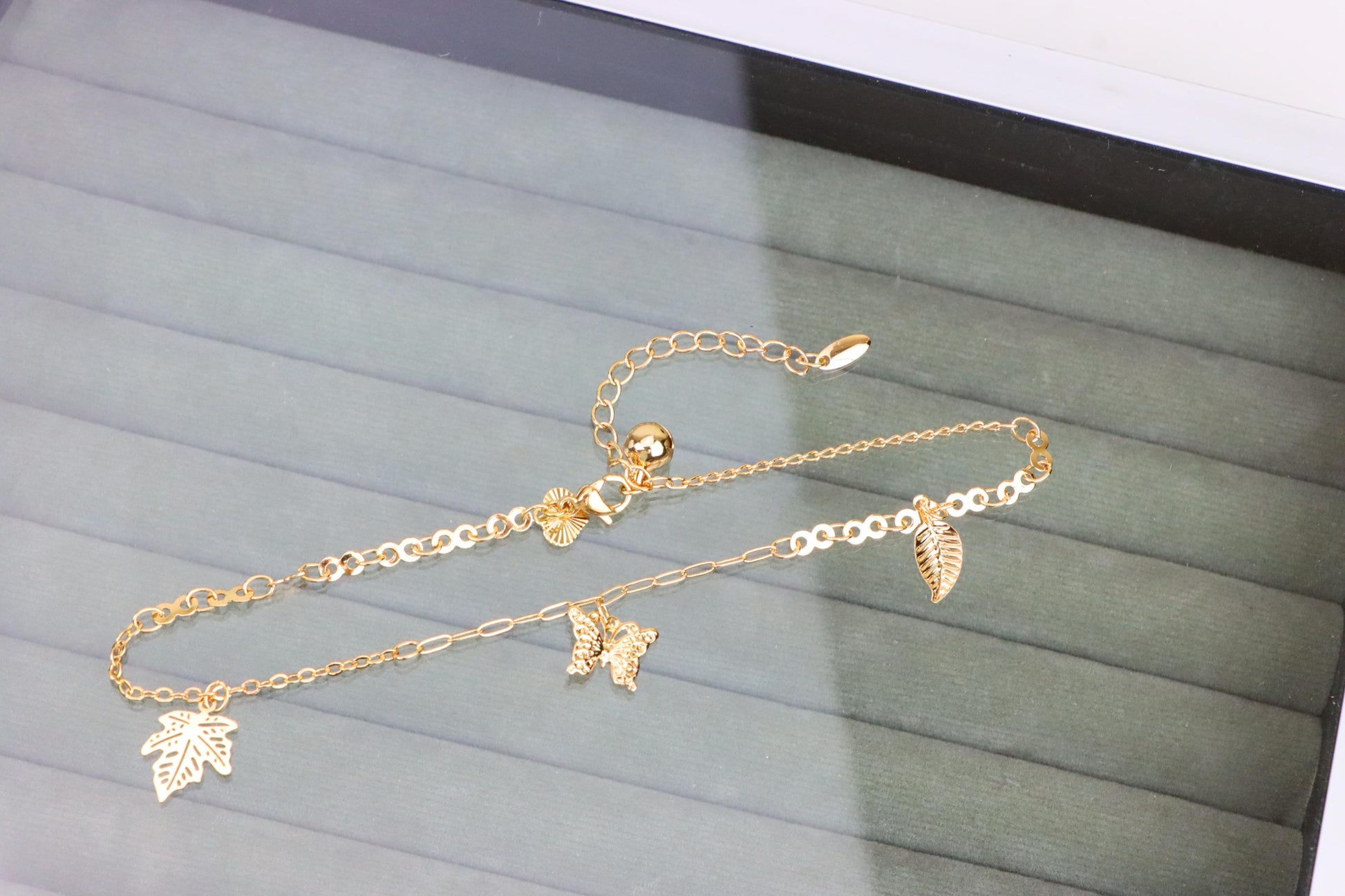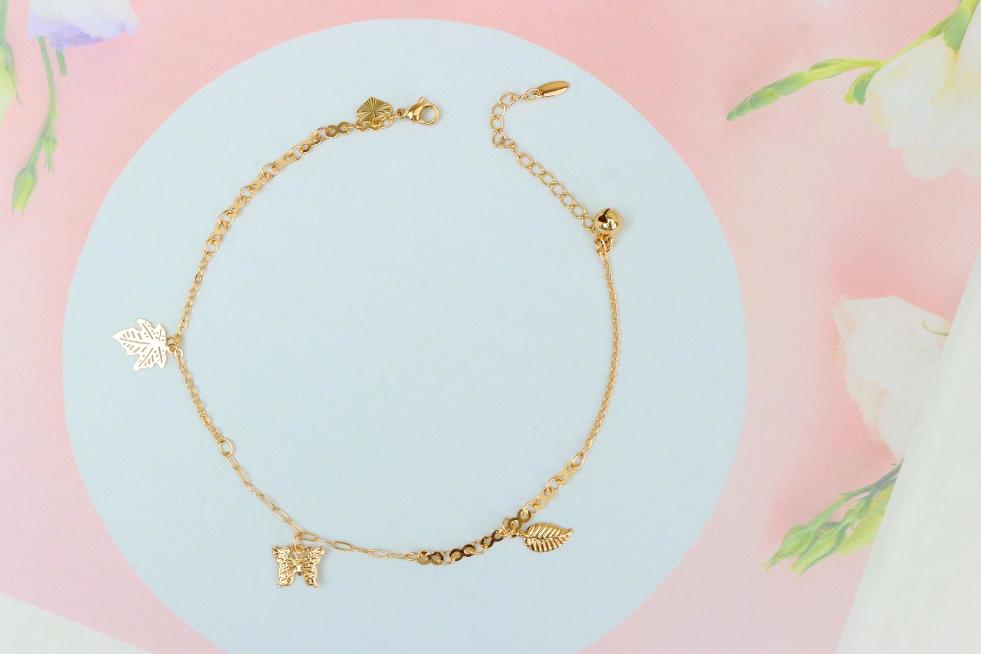 Rose Gold Anklet with Butterfly & Leaf Charms, XPAL1169