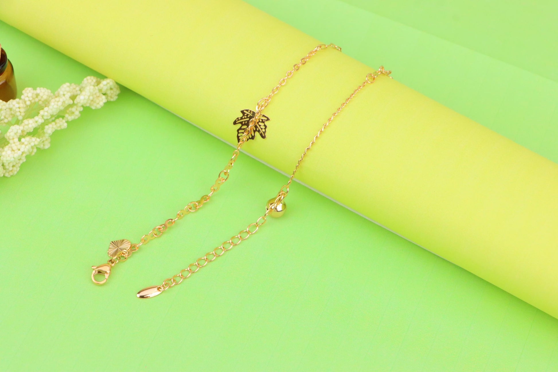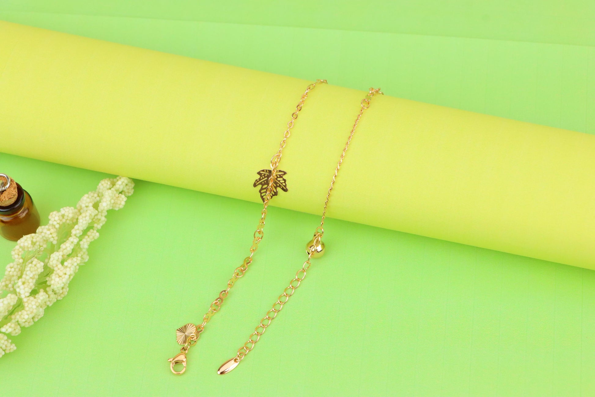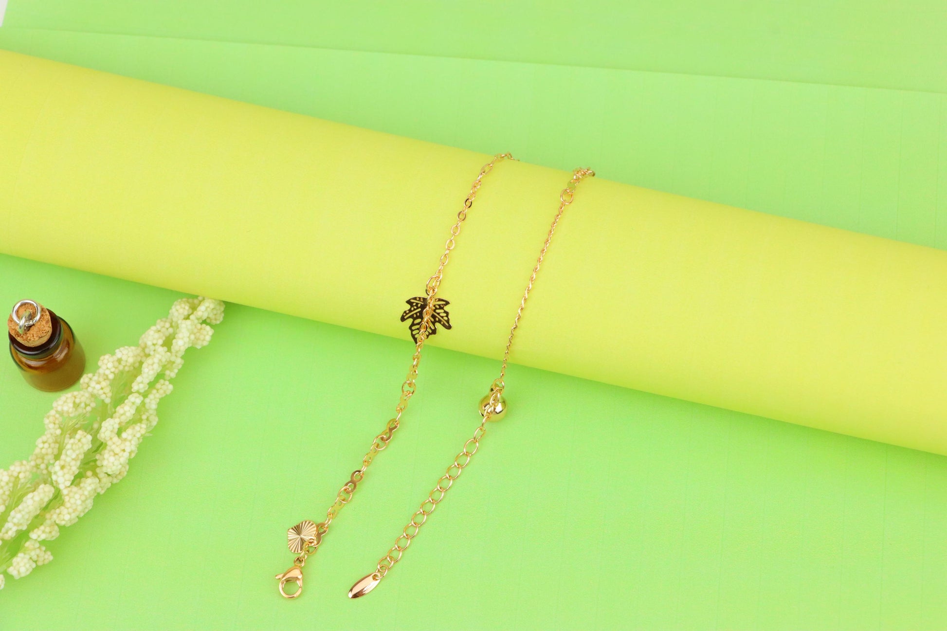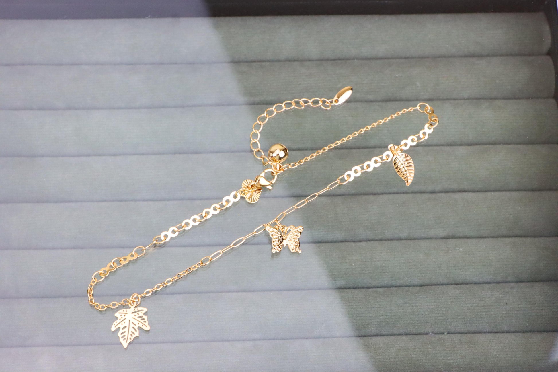 Grace your ankle with this stylish rose gold anklet featuring delicate leaf and butterfly charms for a nature-inspired finish.