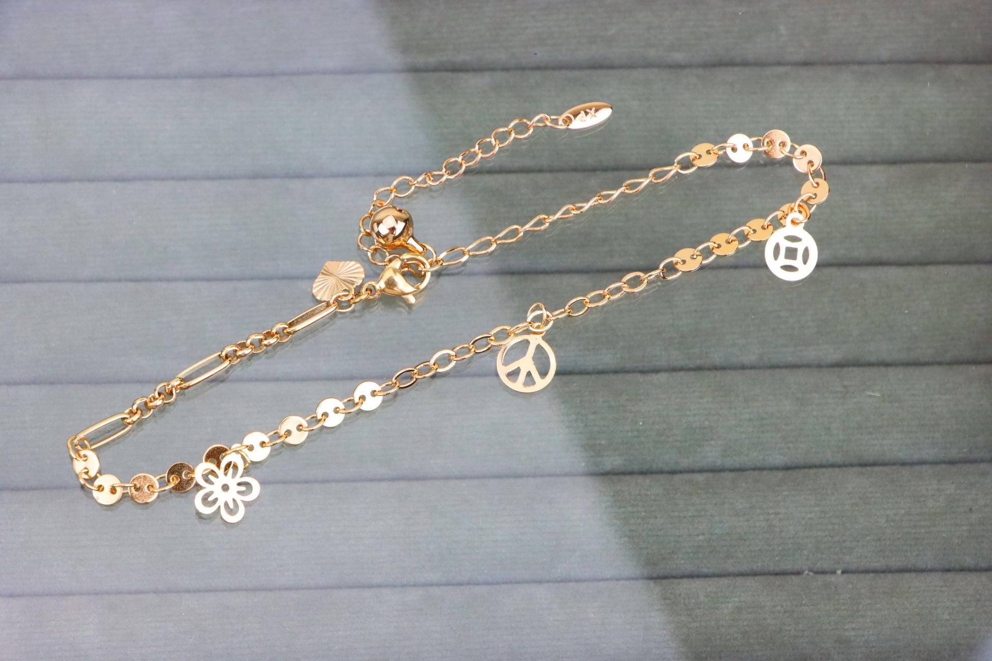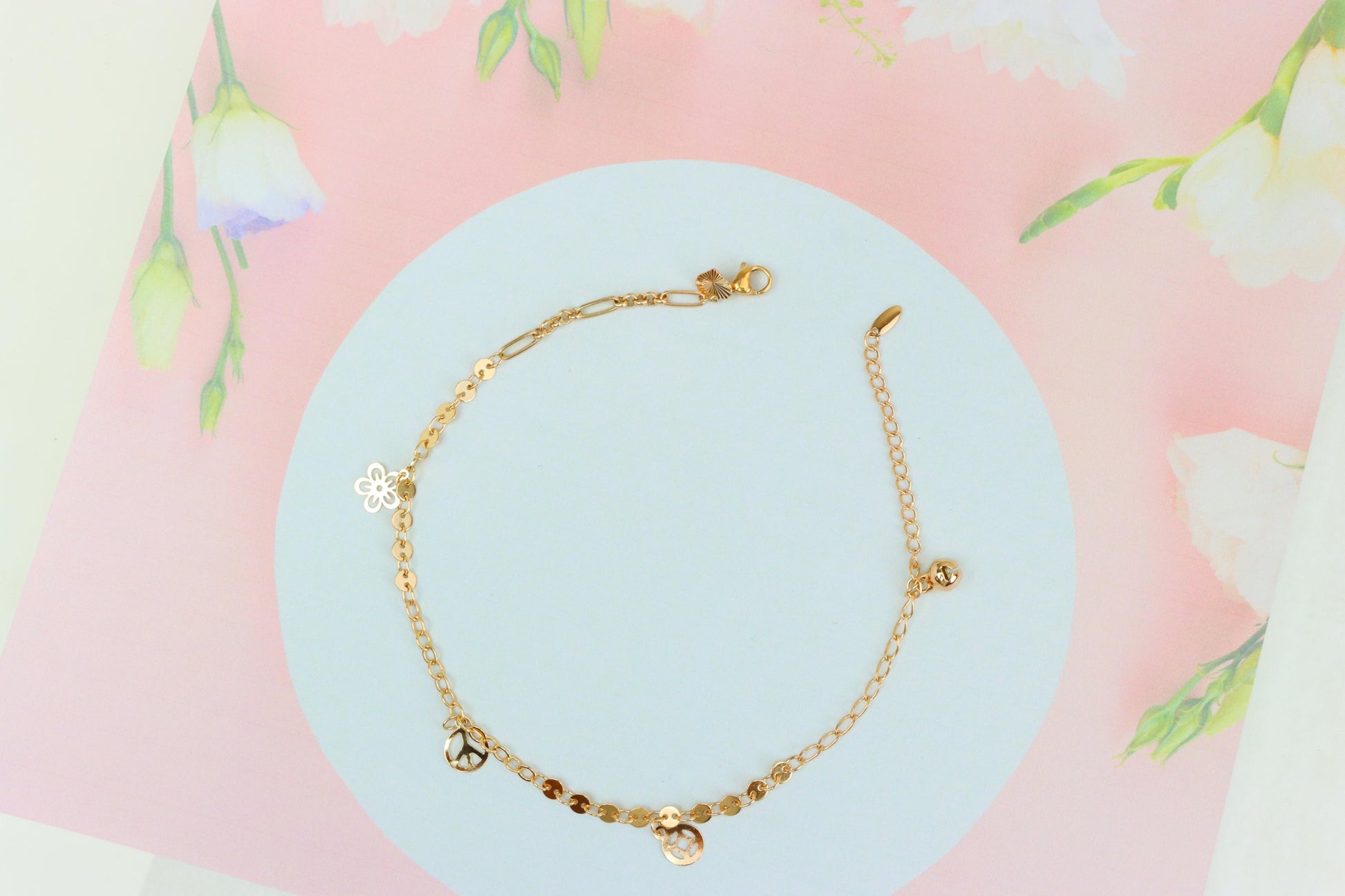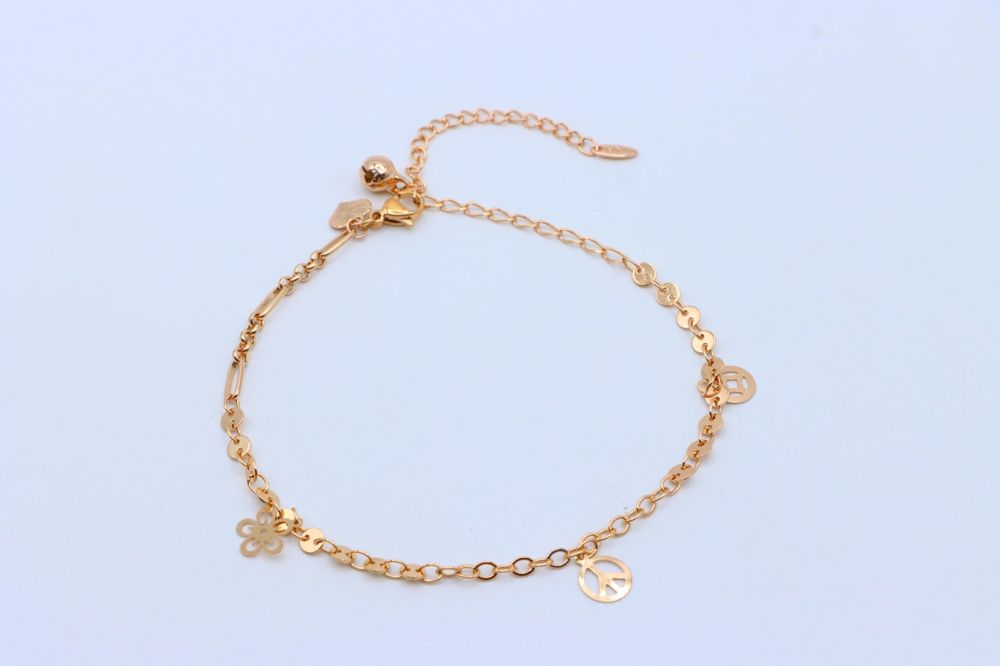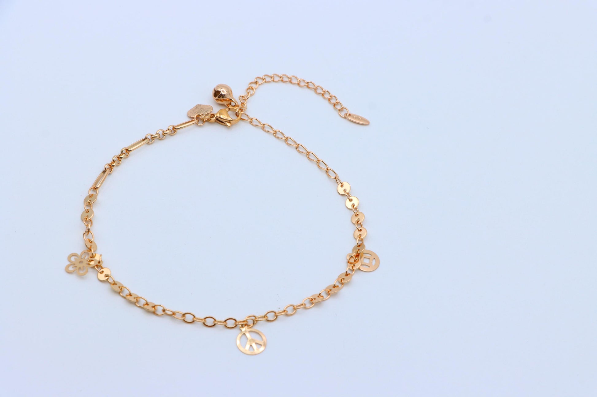 Rose Gold Anklet with Flower & Peace Charms, XPAL1171