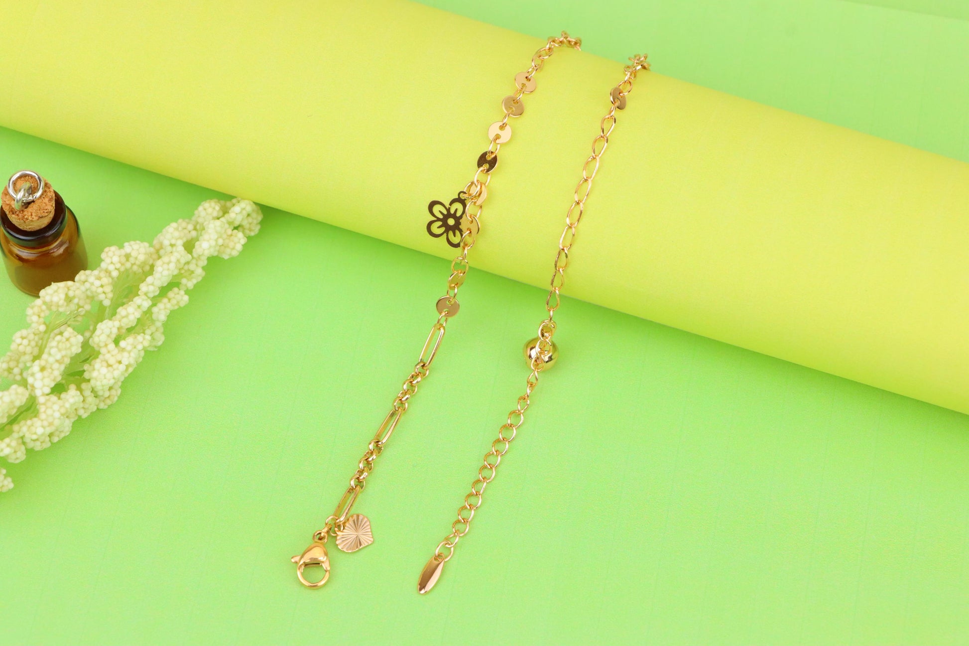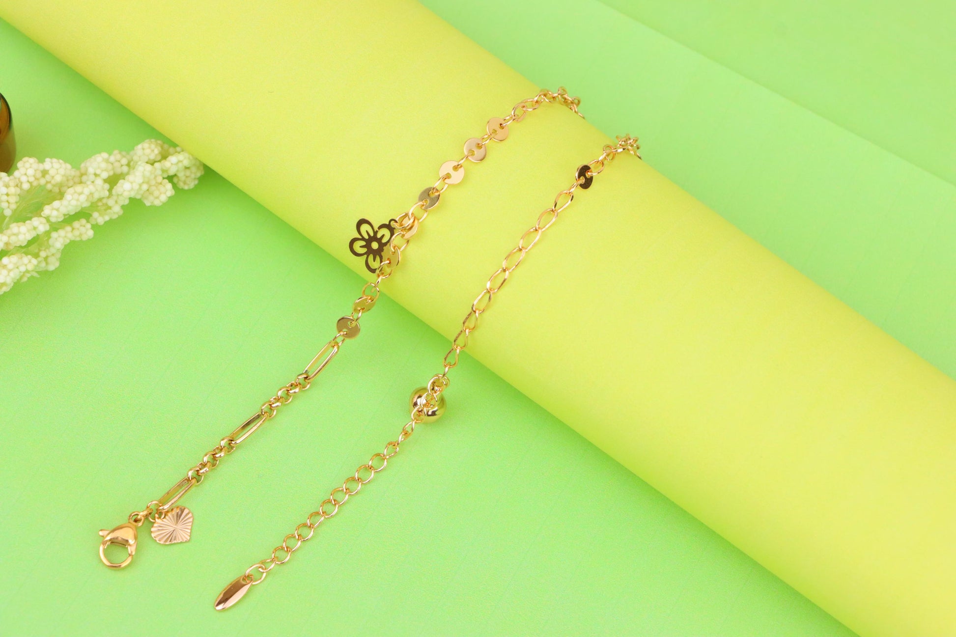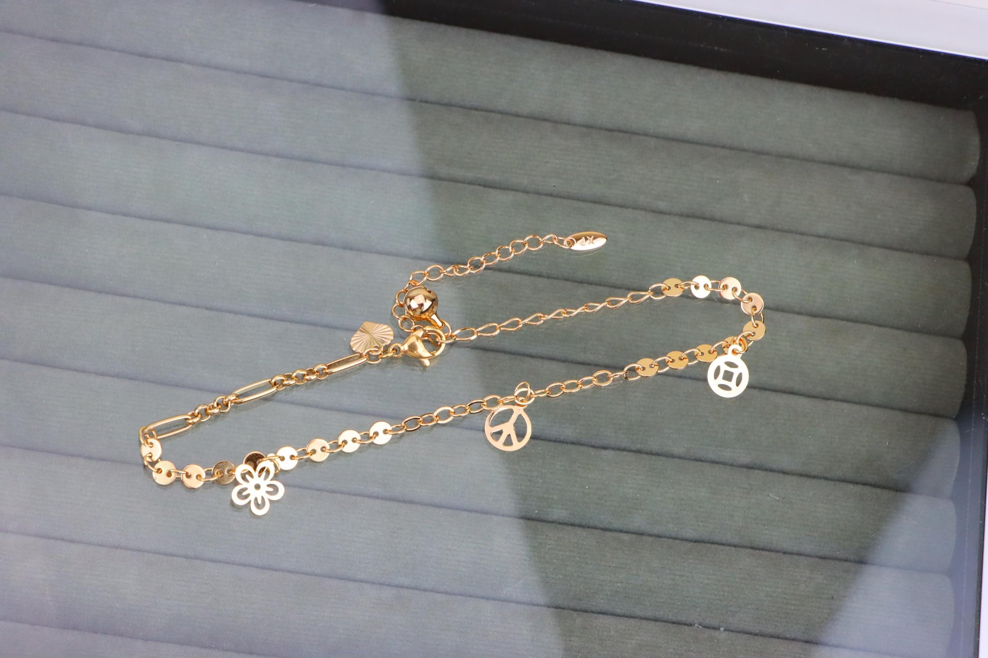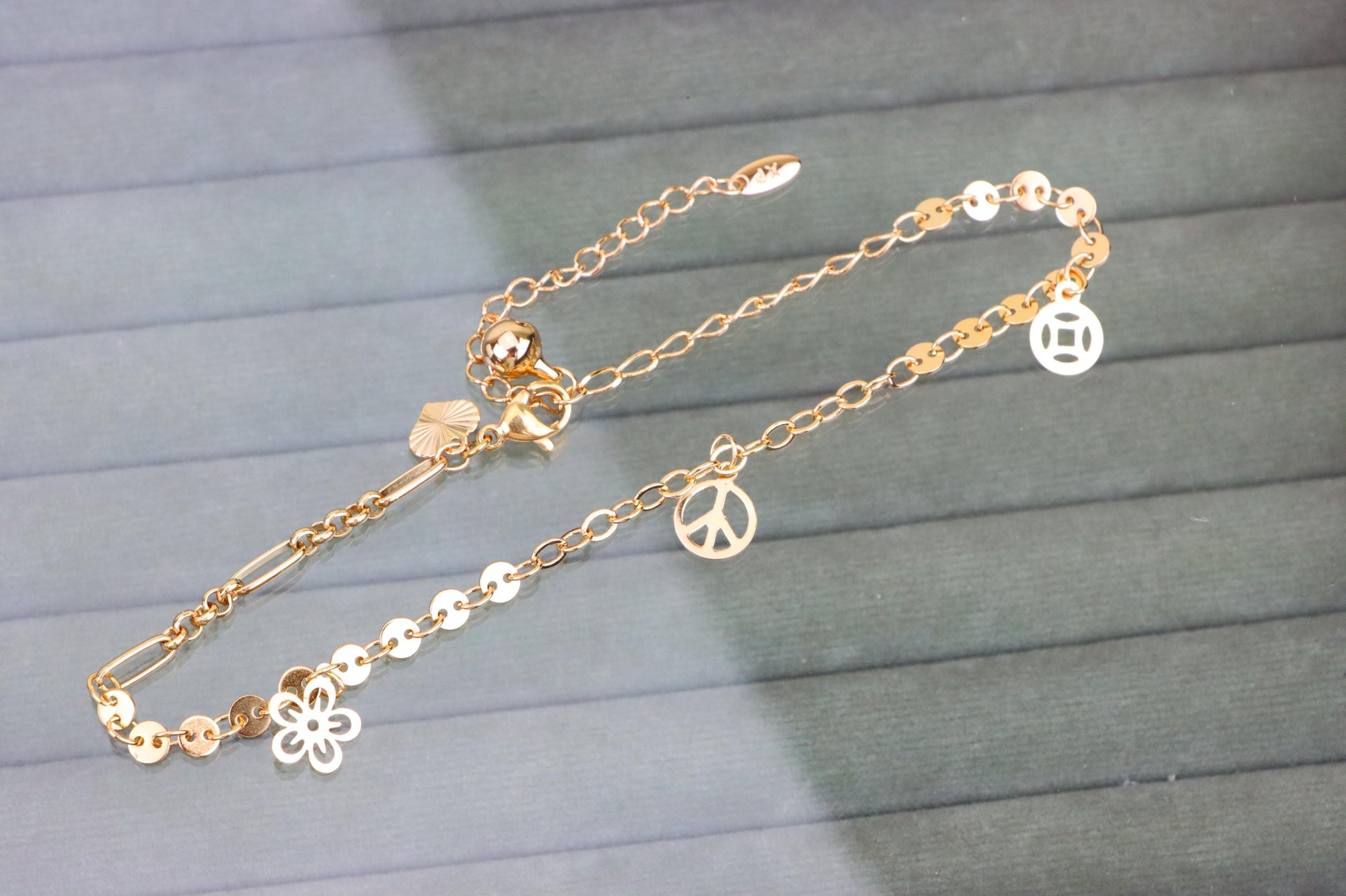 Rose Gold Anklet with Flower & Peace Charms, XPAL1171
