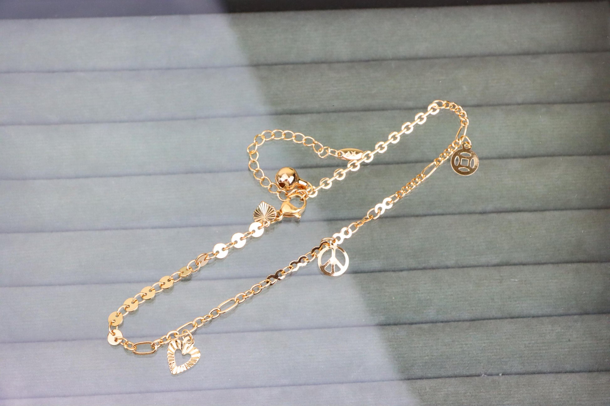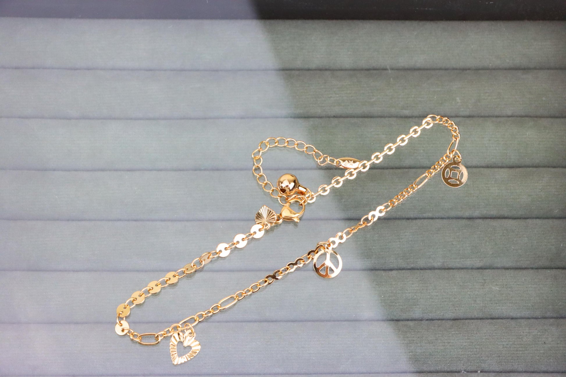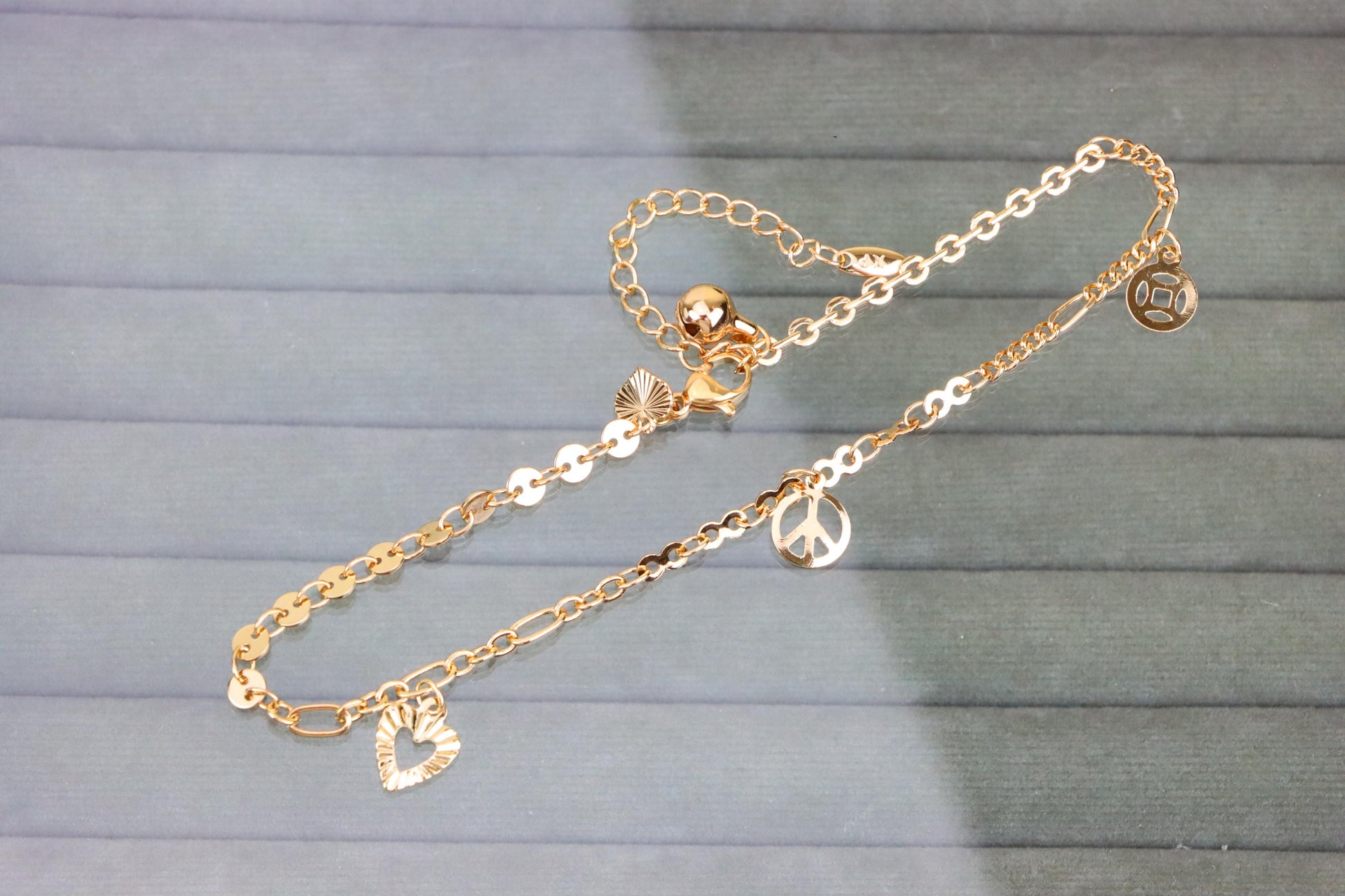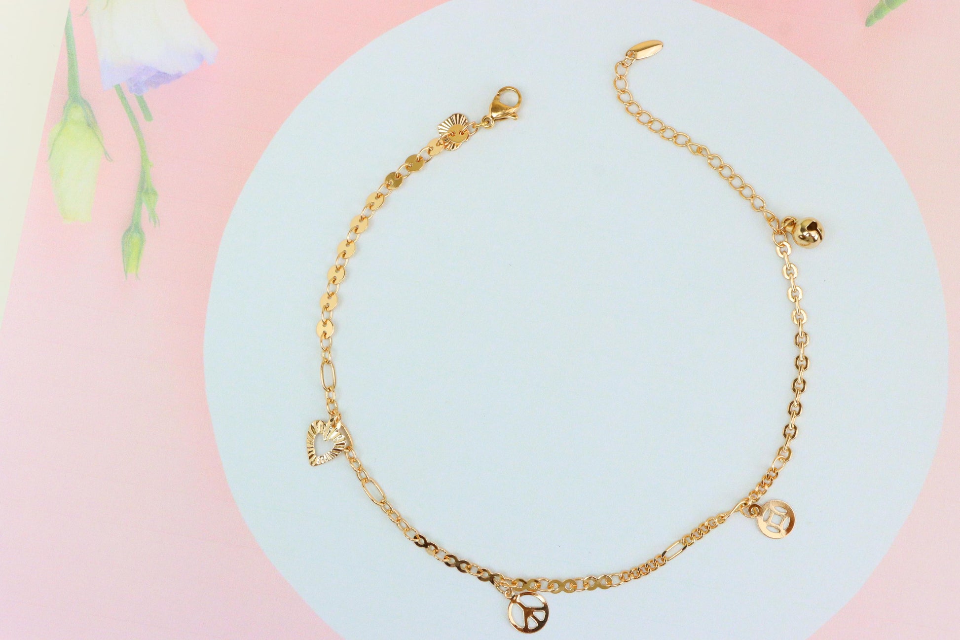 Rose Gold Anklet with Heart & Peace Charms, XPAL1177