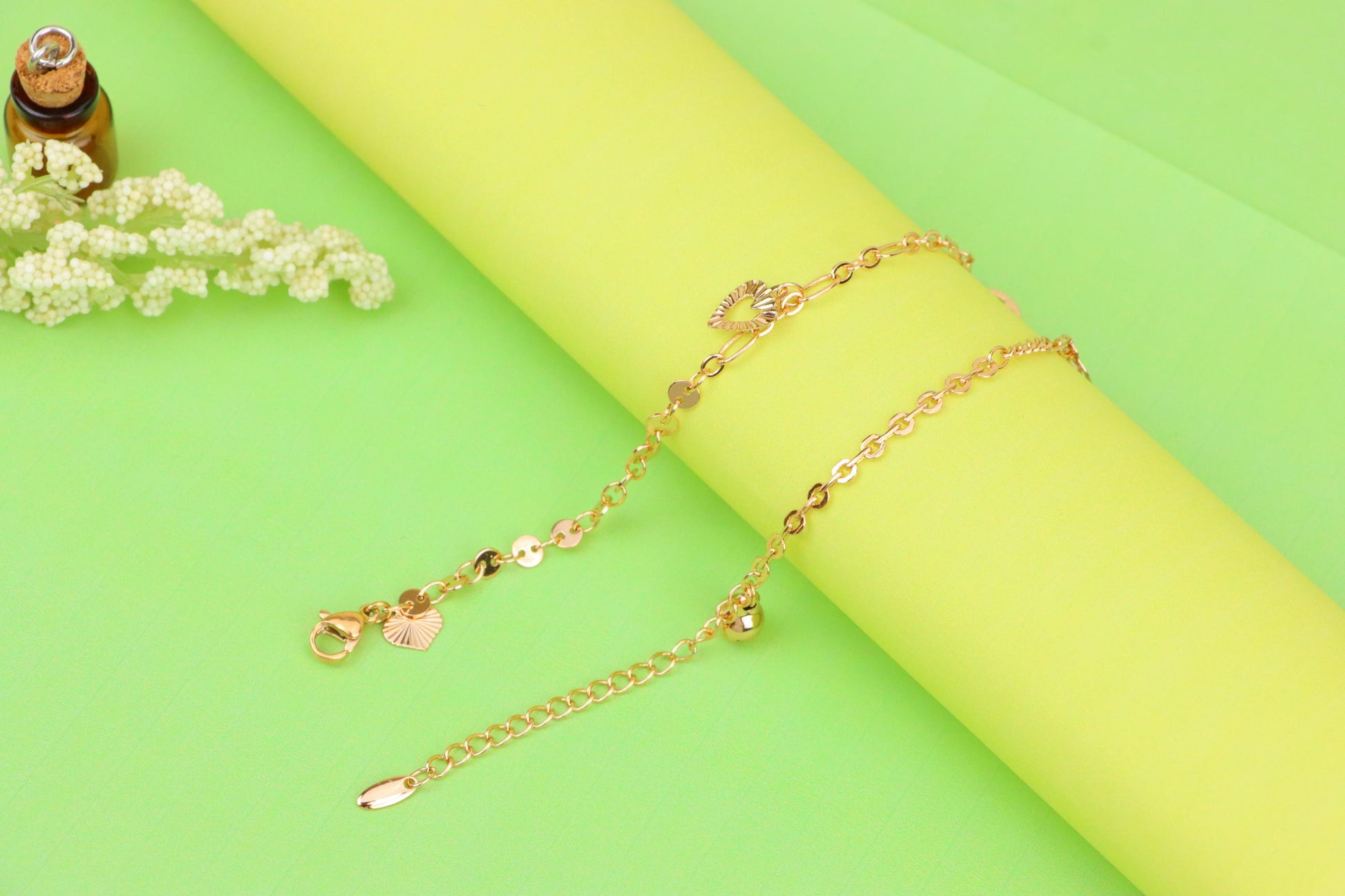 Delicately crafted rose gold anklet with elegant charms for everyday style.